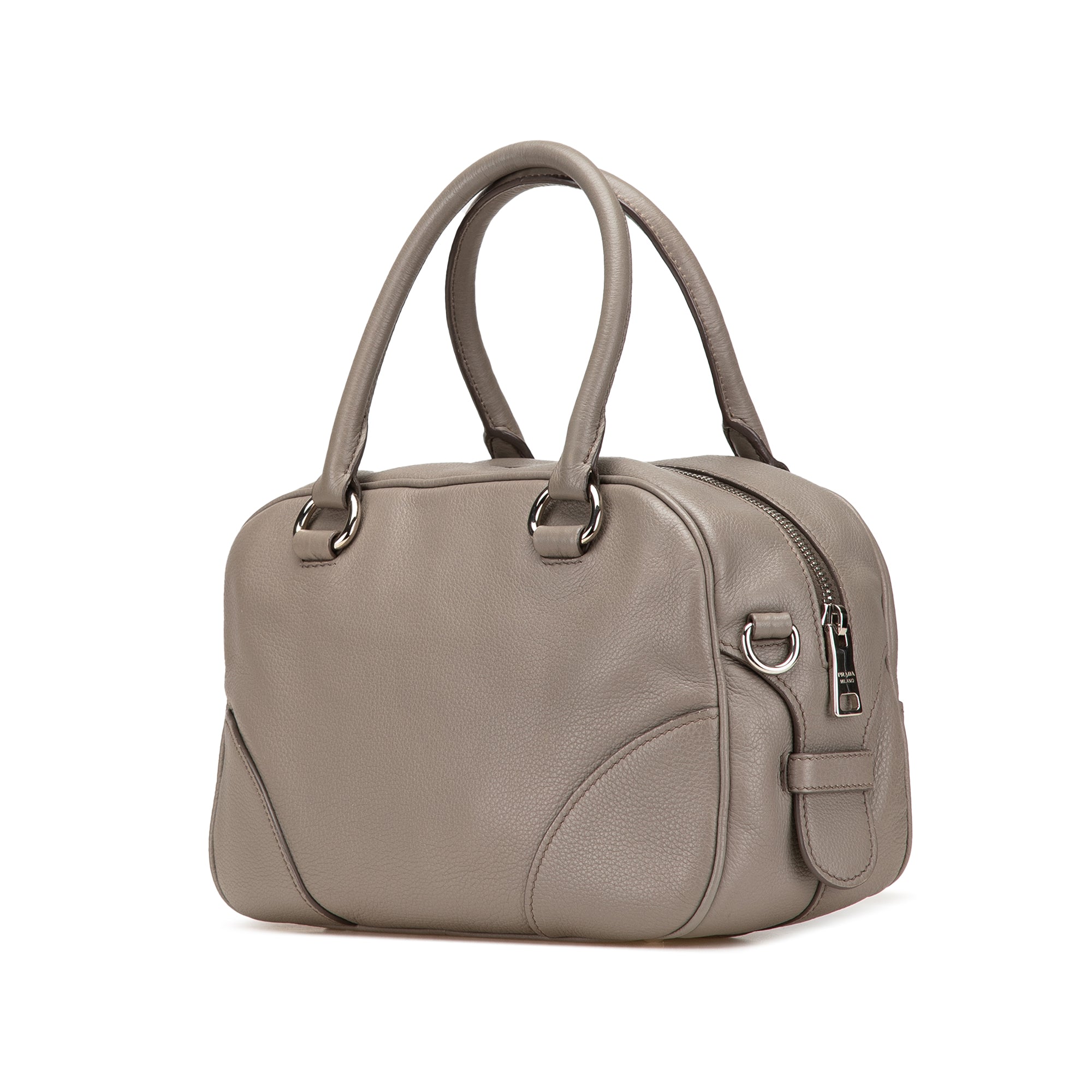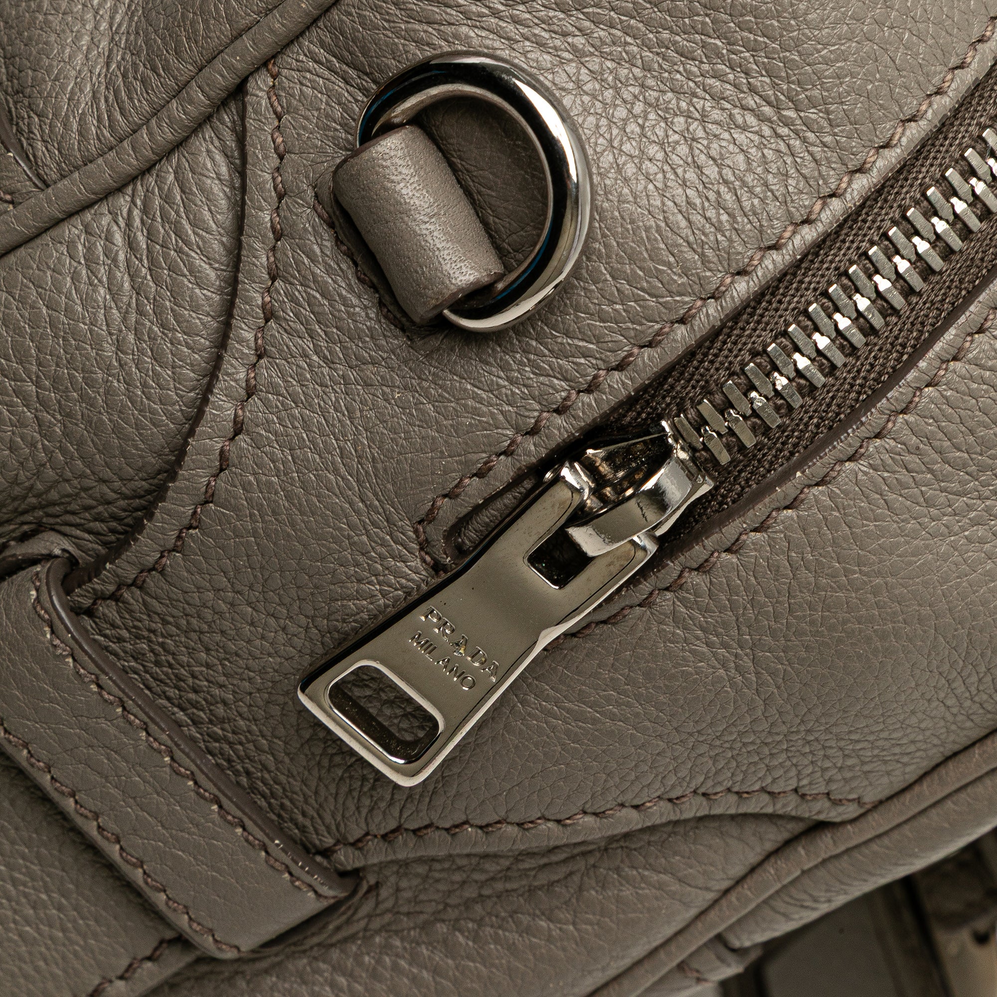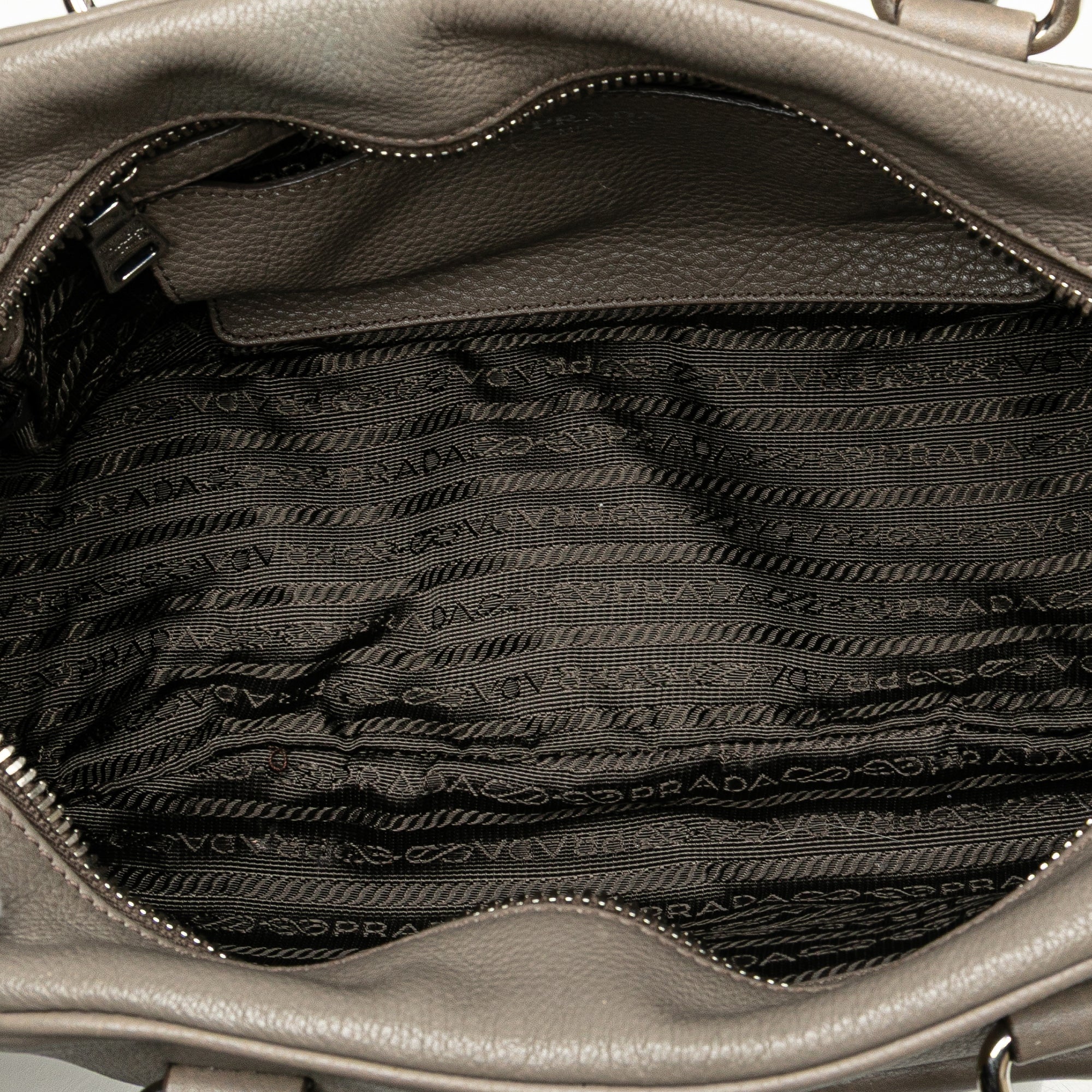 Gray Prada Vitello Daino Zip Top Satchel - Designer Revival Gray Prada Vitello Daino Zip Top Satchel - Designer Revival