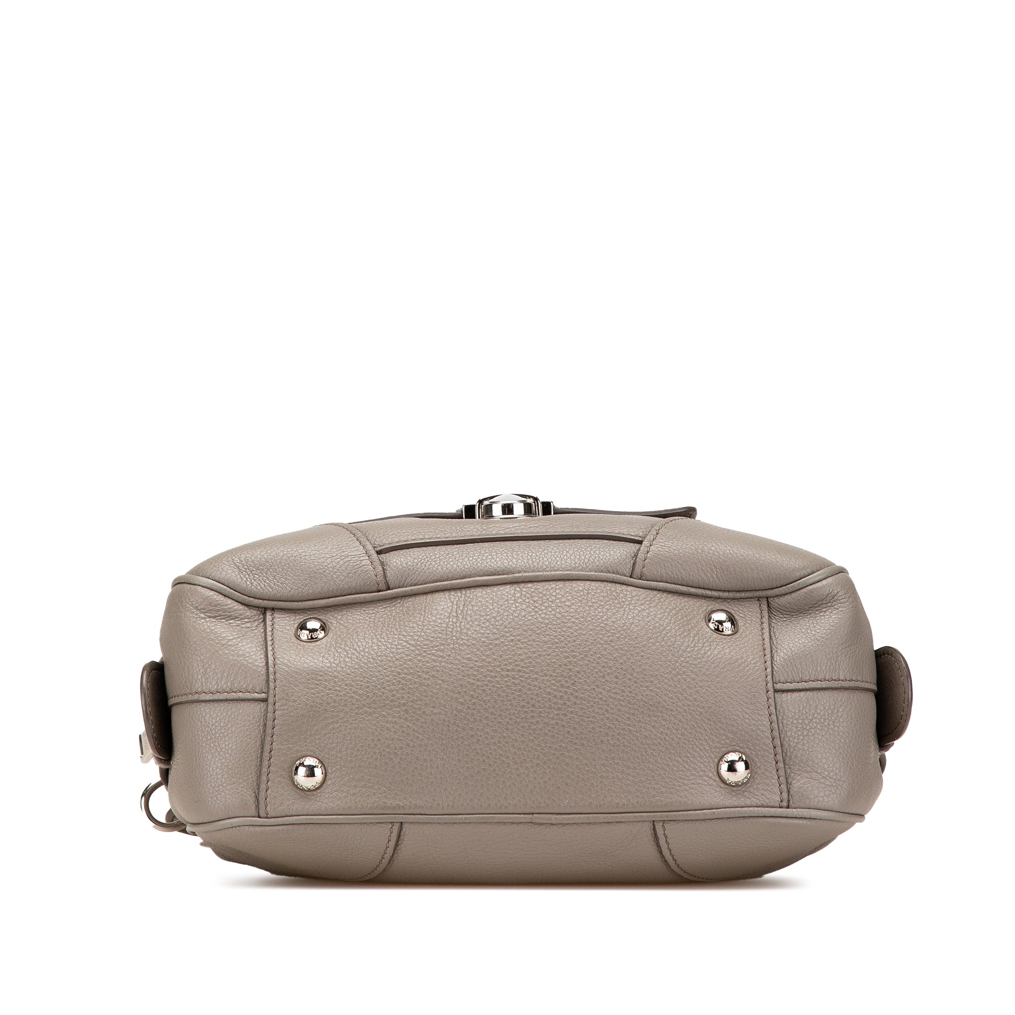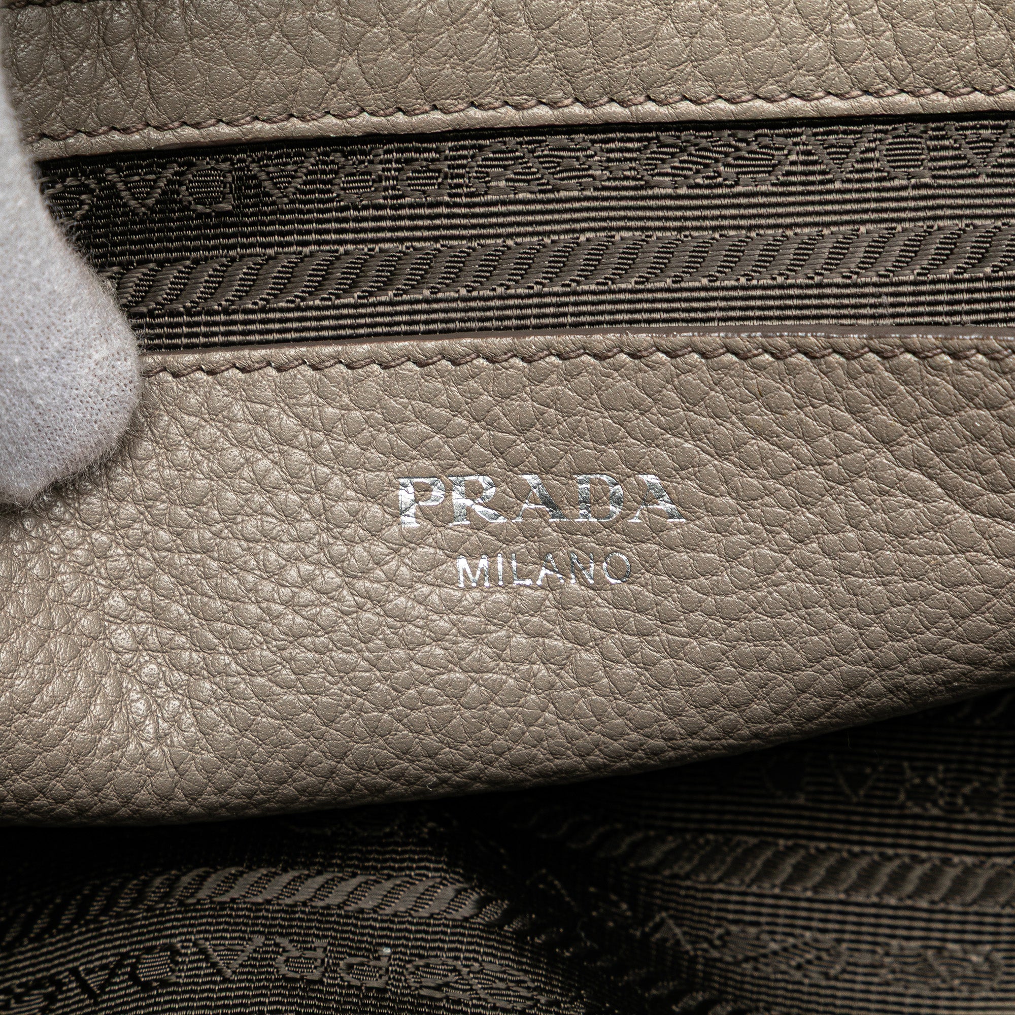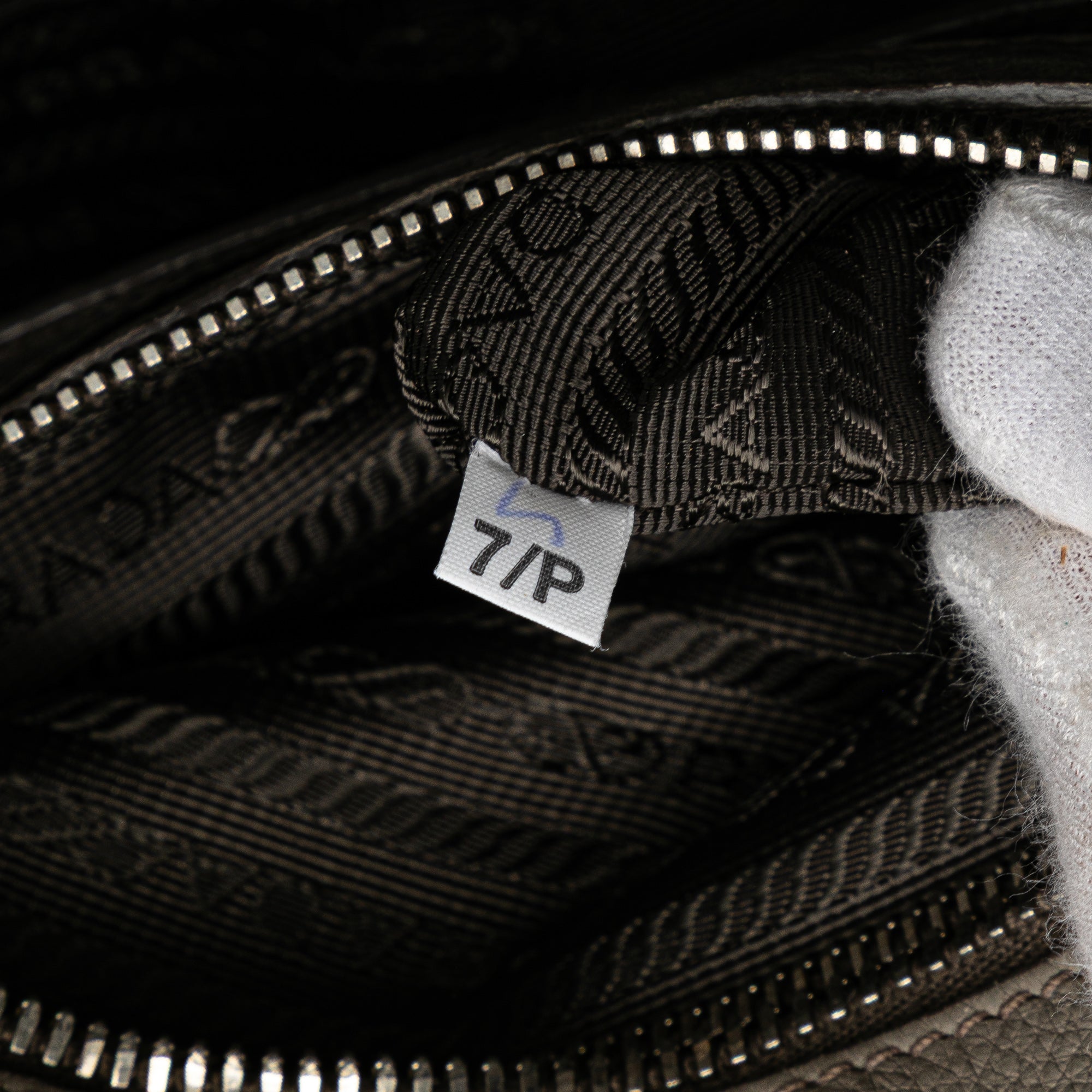 Please note this is a pre-owned item that may display signs of wear consistent with the condition listed above and shown in photos. Designer Revival guarantees this is an authentic Gray Prada Vitello Daino Zip Top Satchel or 100% of your money back. Learn more about our authentication process.