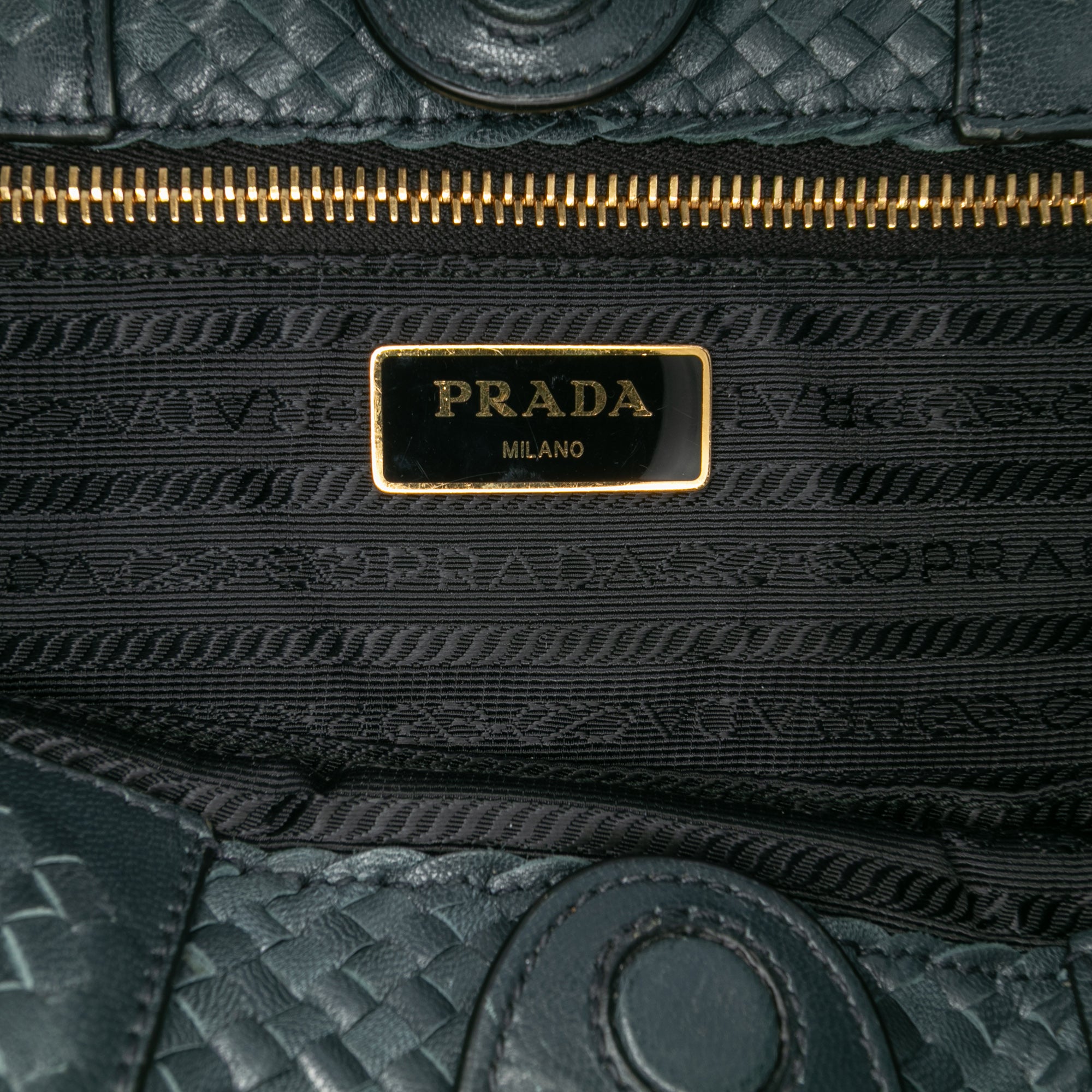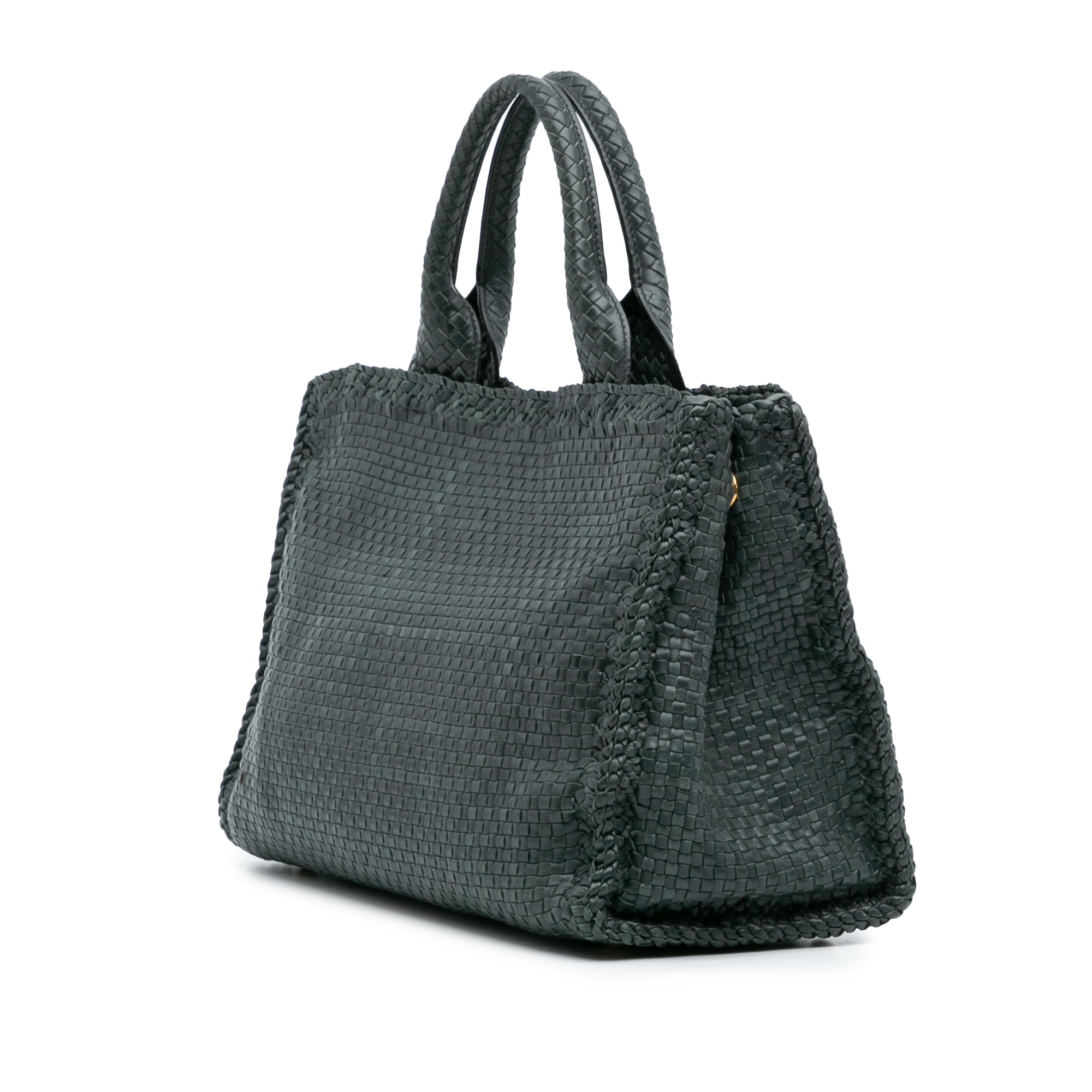 Green Prada Goatskin Woven Madras Satchel