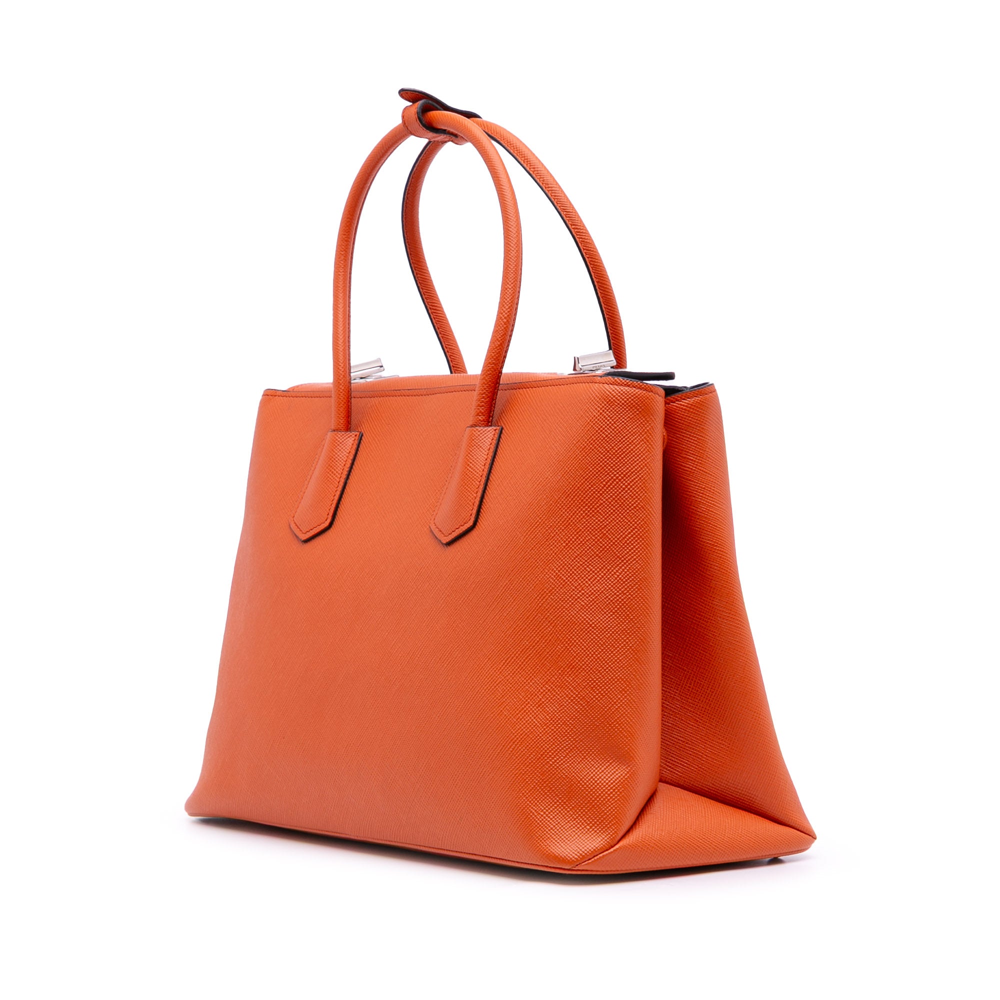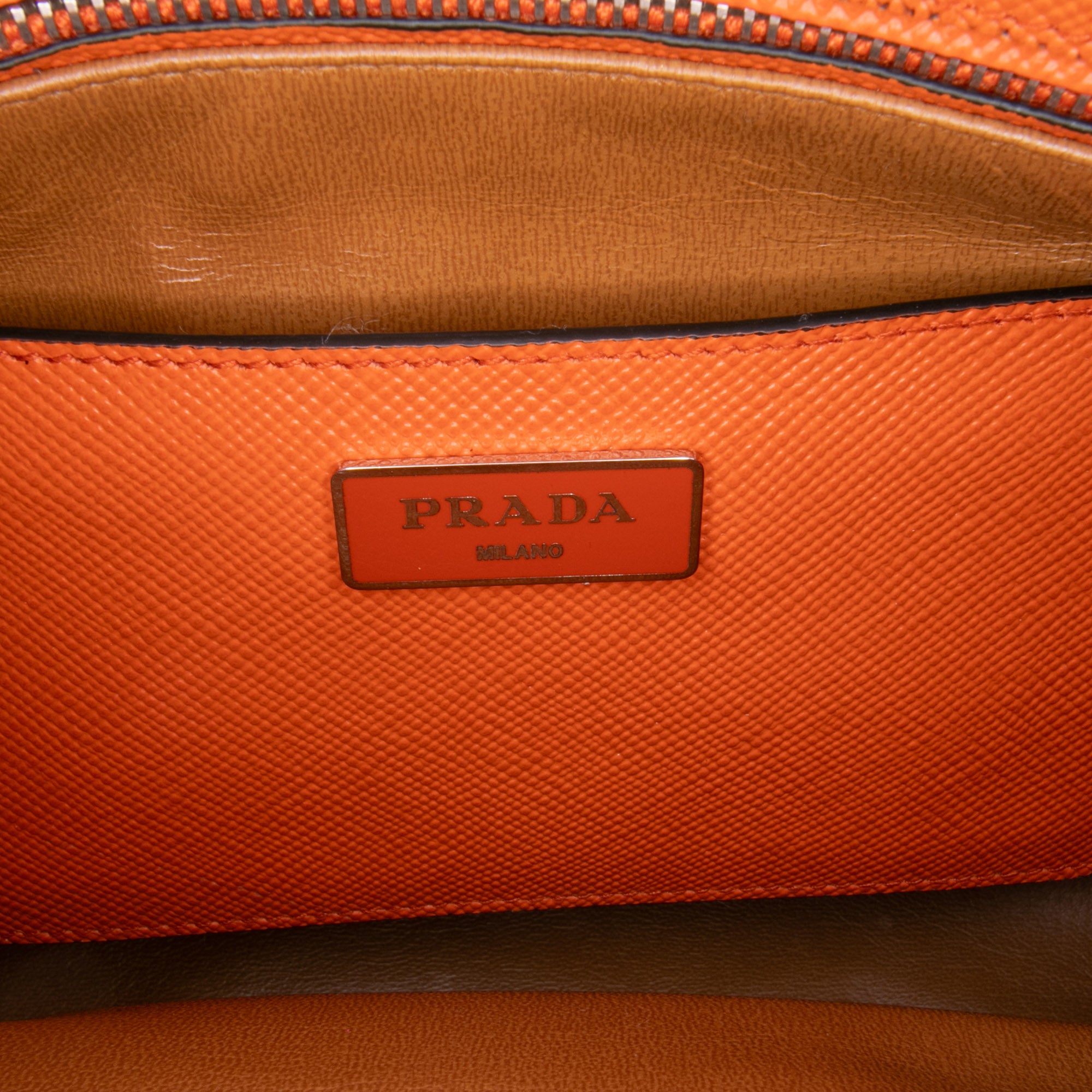 Orange Prada Saffiano Cuir Turnlock Twin Satchel - Designer Revival Orange Prada Saffiano Cuir Turnlock Twin Satchel - Designer Revival