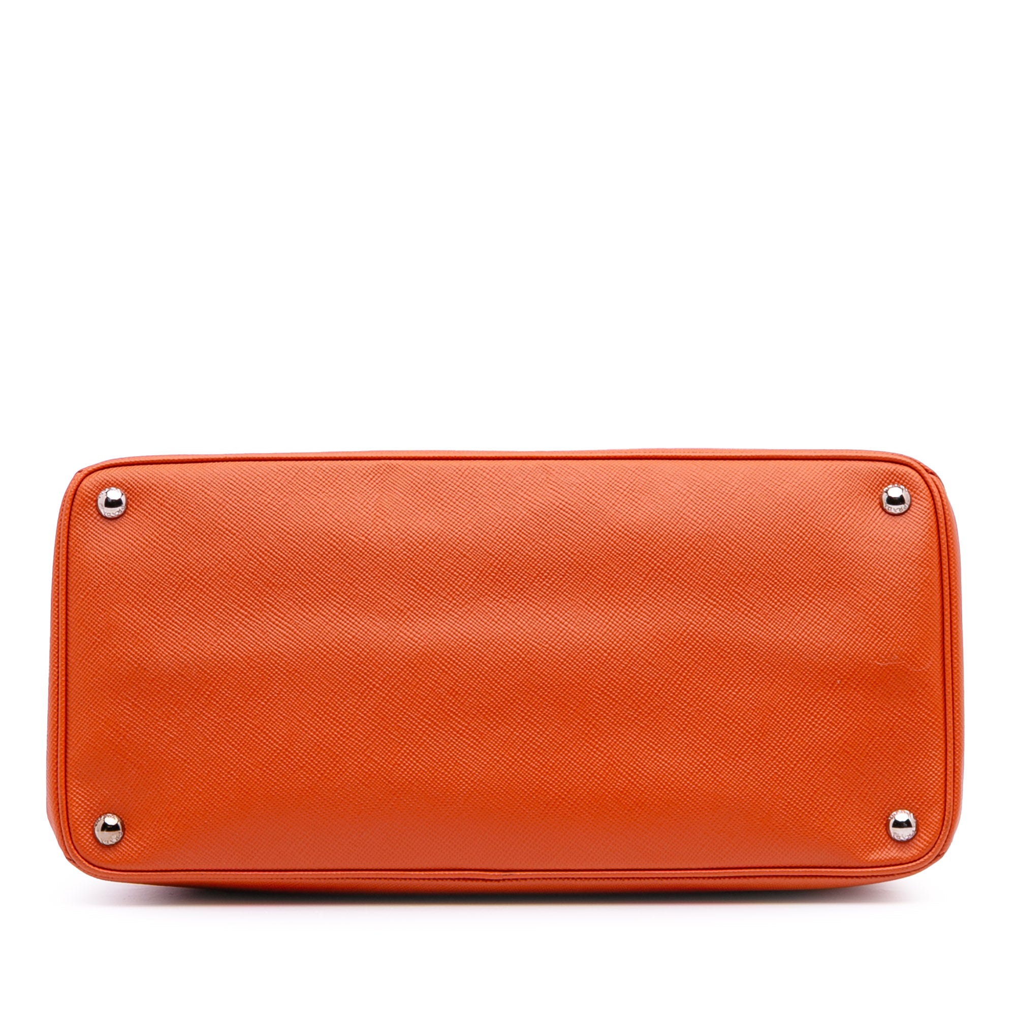 Orange Prada Saffiano Cuir Turnlock Twin Satchel