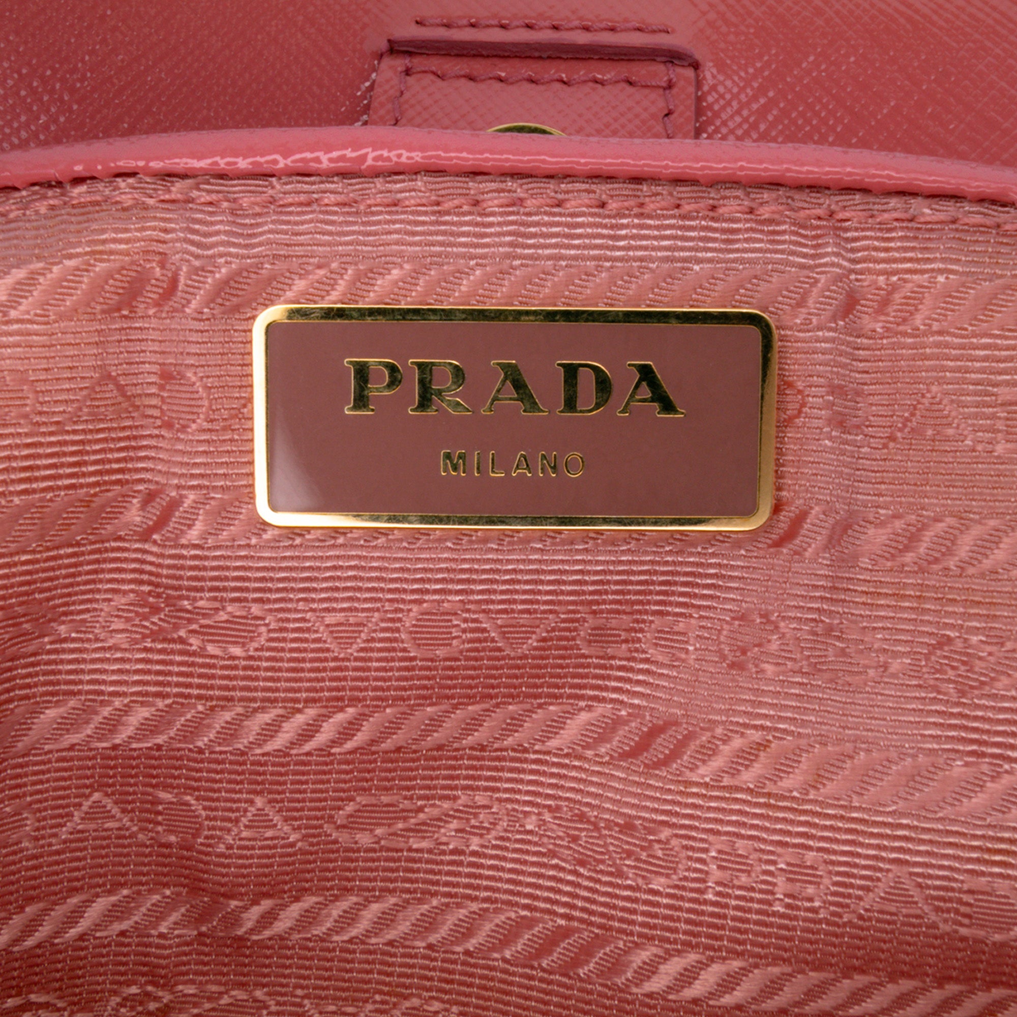 Please note this is a pre-owned item that may display signs of wear consistent with the condition listed above and shown in photos. Designer Revival guarantees this is an authentic Pink Prada Saffiano Vernice Satchel or 100% of your money back. Learn more about our authentication process.