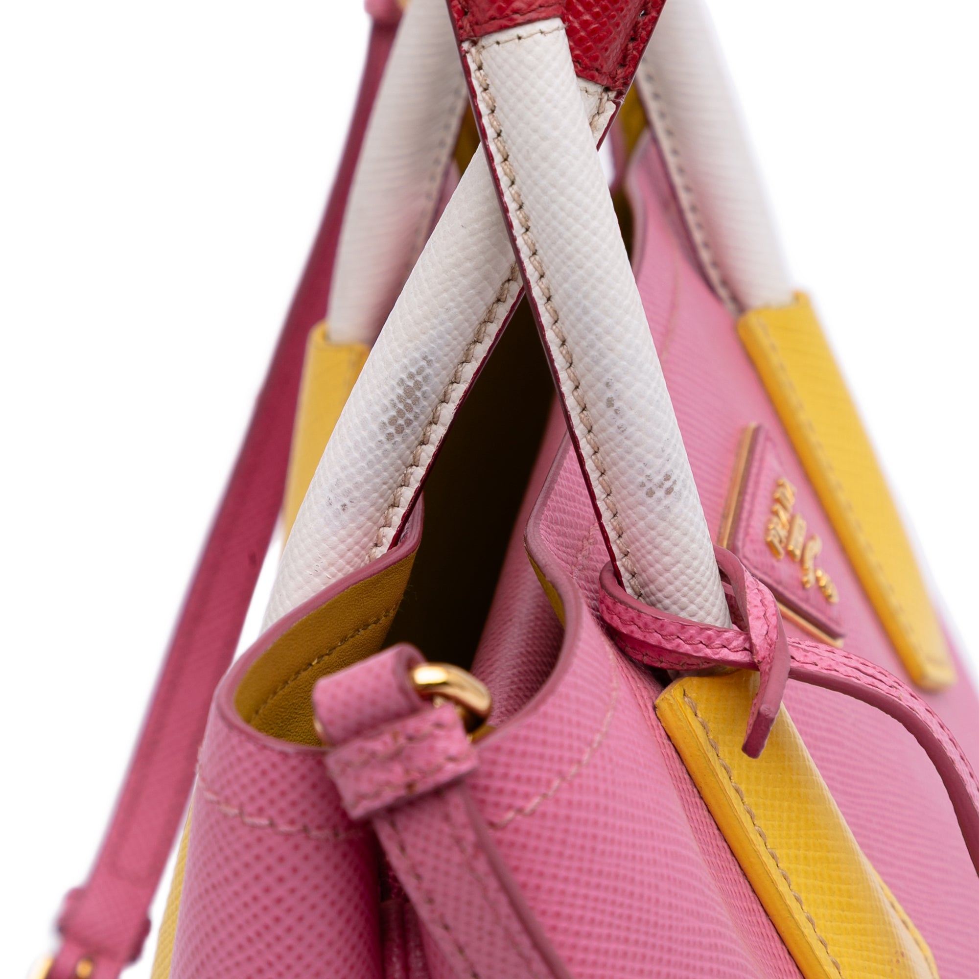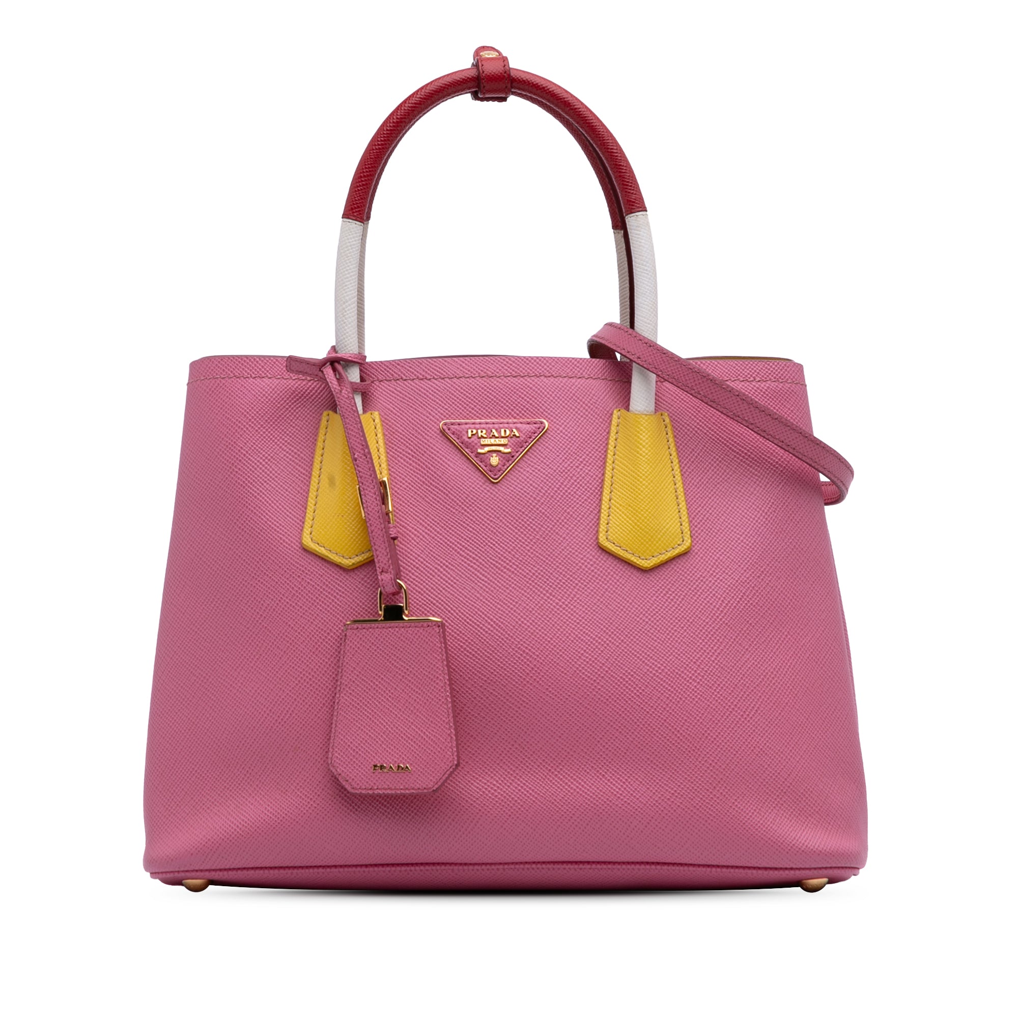 Pink Prada Small Bicolor Saffiano Cuir Double Satchel - Designer Revival Pink Prada Small Bicolor Saffiano Cuir Double Satchel - Designer Revival