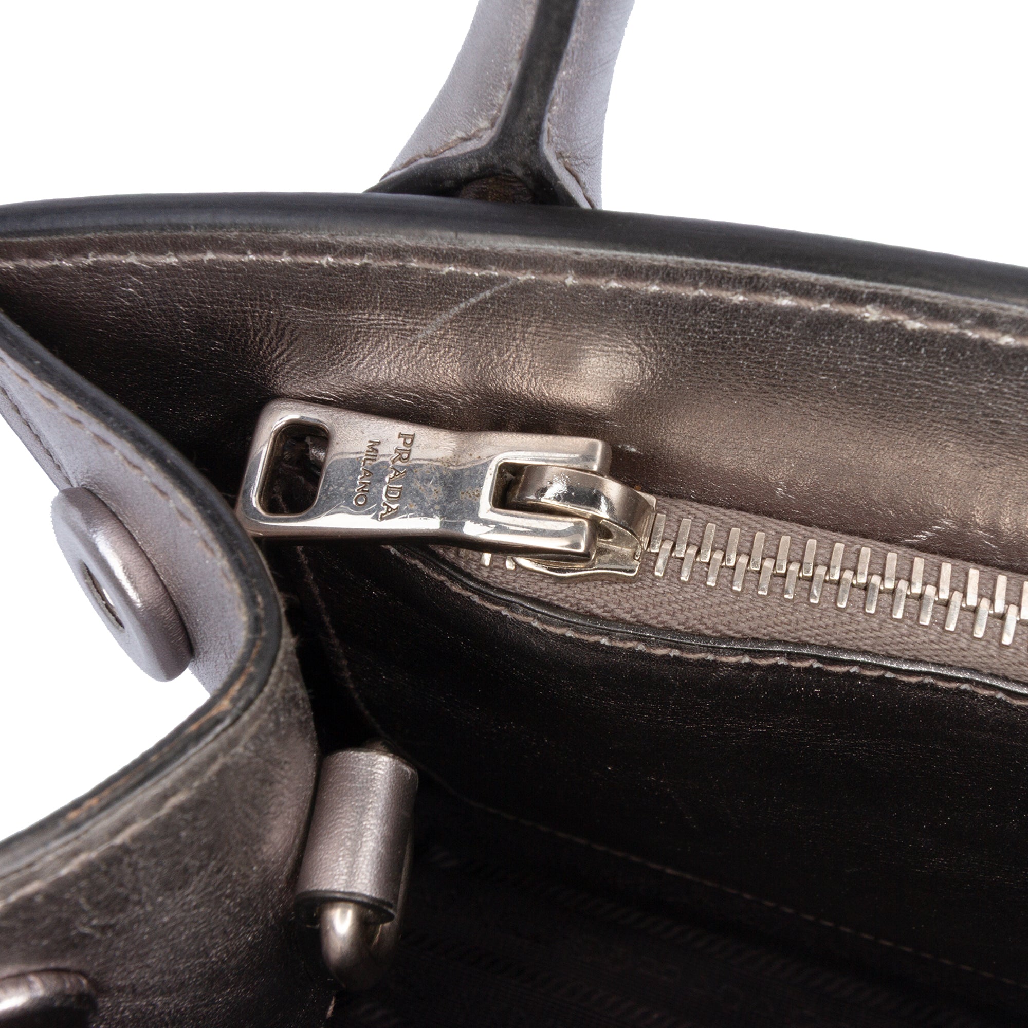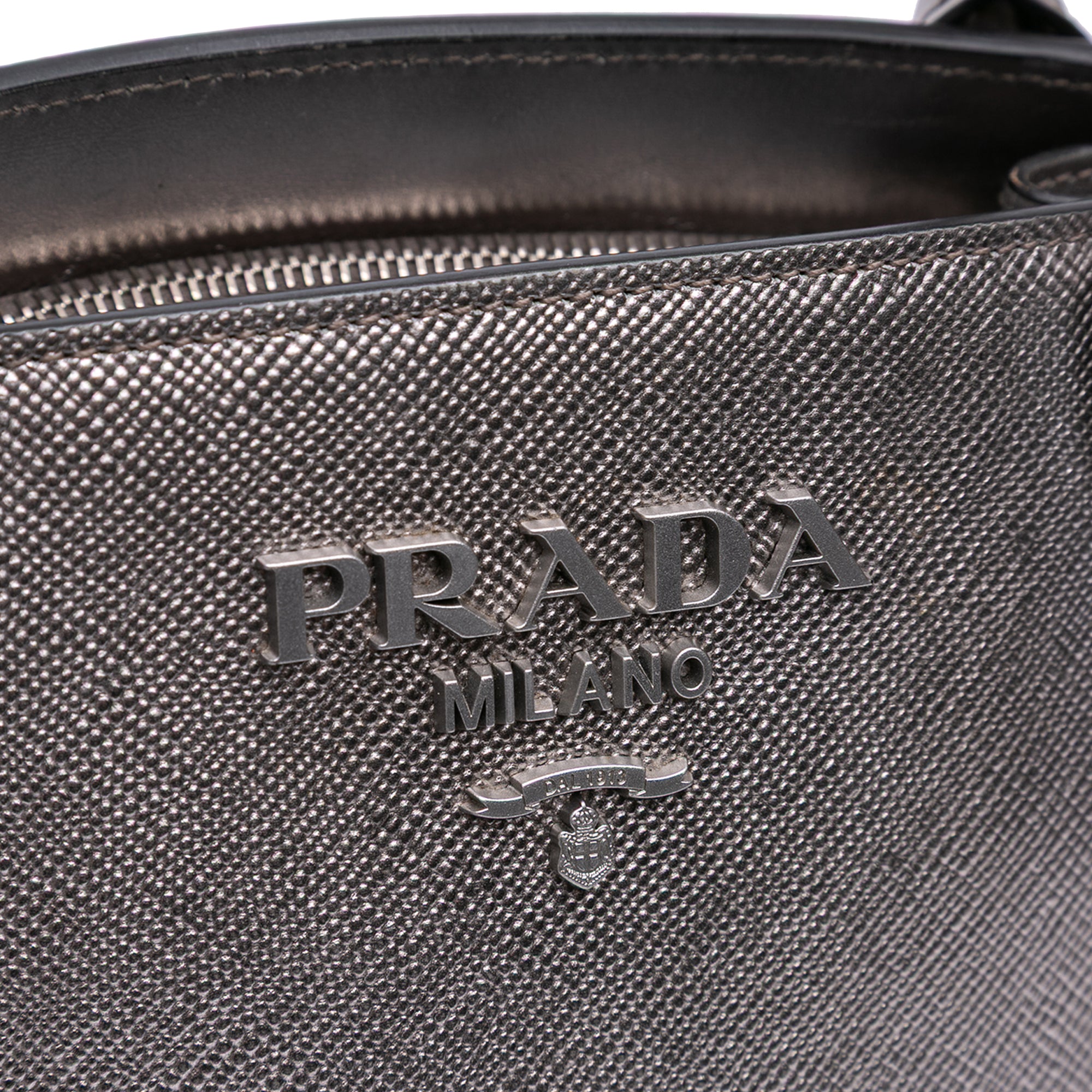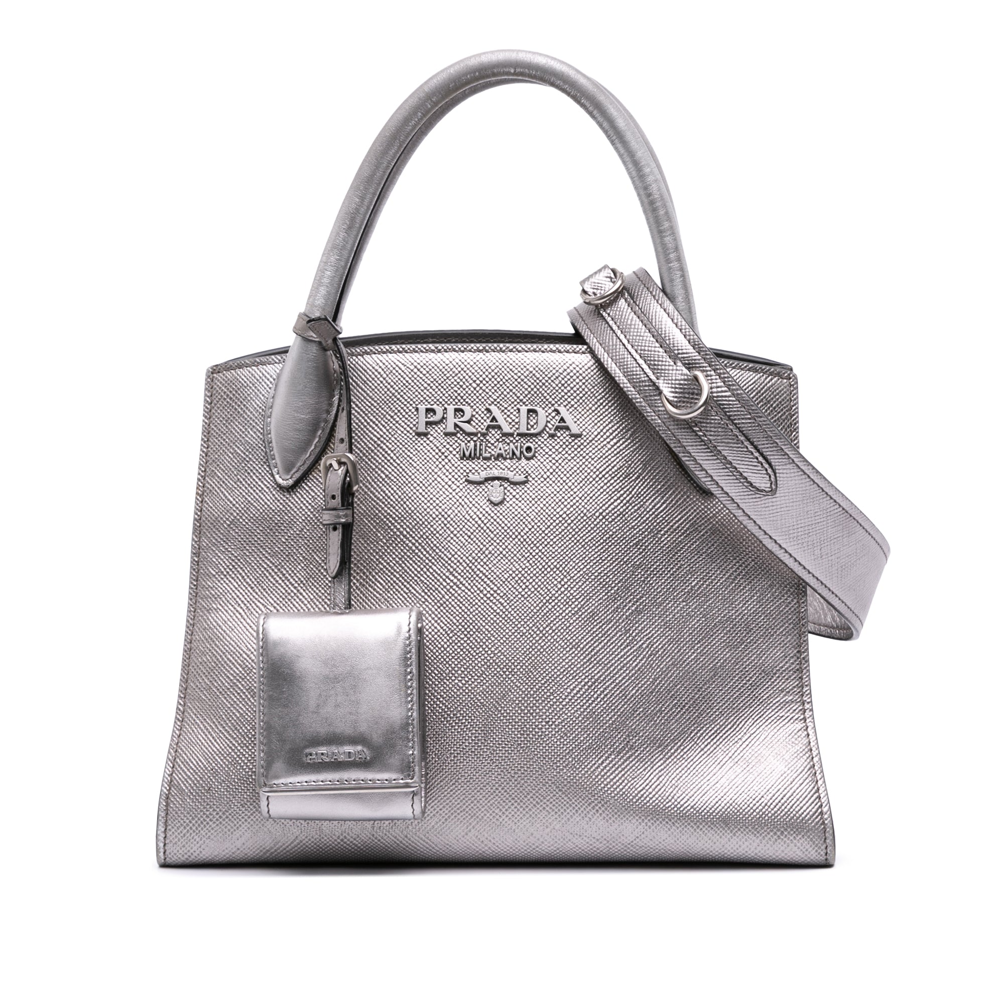 Please note this is a pre-owned item that may display signs of wear consistent with the condition listed above and shown in photos. Designer Revival guarantees this is an authentic Silver Prada Small Saffiano Cuir Monochrome Top Handle Tote Satchel or 100% of your money back. Learn more about our authentication process.