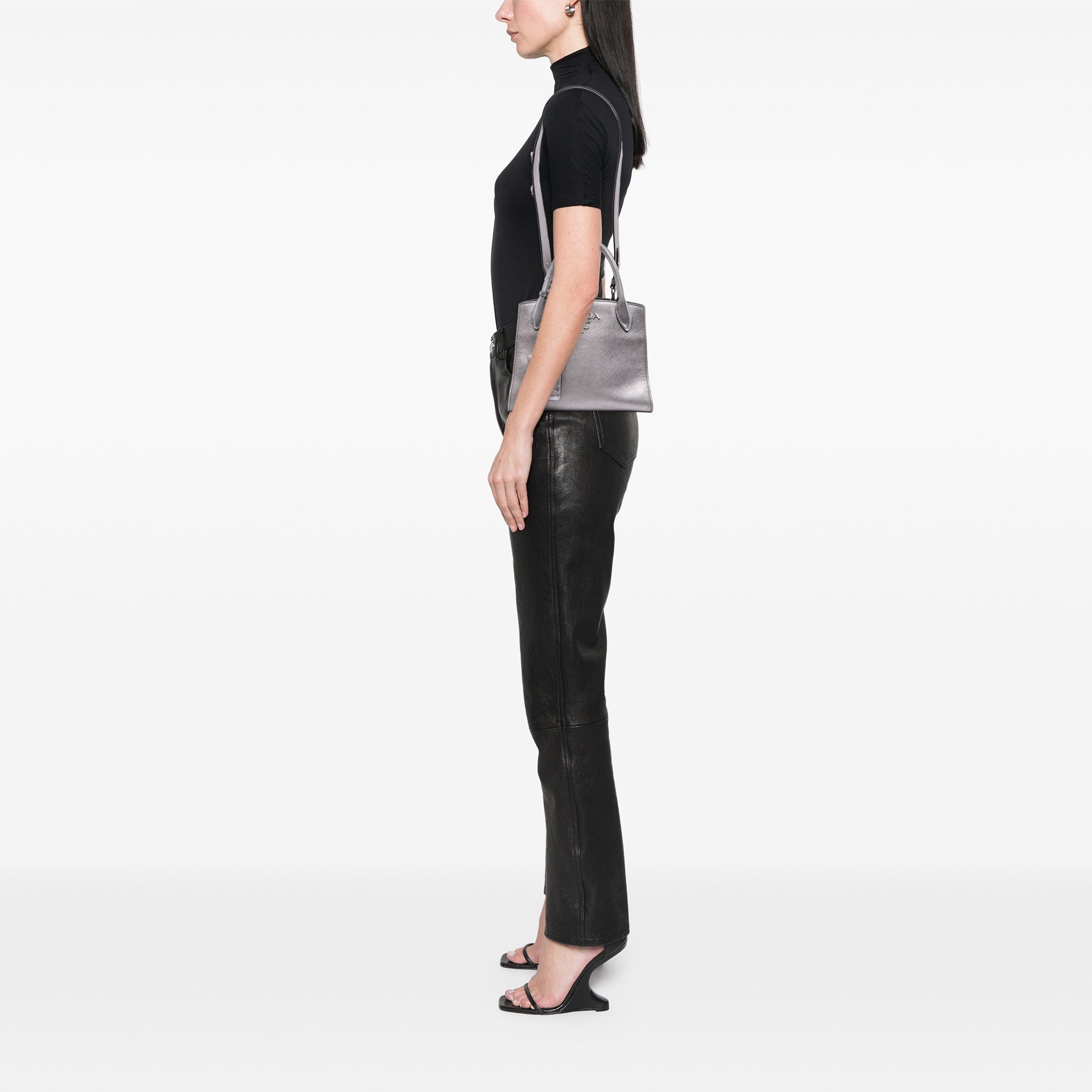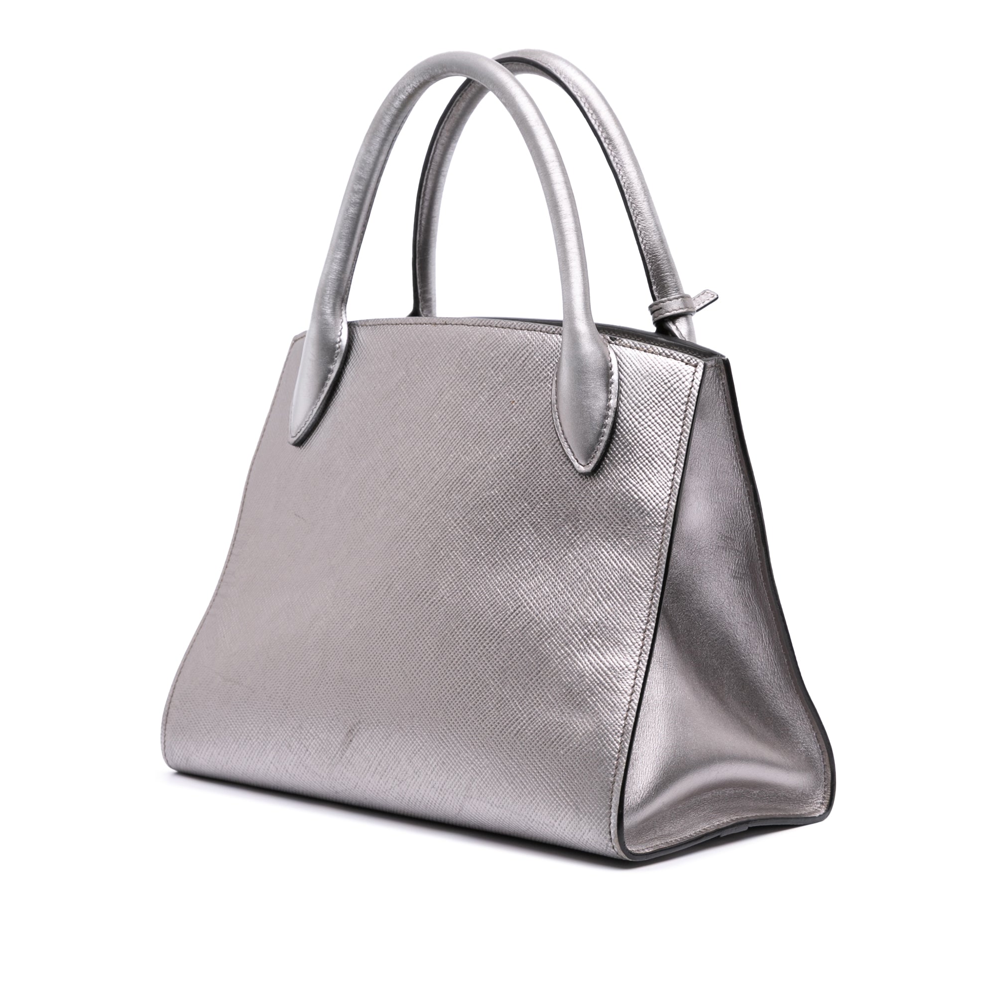 Silver Prada Small Saffiano Cuir Monochrome Top Handle Tote Satchel