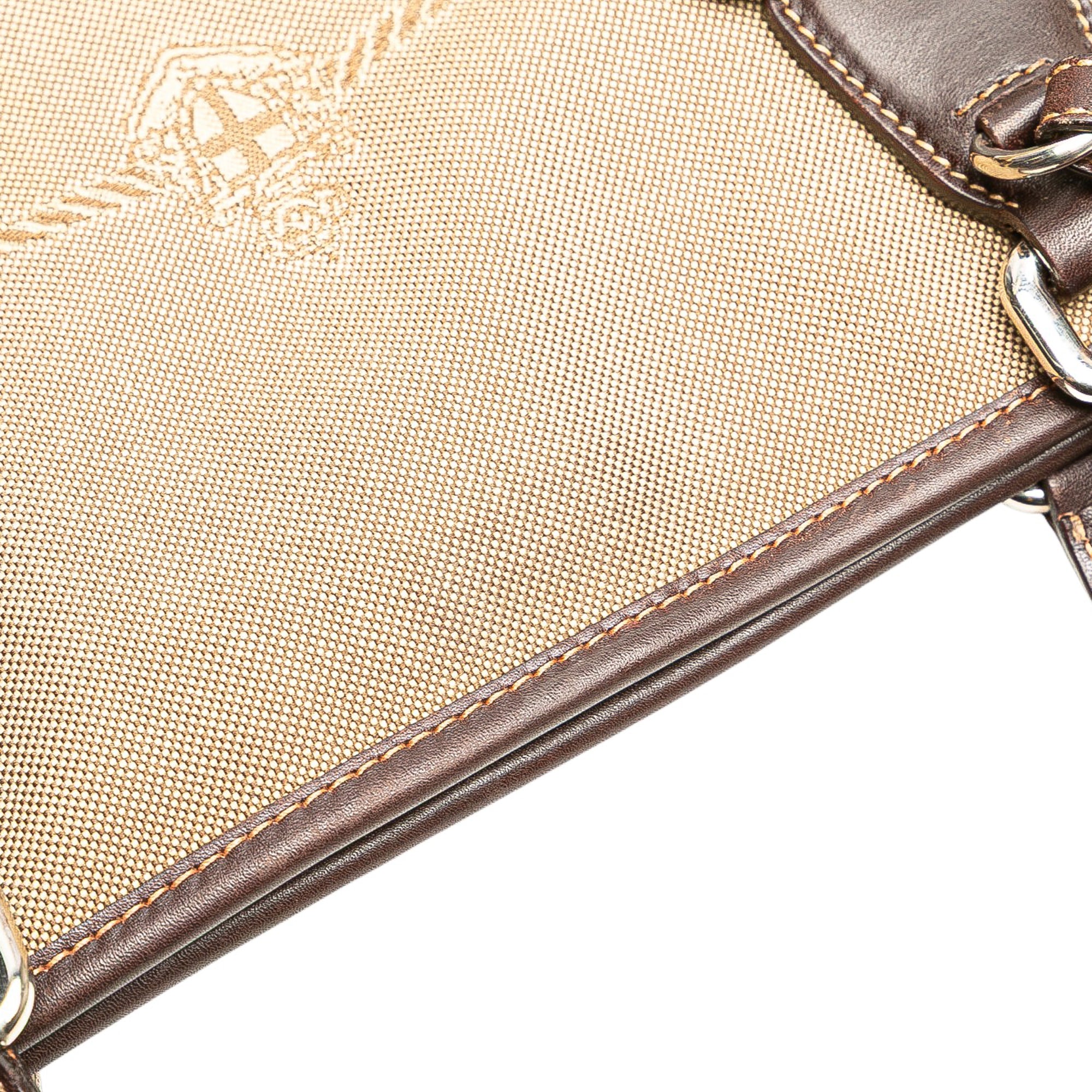 Please note this is a pre-owned item that may display signs of wear consistent with the condition listed above and shown in photos. Designer Revival guarantees this is an authentic Brown Prada Leather Trimmed Canvas Canapa Logo Satchel or 100% of your money back. Learn more about our authentication process.