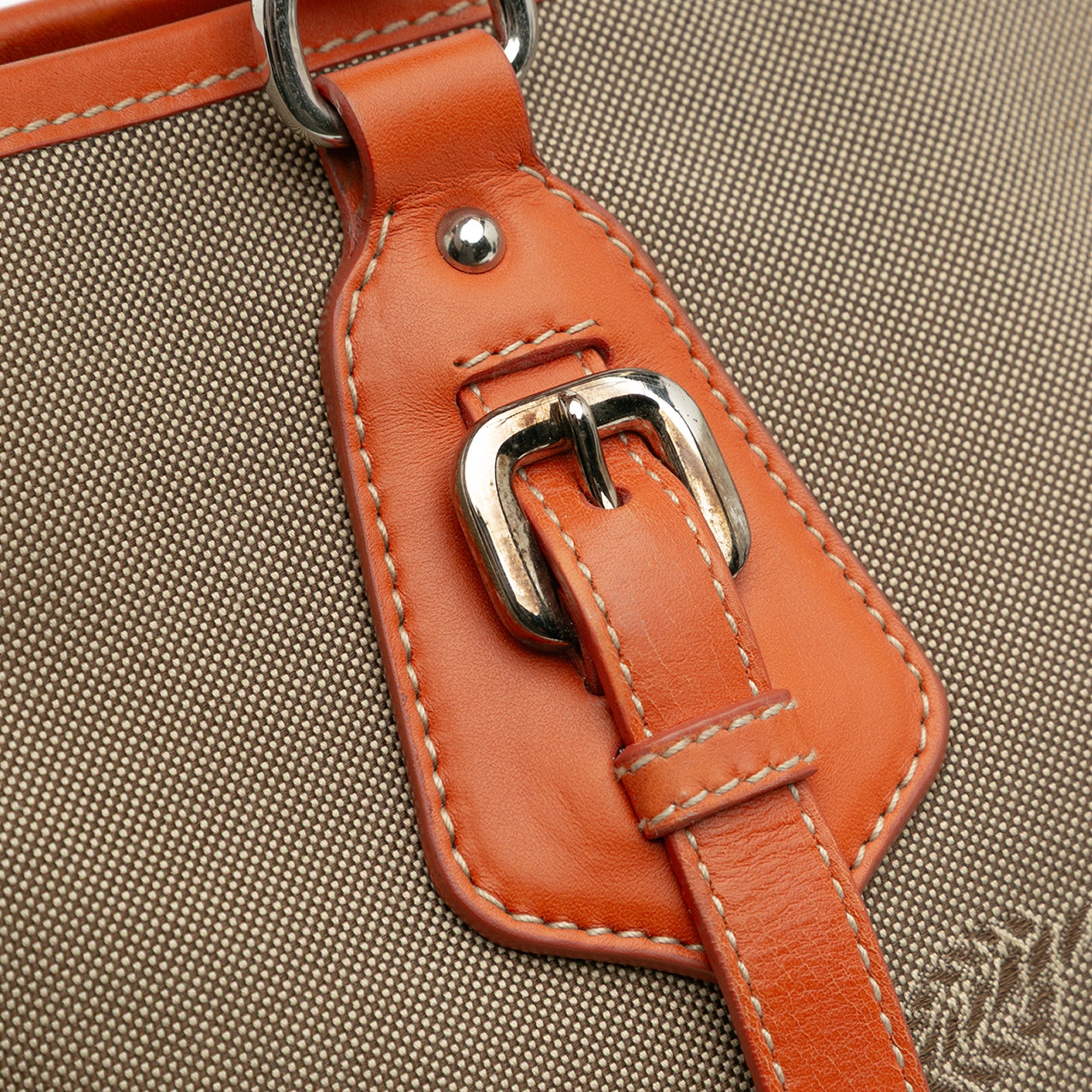Please note this is a pre-owned item that may display signs of wear consistent with the condition listed above and shown in photos. Designer Revival guarantees this is an authentic Taupe Prada Canvas Canapa Logo Convertible Tote Satchel or 100% of your money back. Learn more about our authentication process.