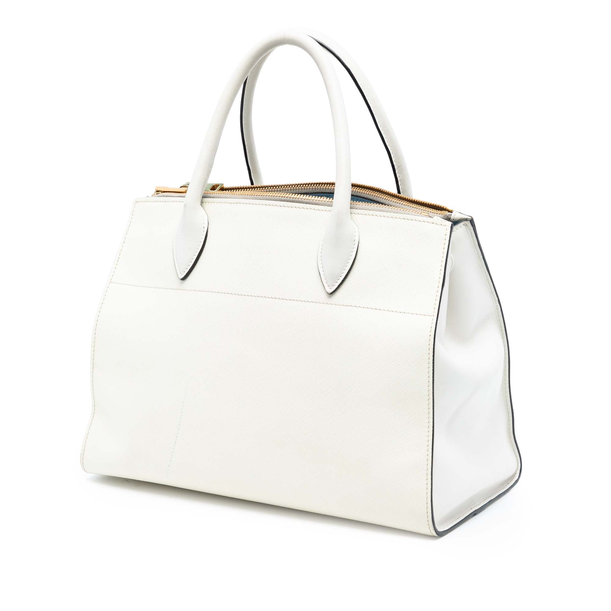 Please note this is a pre-owned item that may display signs of wear consistent with the condition listed above and shown in photos. Designer Revival guarantees this is an authentic White Prada City Calf Trimmed Saffiano Greche Paradigme Bag Satchel or 100% of your money back. Learn more about our authentication process.