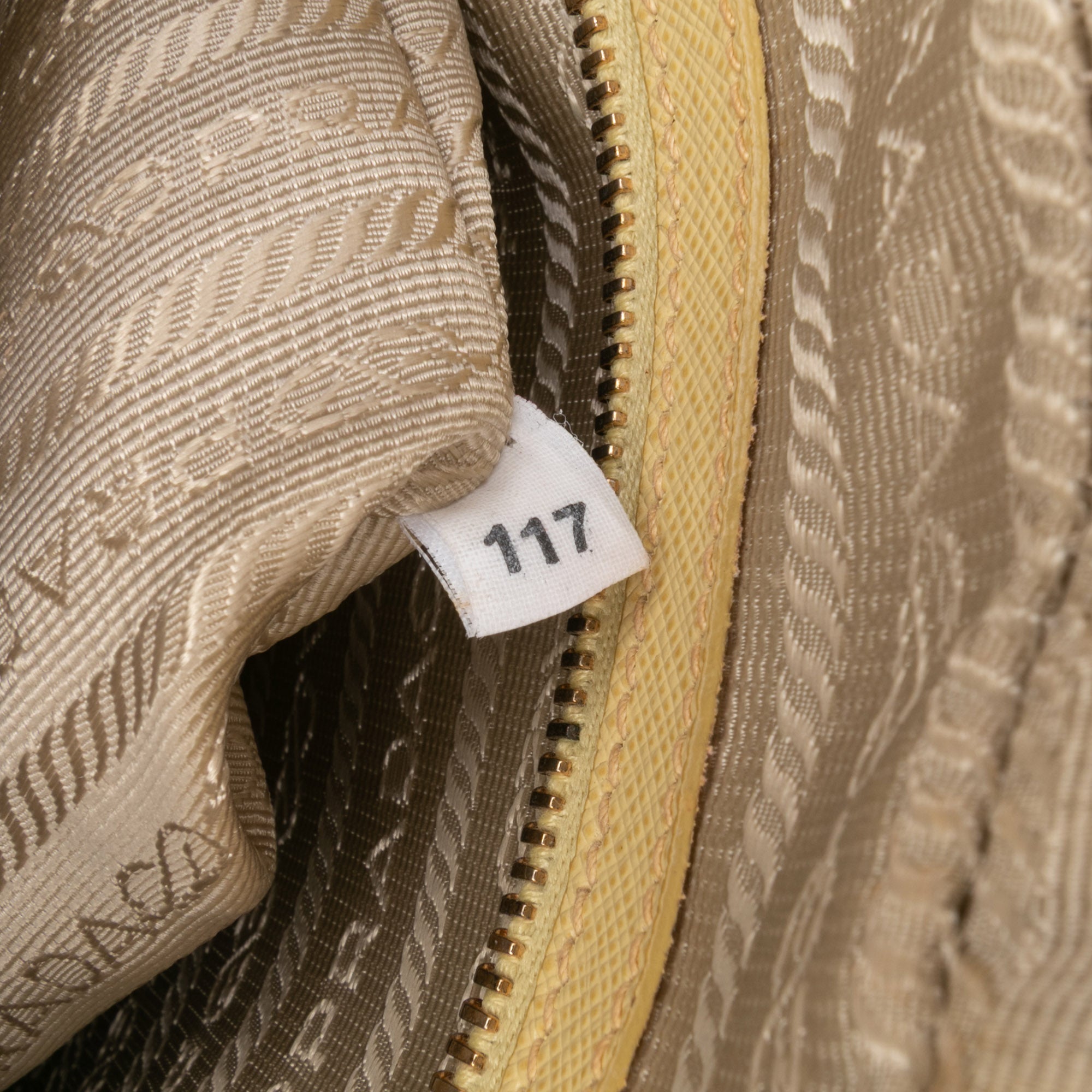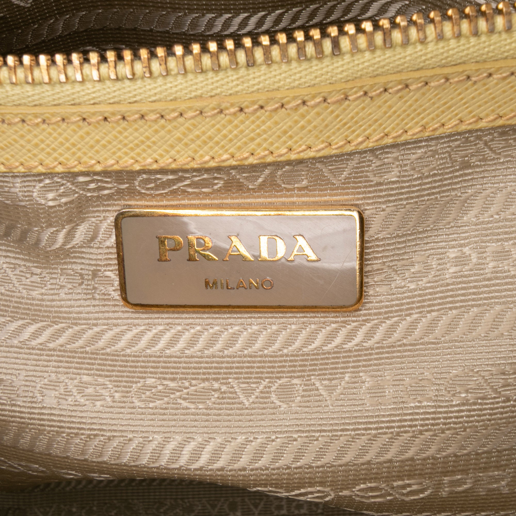 Please note this is a pre-owned item that may display signs of wear consistent with the condition listed above and shown in photos. Designer Revival guarantees this is an authentic Yellow Prada Saffiano Lux Satchel or 100% of your money back. Learn more about our authentication process.