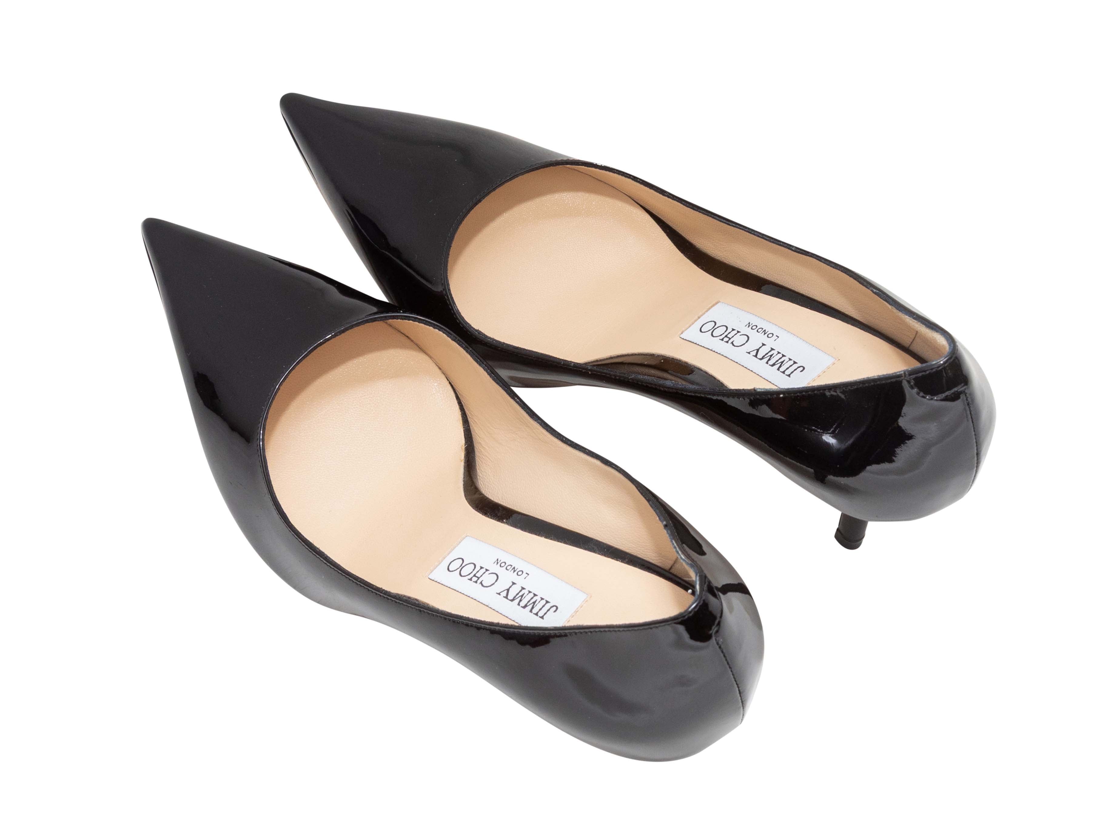Product Details: Black patent leather pointed-toe pumps by Jimmy Choo. 2.75" heel height.