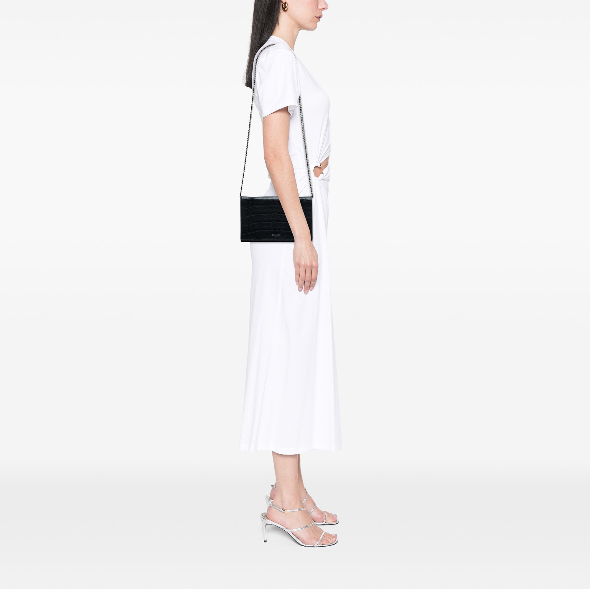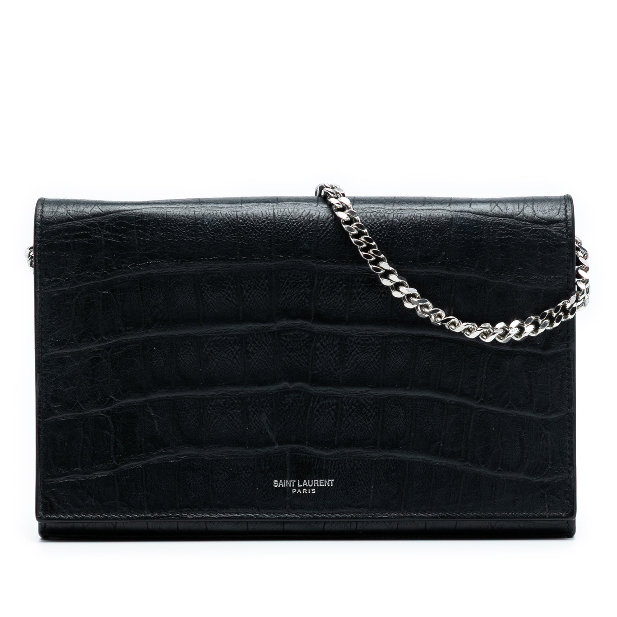 Black Saint Laurent Croc Embossed Leather Wallet On Chain Crossbody Bag