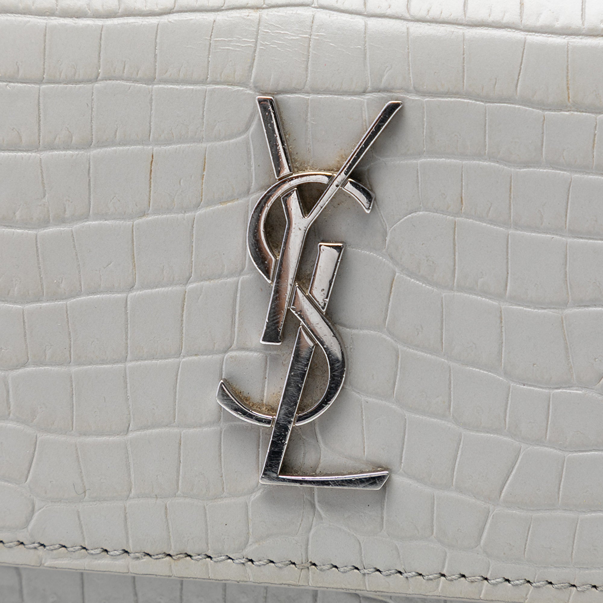Gray Saint Laurent Mini Croc Embossed Leather Monogram Sunset Wallet on Chain Crossbody Bag