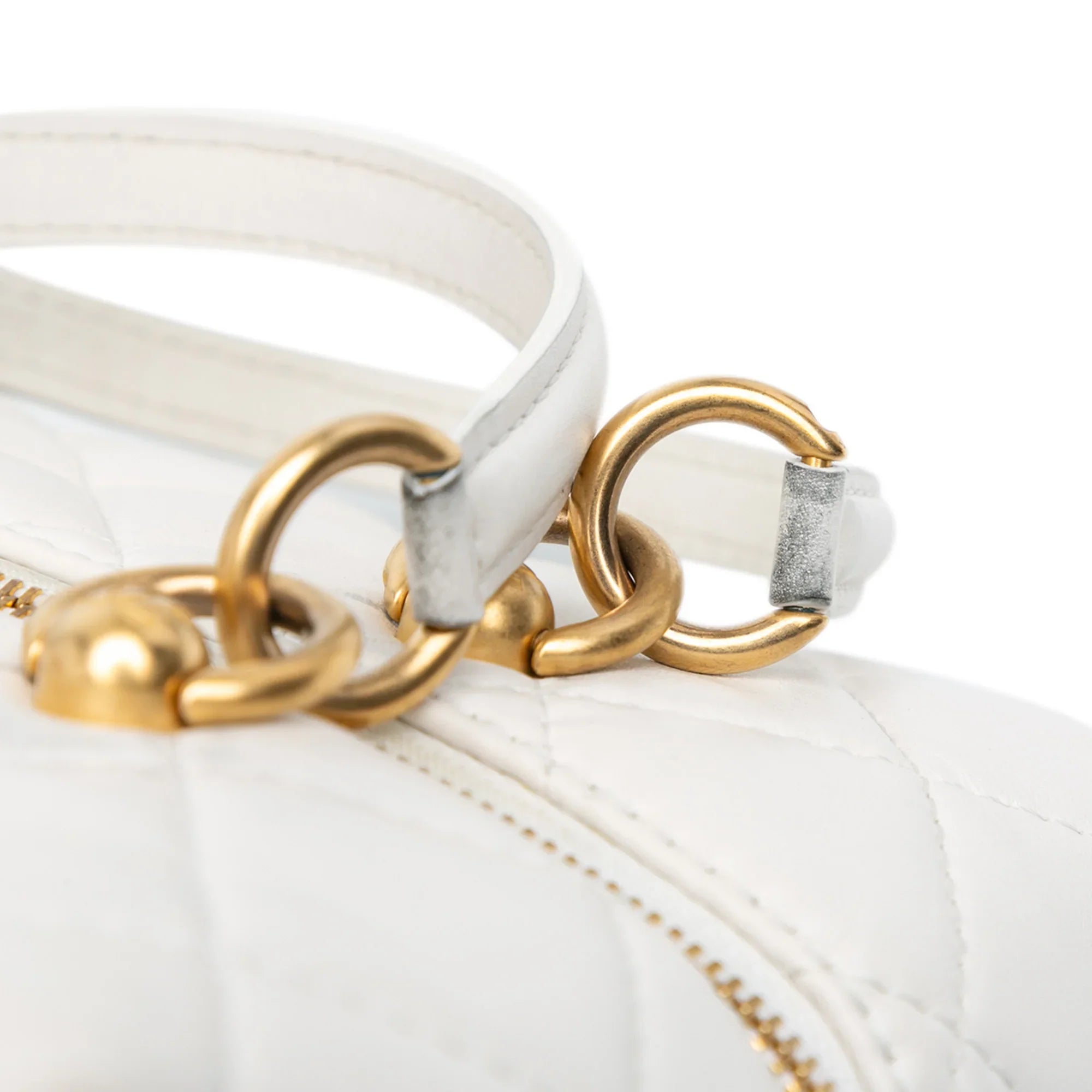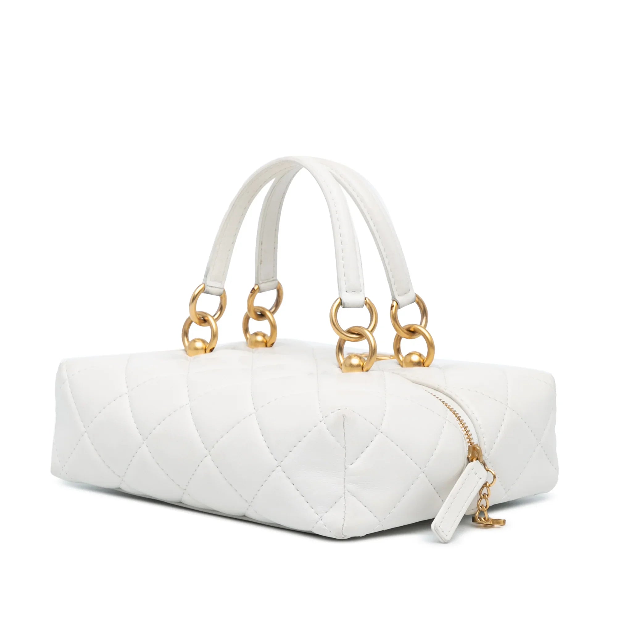 White Chanel Métiers d'Art CC Quilted Lambskin Box with Top Handle Bag Satchel