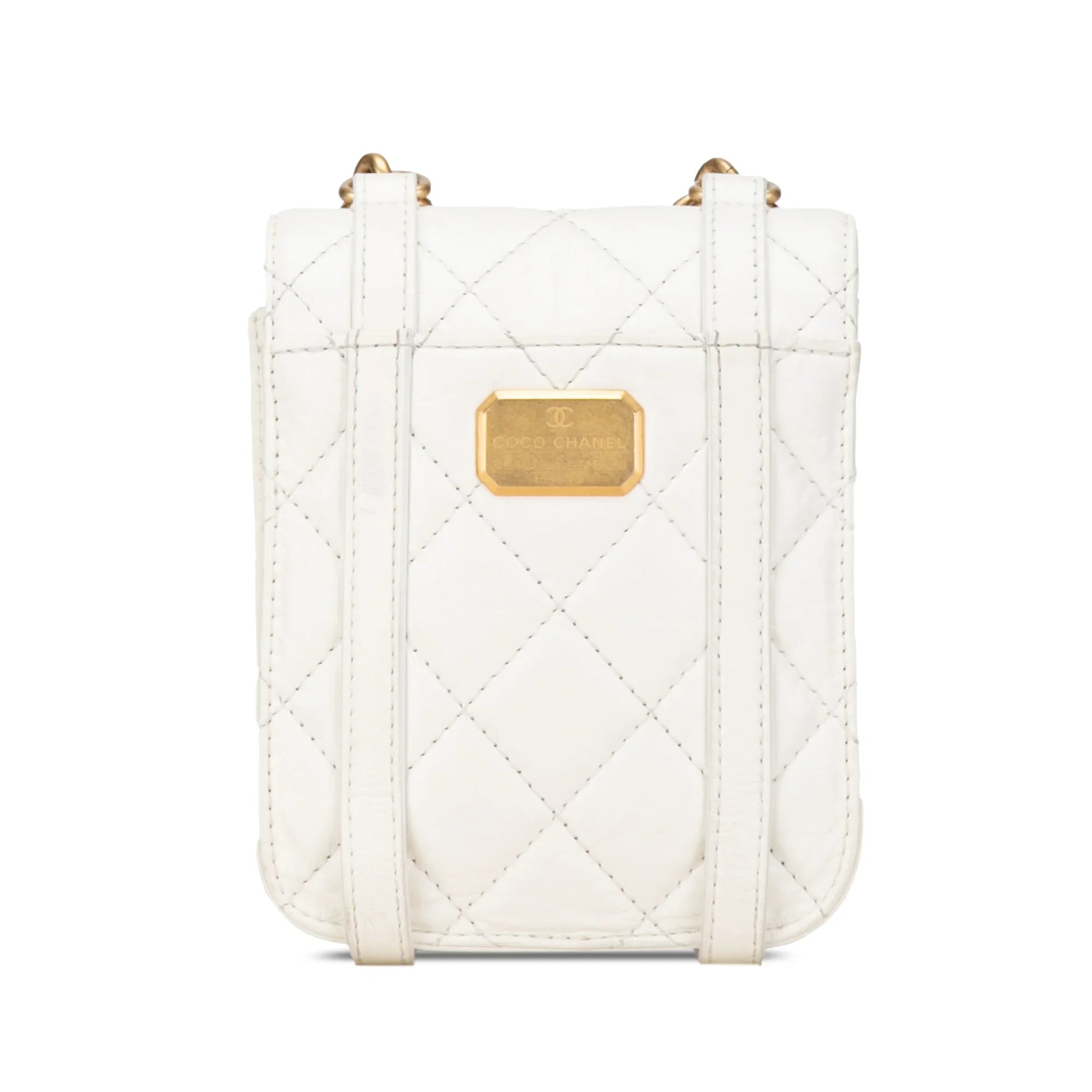 White Chanel Mini Aged Calfskin City School Flap Satchel