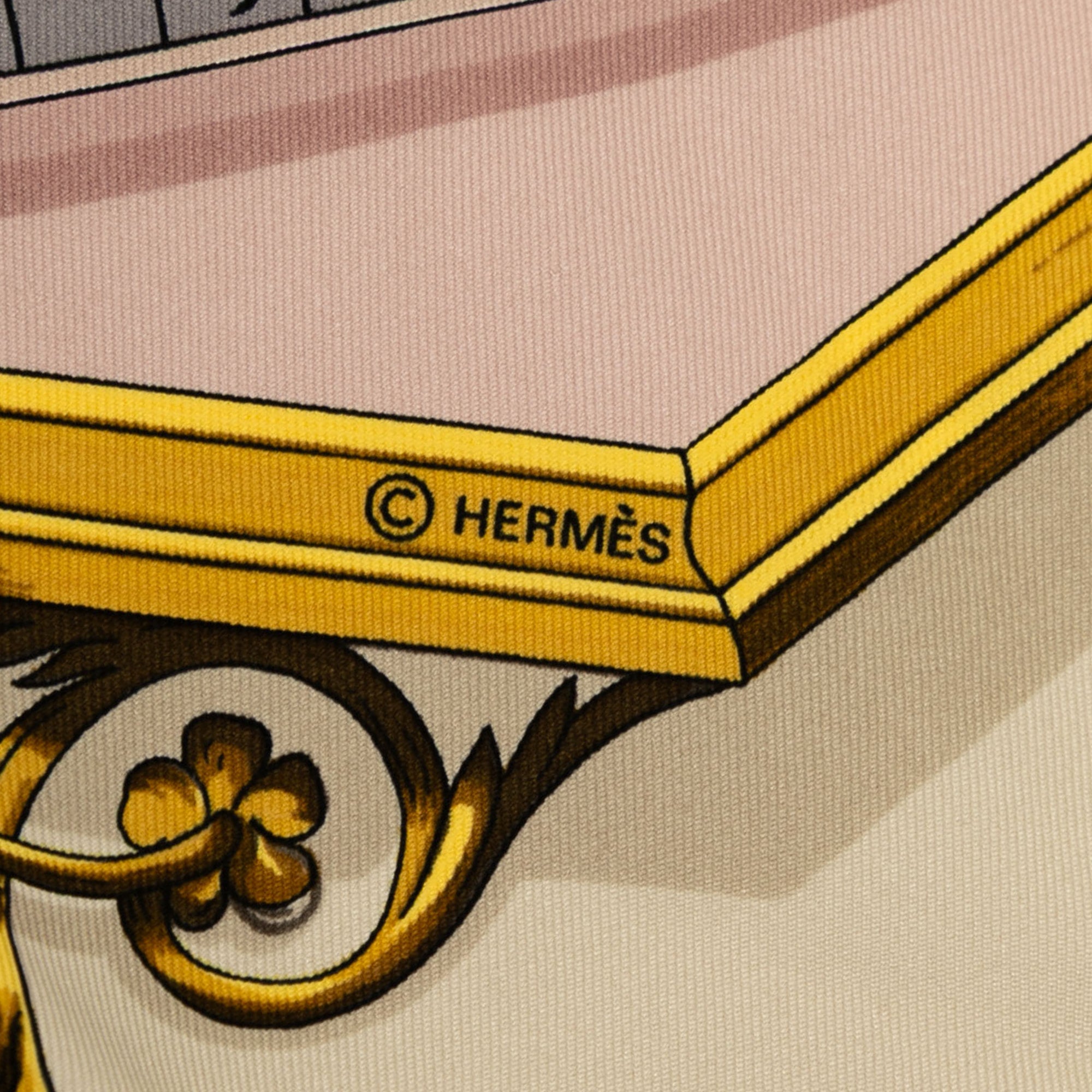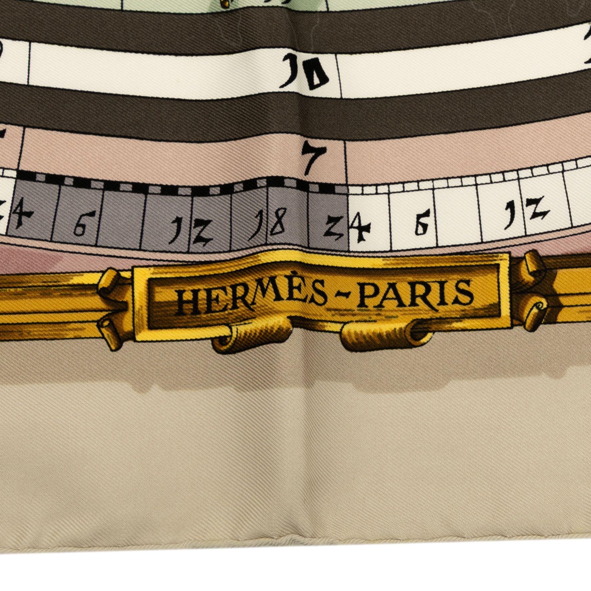 Product Details: Beige Hermès Astrologie Dies et Hore Silk Scarf Scarves. This scarf features the Astrologie Dies et Hore print on 100% silk. 34.8" L x 34.3" W x 0" D.