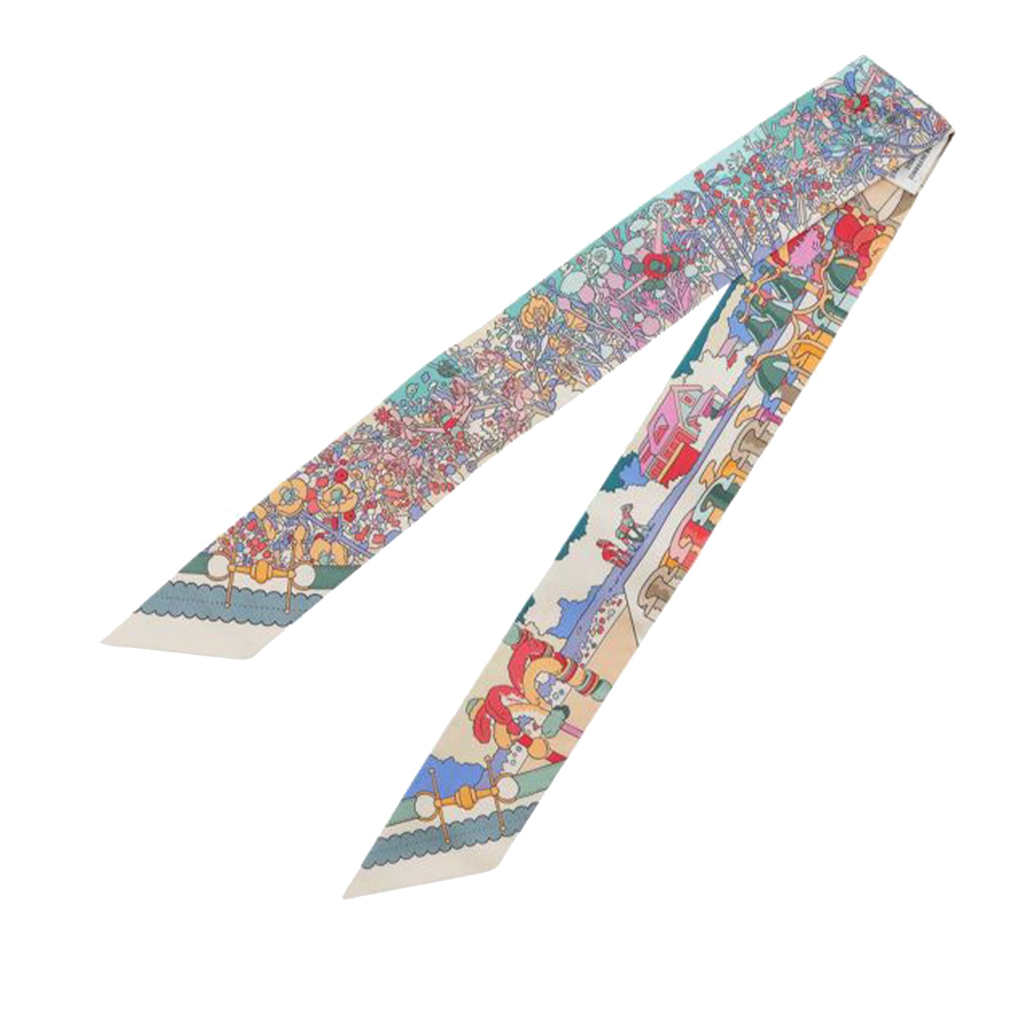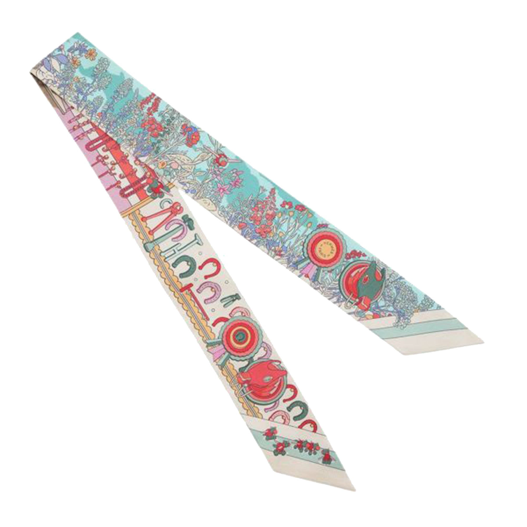 Green Hermès Pony Pit Stop Silk Twilly Scarf Scarves