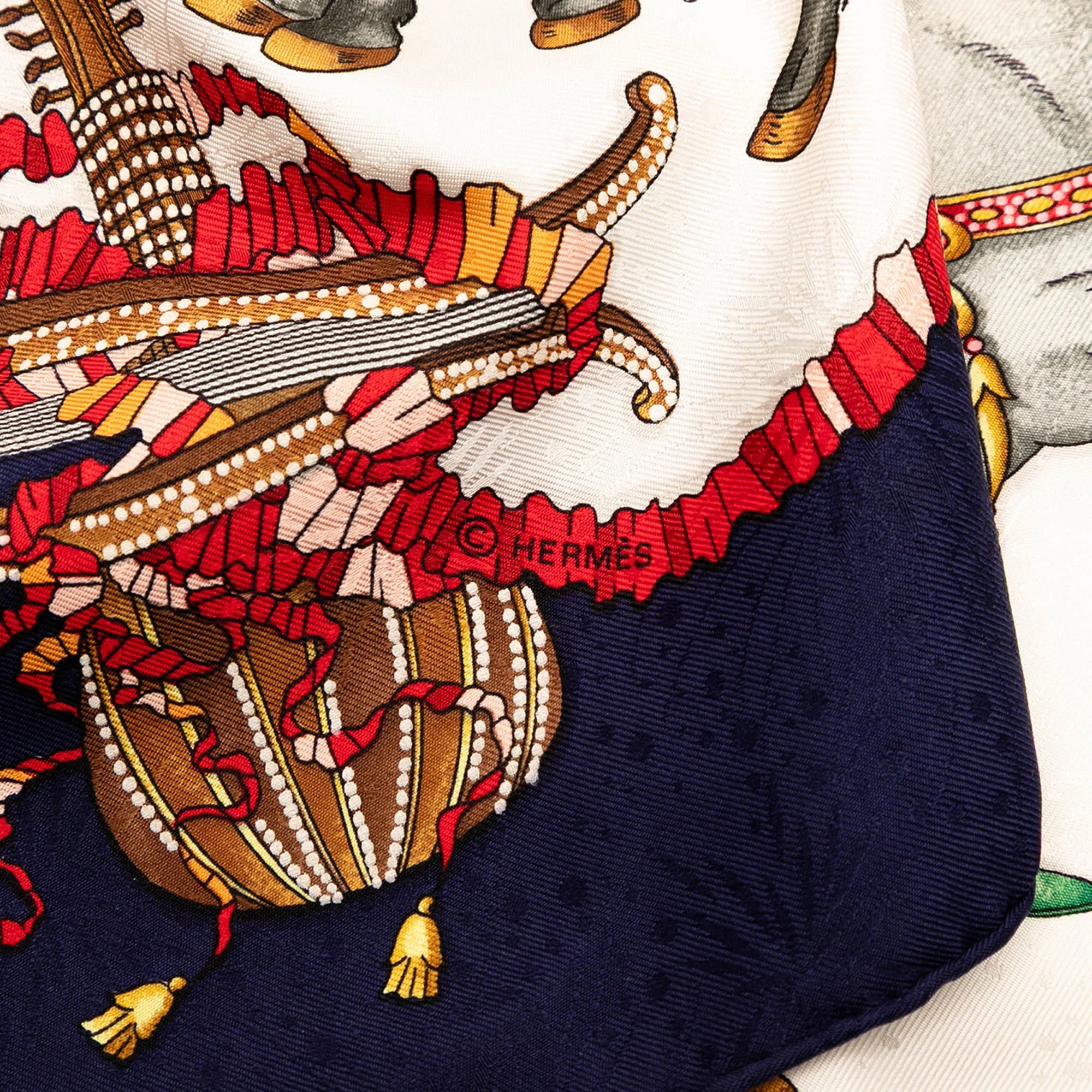 White Hermès Les Fetes Du Roi Soleil Silk Scarf Scarves