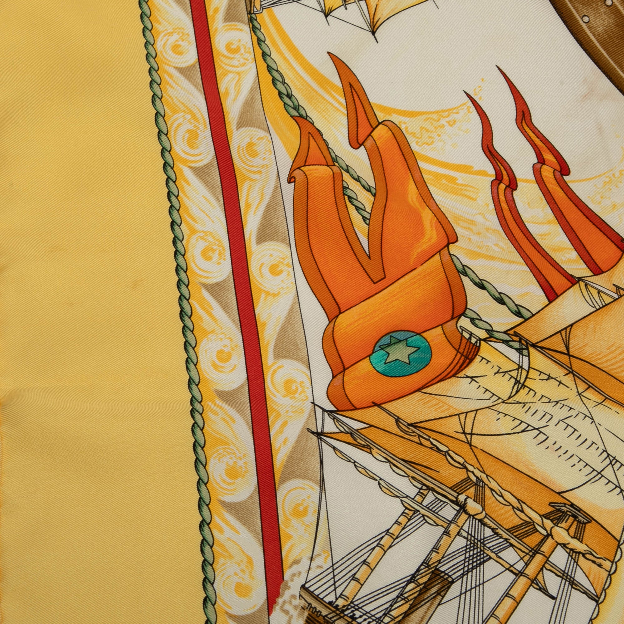 Product Details: Yellow Hermès Vive le Vent Silk Scarf Scarves. The Vive le Vent scarf features a print on 100% silk. 34.6" L x 34.6" W x 0" D.