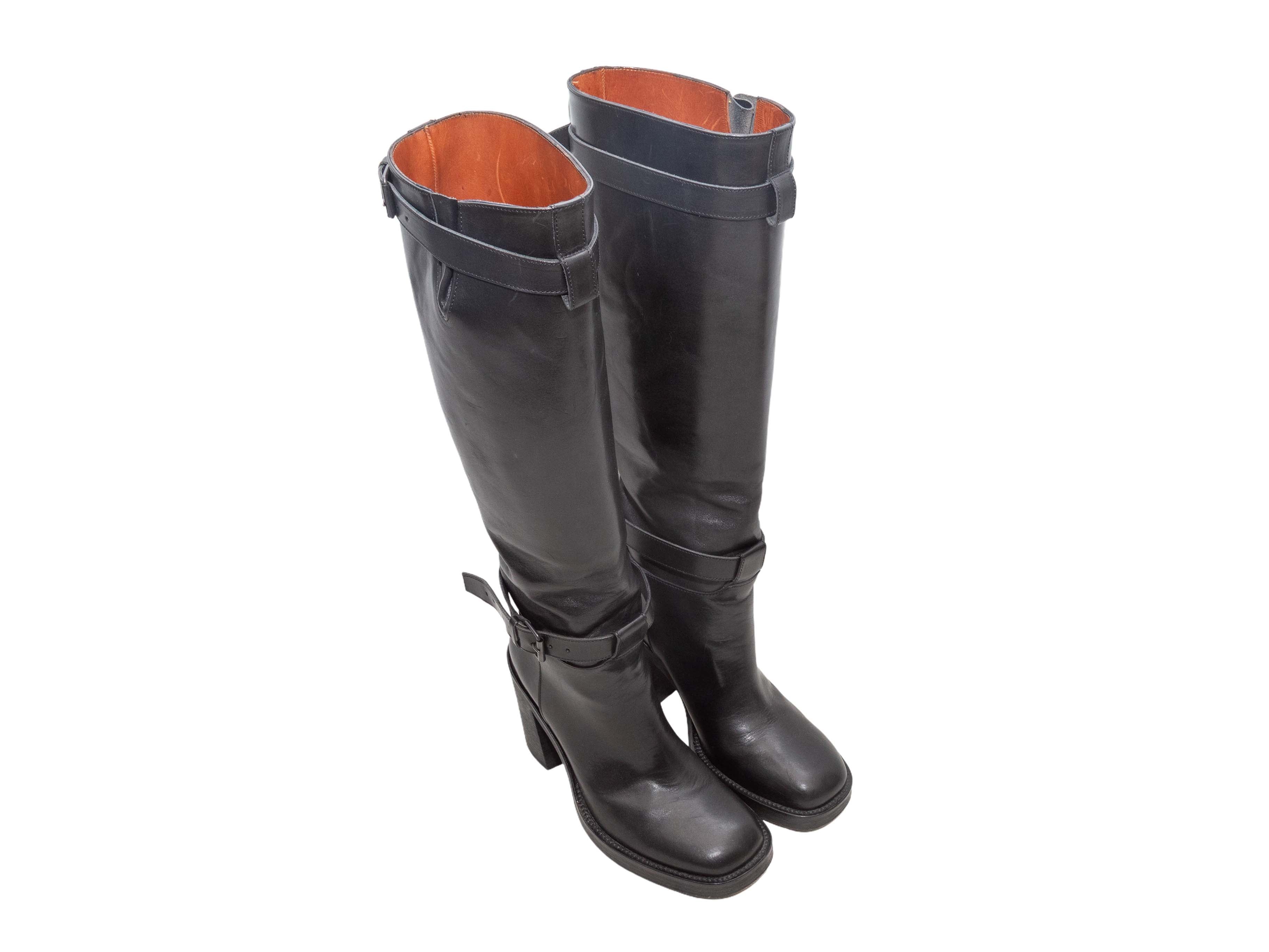 Black Ann Demeulemeester Heeled Knee-High Buckle Boots Size 40