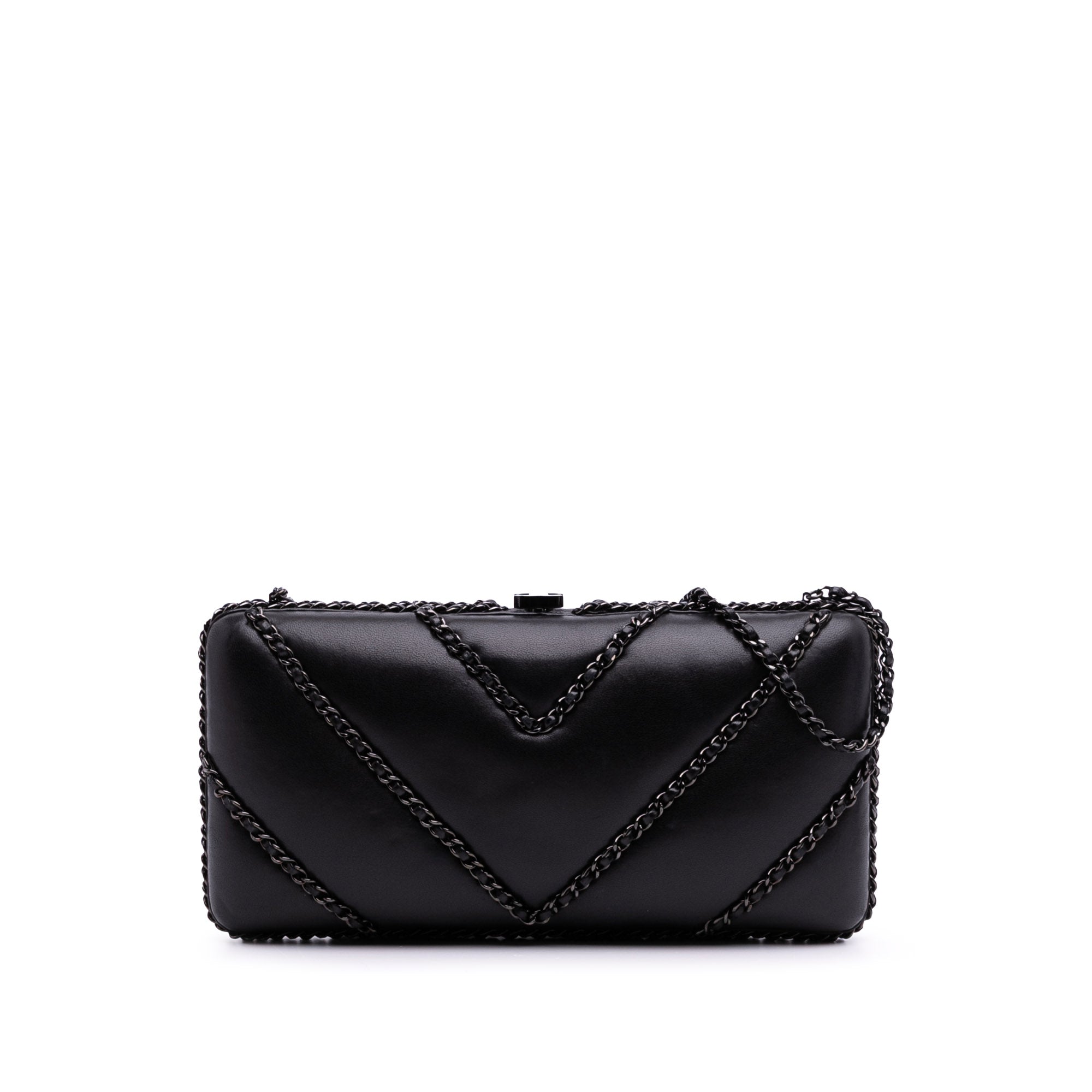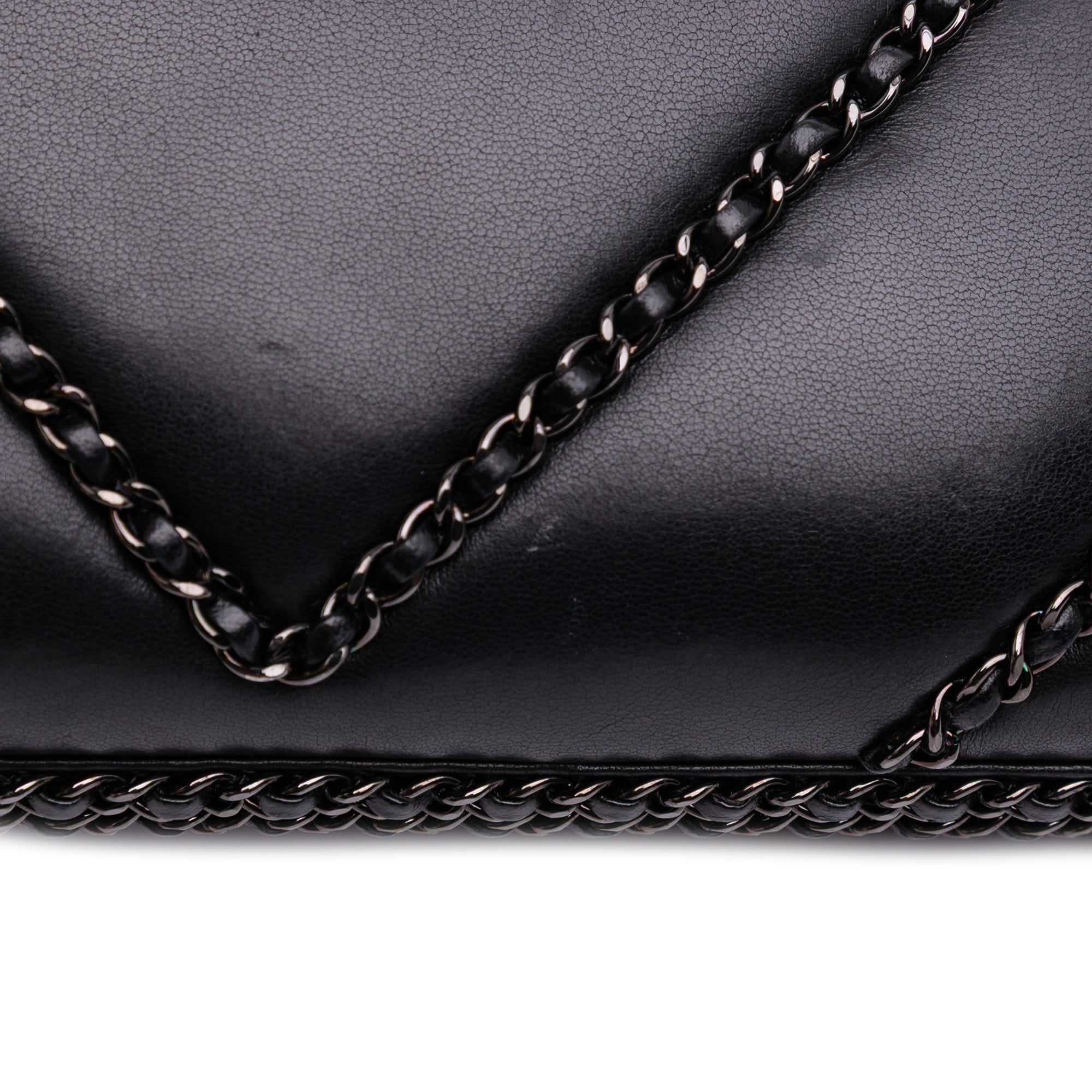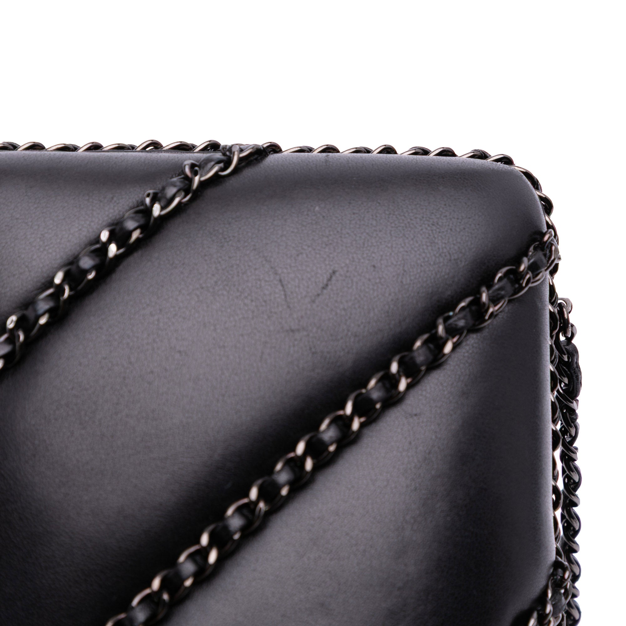 Black Chanel Chevron Lambskin Chain Around Clutch on Chain Shoulder Bag