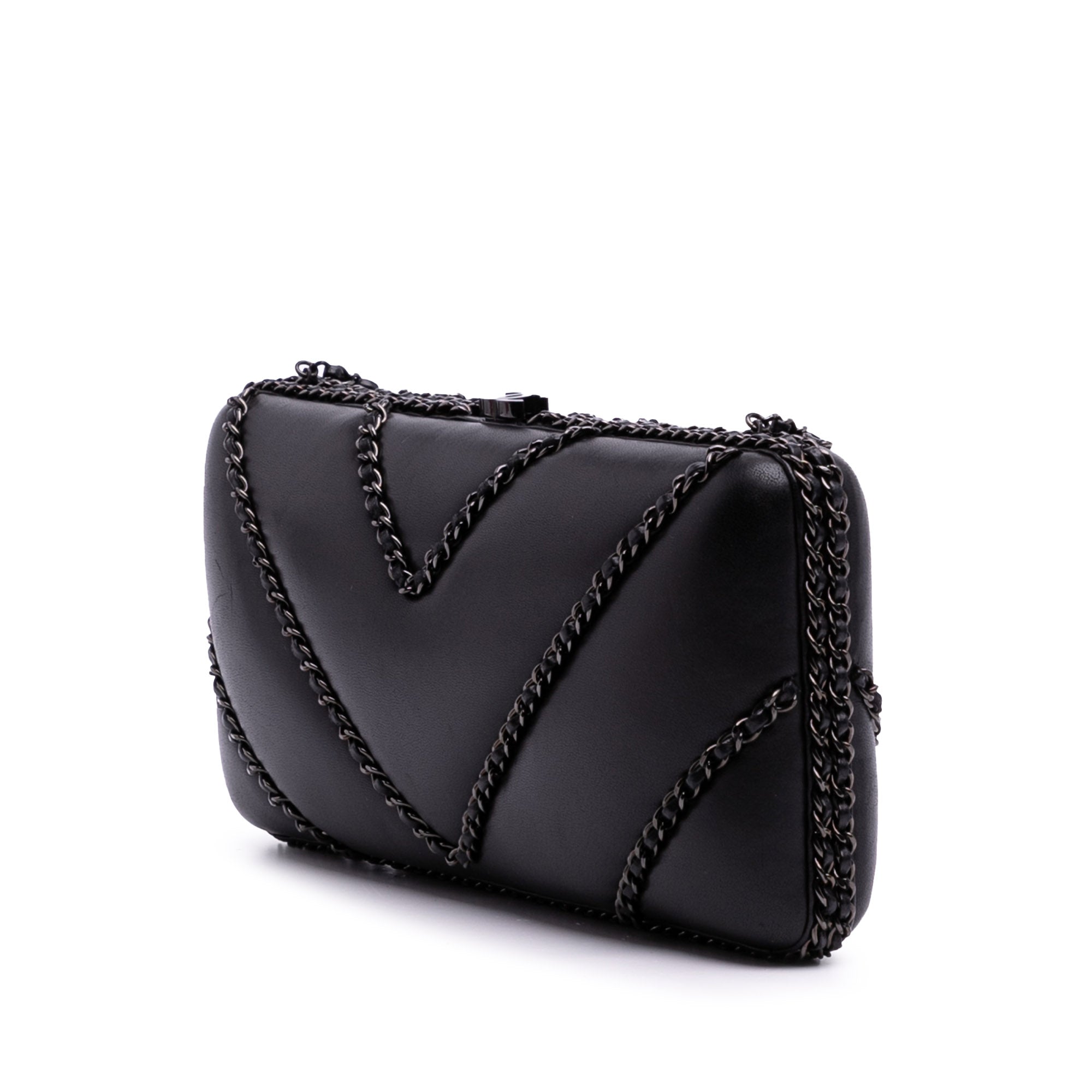 Black Chanel Chevron Lambskin Chain Around Clutch on Chain Shoulder Bag - Designer Revival Black Chanel Chevron Lambskin Chain Around Clutch on Chain Shoulder Bag - Designer Revival