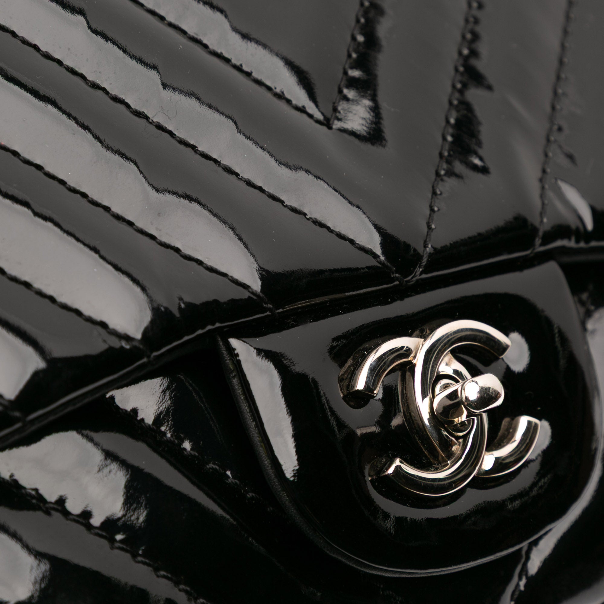 Black Chanel Maxi Classic Chevron Patent Single Flap Shoulder Bag