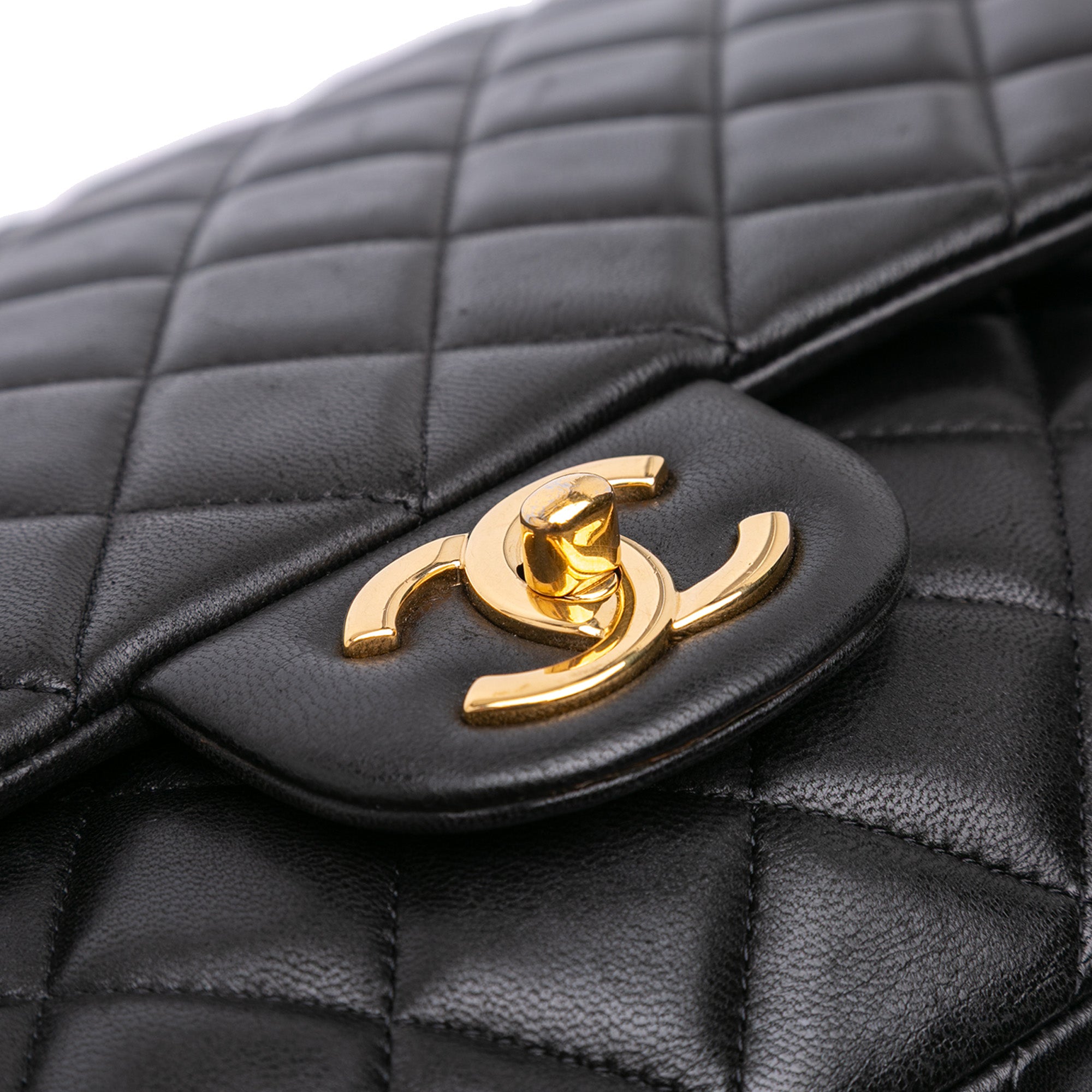 Black Chanel Maxi Classic Lambskin Double Flap Shoulder Bag - Designer Revival Black Chanel Maxi Classic Lambskin Double Flap Shoulder Bag - Designer Revival