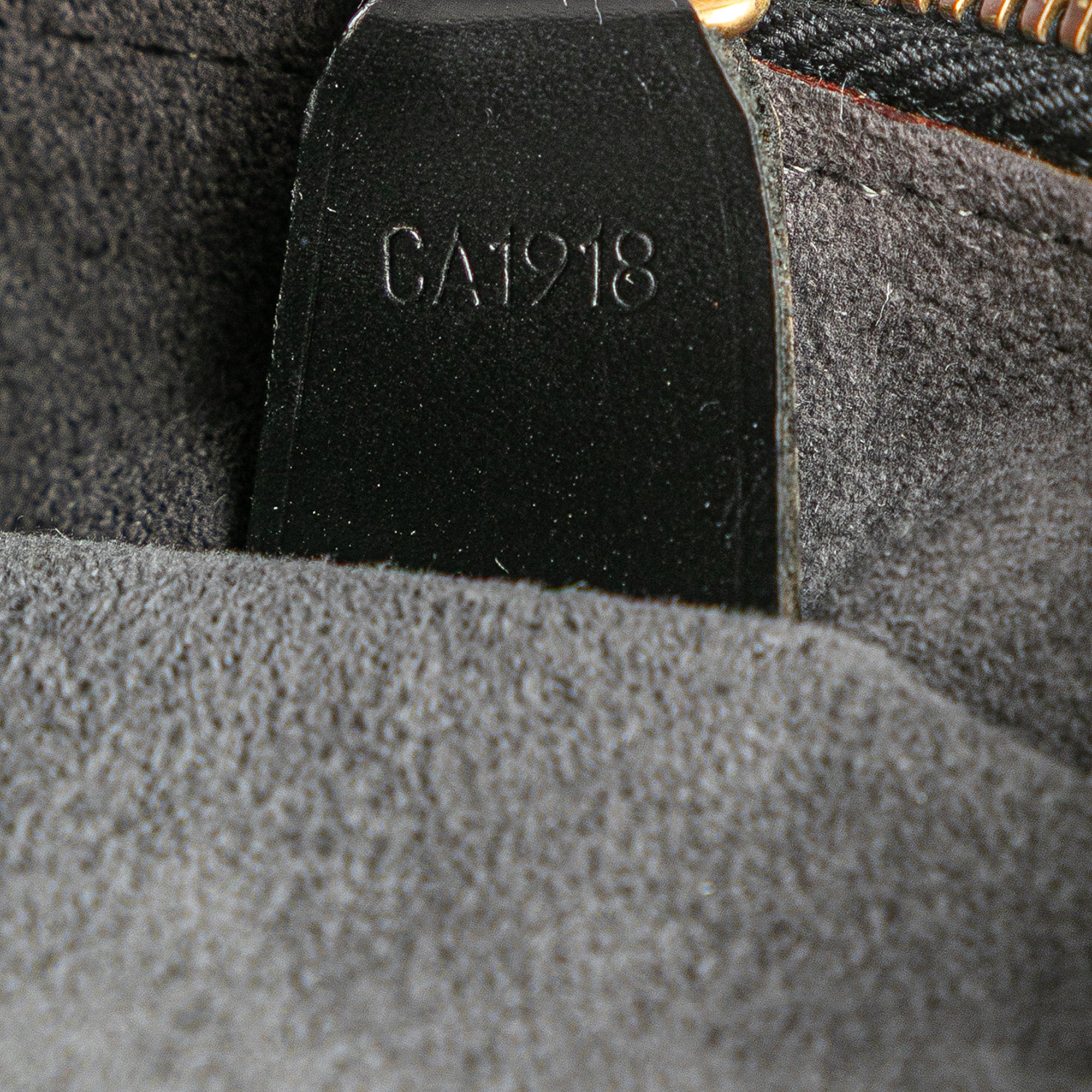 Product Details: Black Louis Vuitton Epi Voltaire Shoulder Bag. The Voltaire bag features an epi leather body, flat shoulder straps, a top zip closure, an exterior back slip pocket, and an interior slip pocket. 10.2" L x 13" W x 3.1" D. Serial number CA1918.