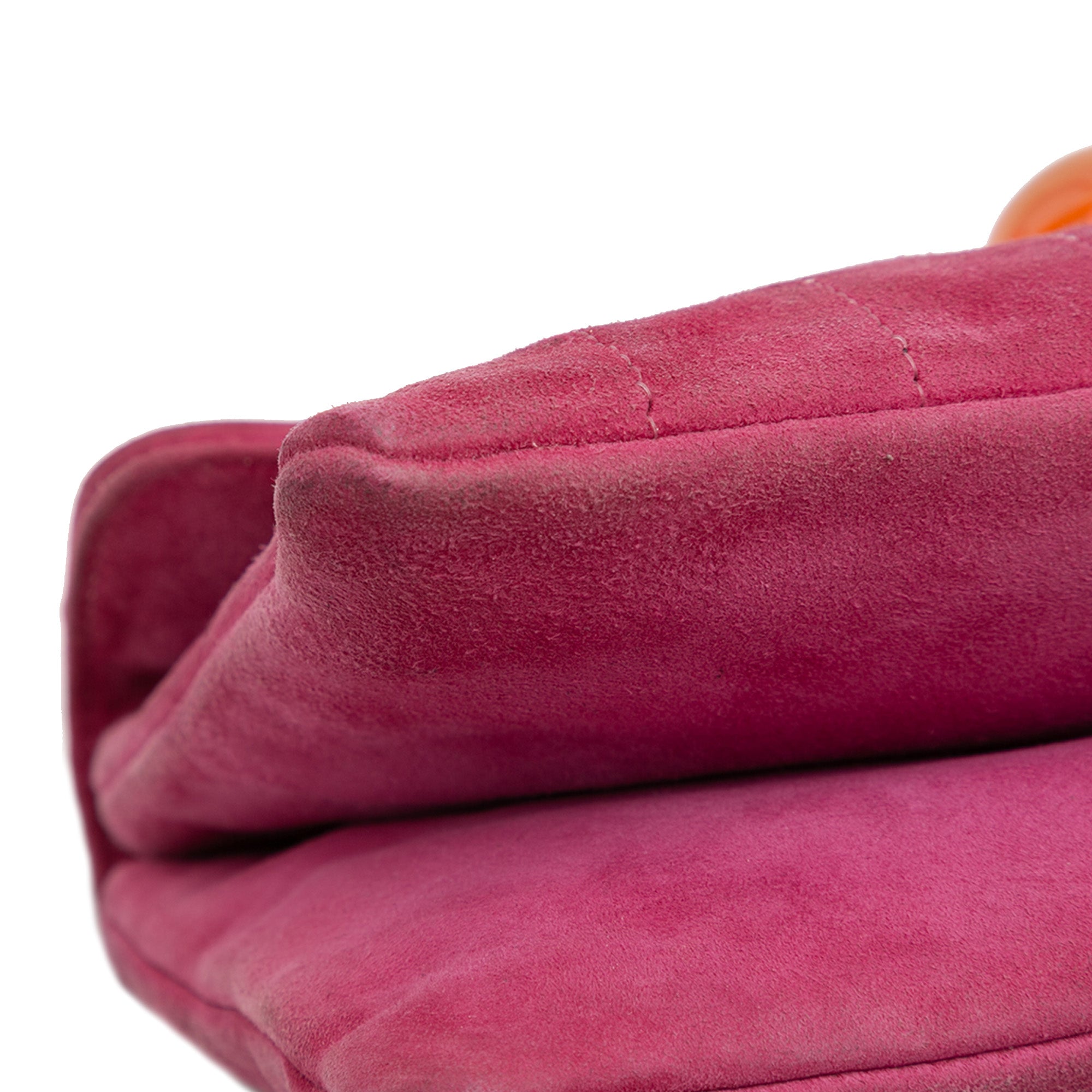 Pink Chanel CC Choco Bar Suede Beaded Chain Flap Shoulder Bag
