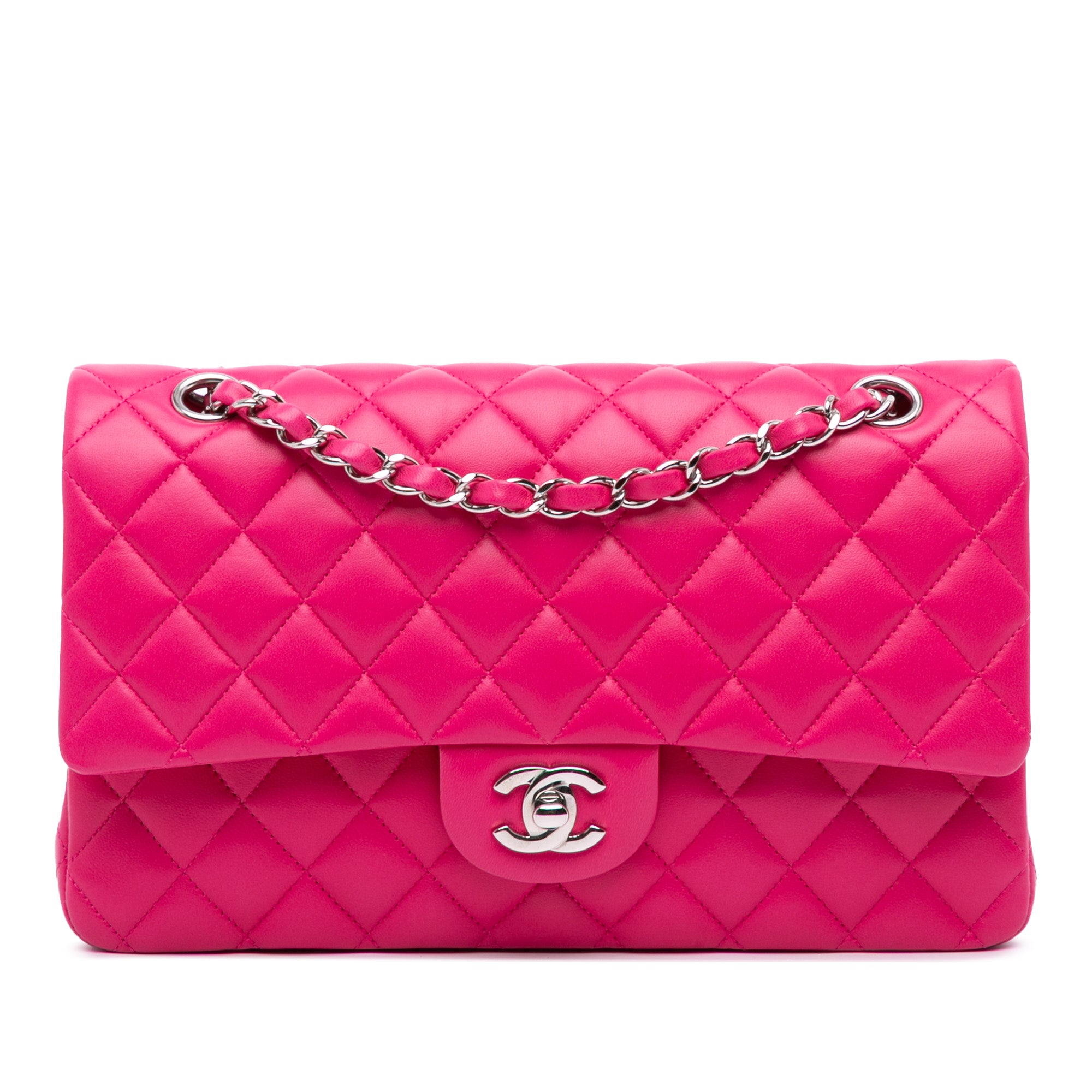 Pink Chanel Medium Classic Lambskin Double Flap Shoulder Bag - Designer Revival Pink Chanel Medium Classic Lambskin Double Flap Shoulder Bag - Designer Revival