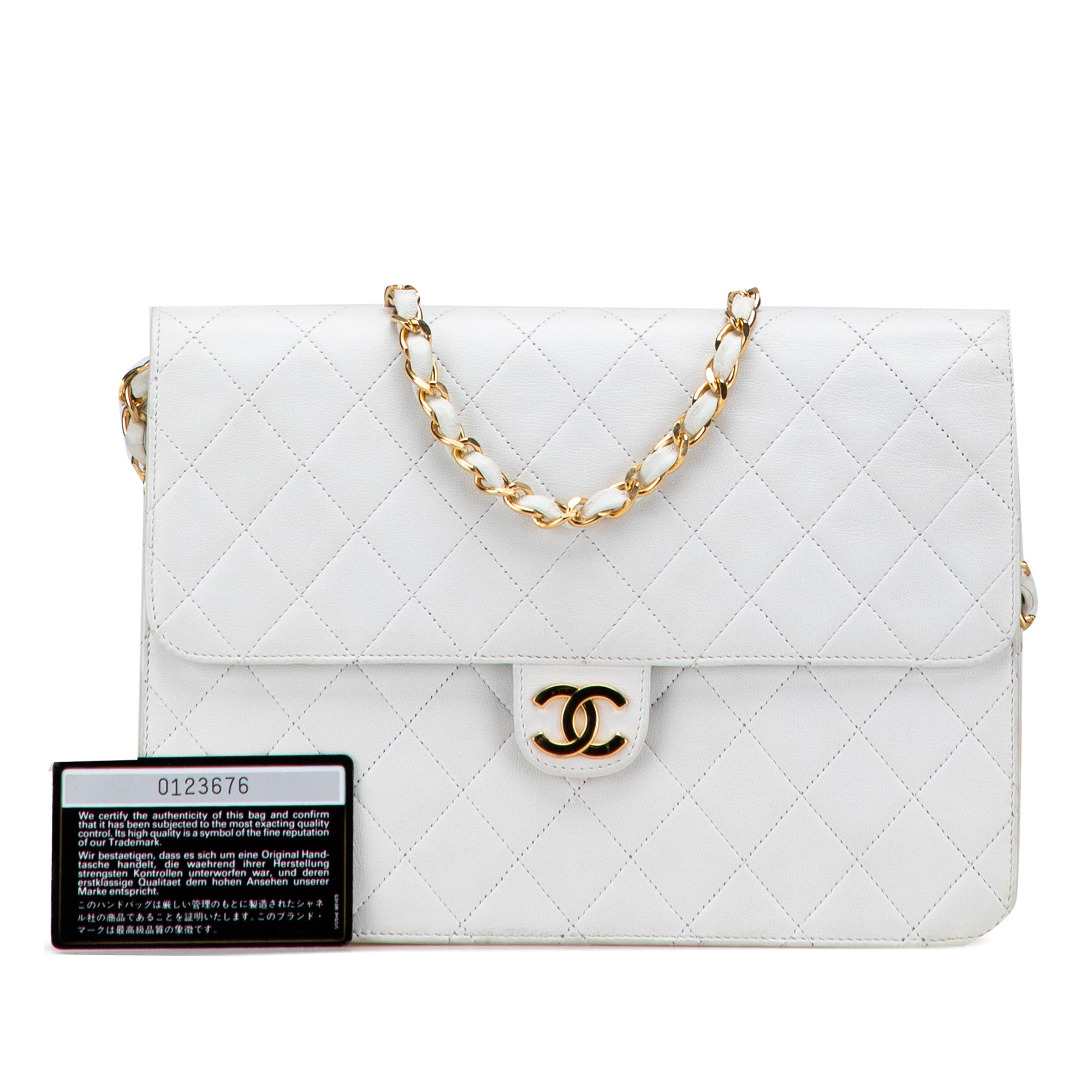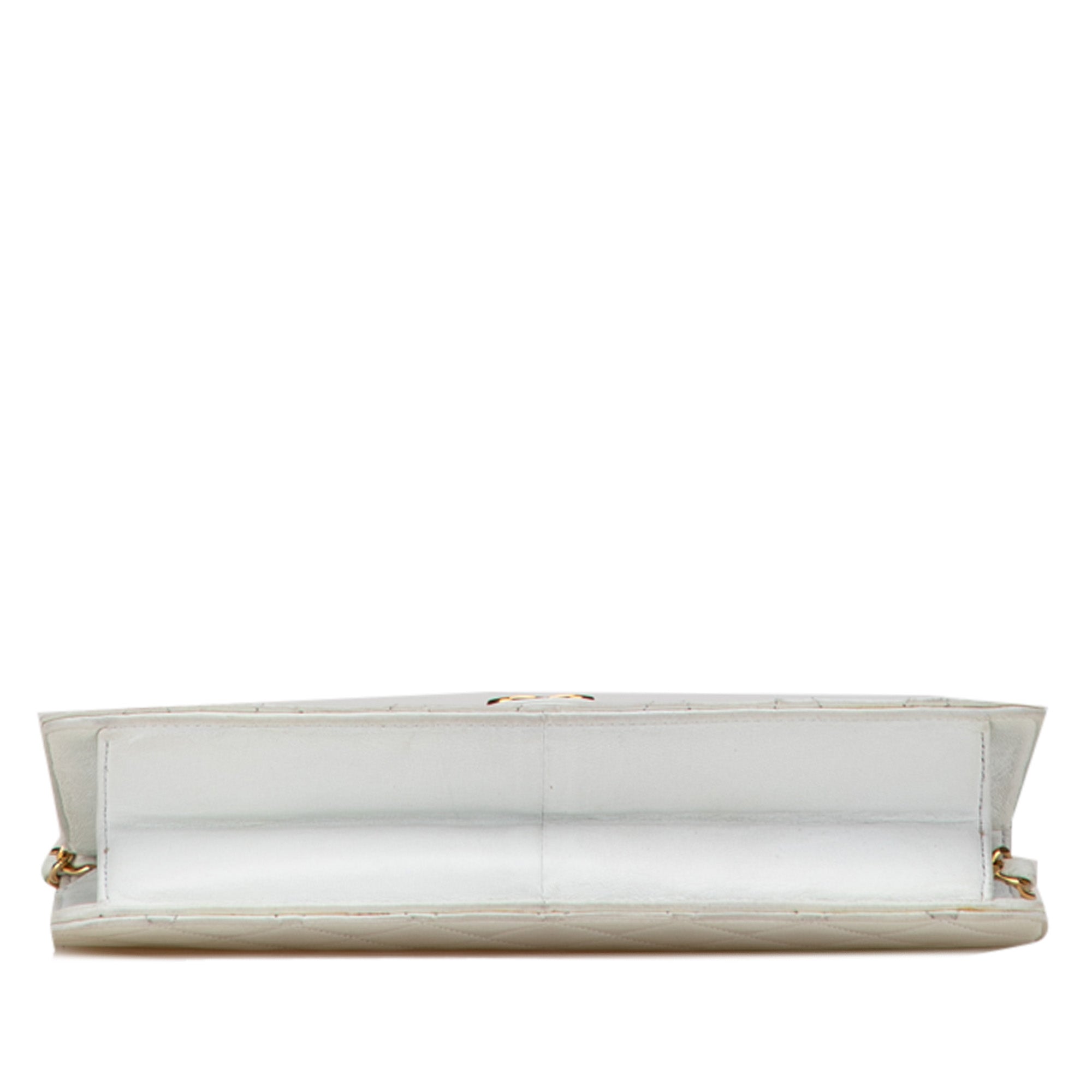White Chanel CC Quilted Lambskin Single Flap Shoulder Bag