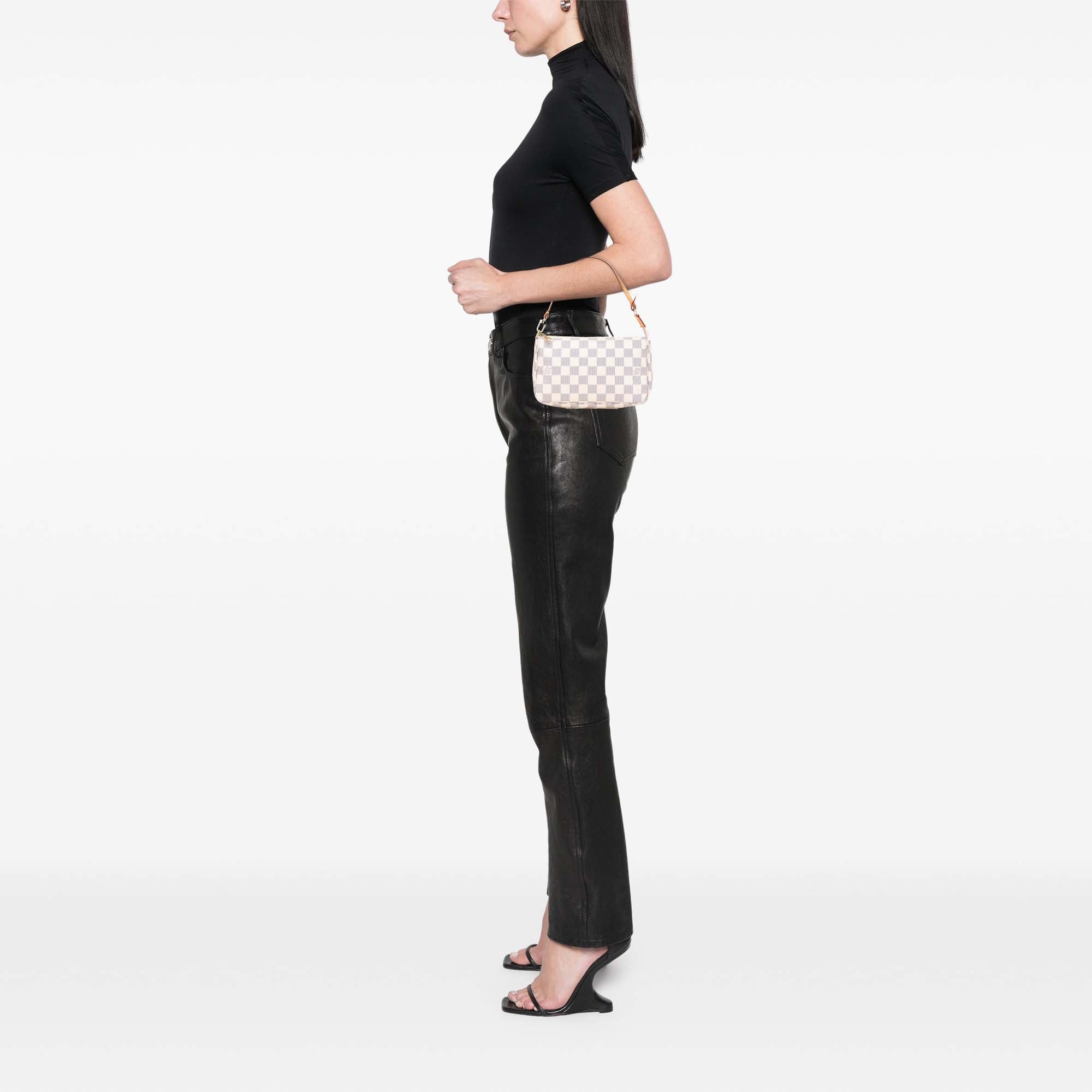 Please note this is a pre-owned item that may display signs of wear consistent with the condition listed above and shown in photos. Designer Revival guarantees this is an authentic White Louis Vuitton Damier Azur Pochette Accessoires Shoulder Bag or 100% of your money back. Learn more about our authentication process.