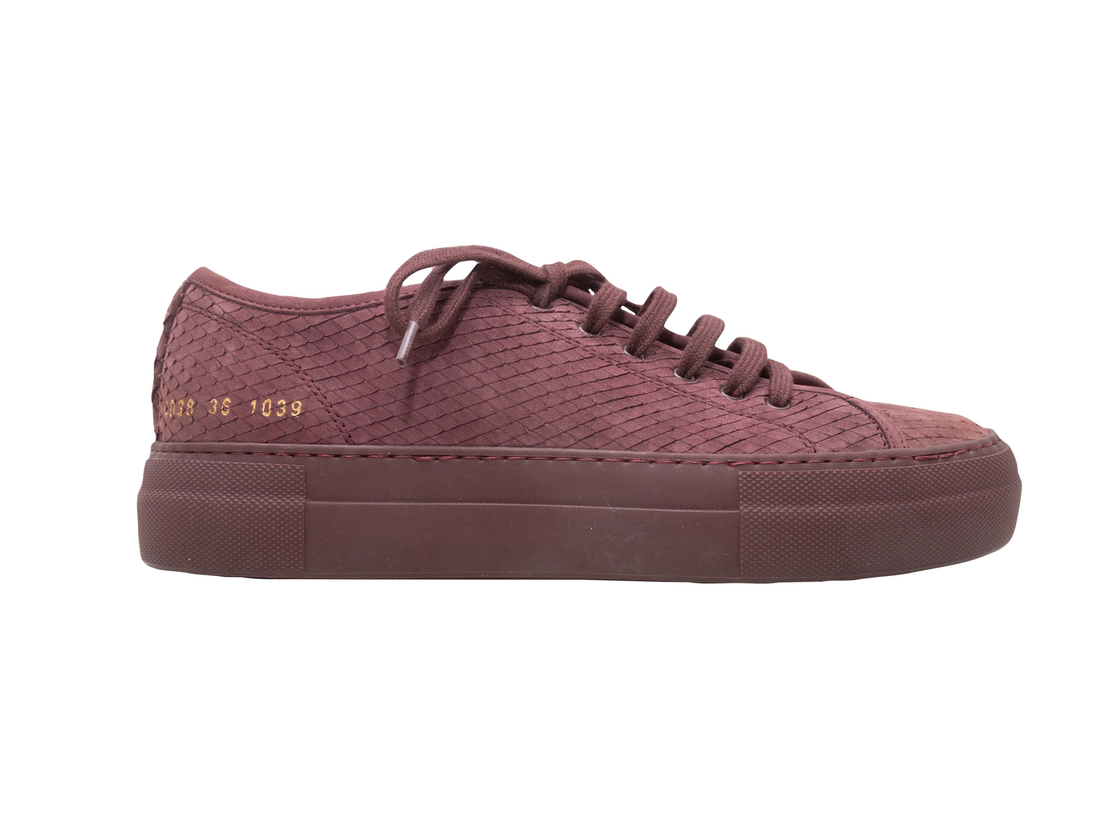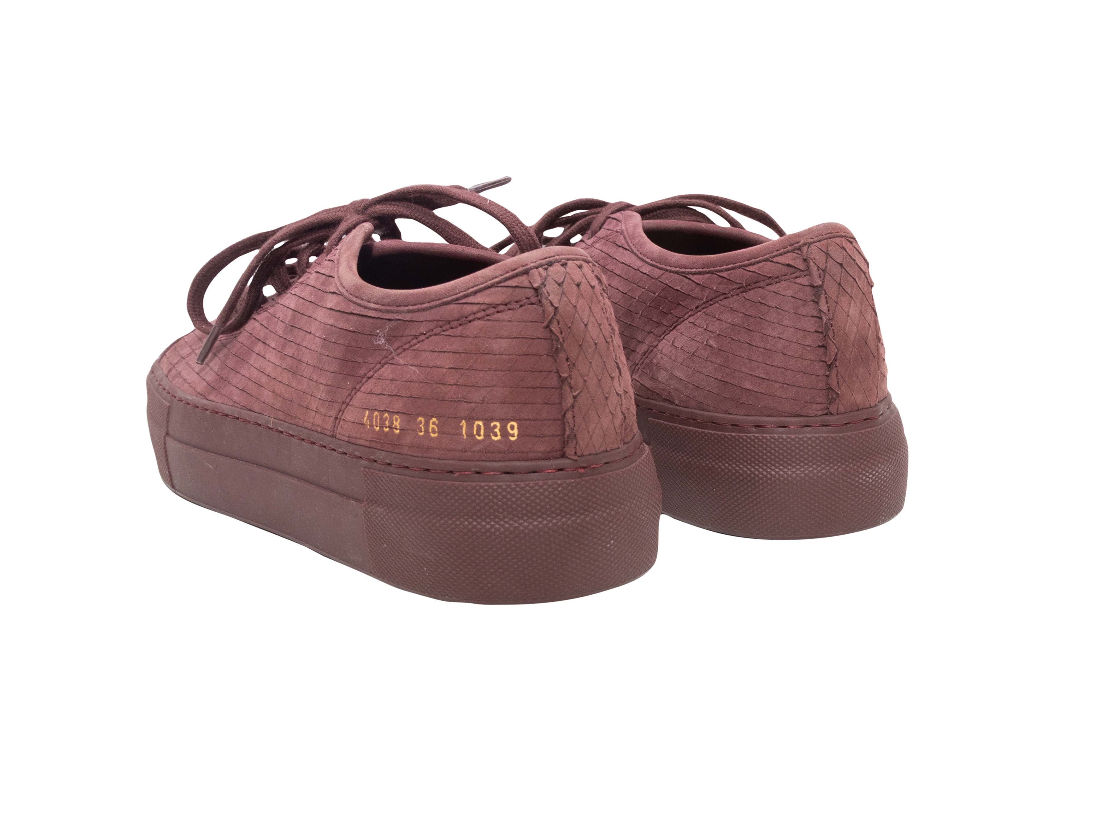 Burgundy Woman by Common Projects Textured Suede Sneakers Size 36