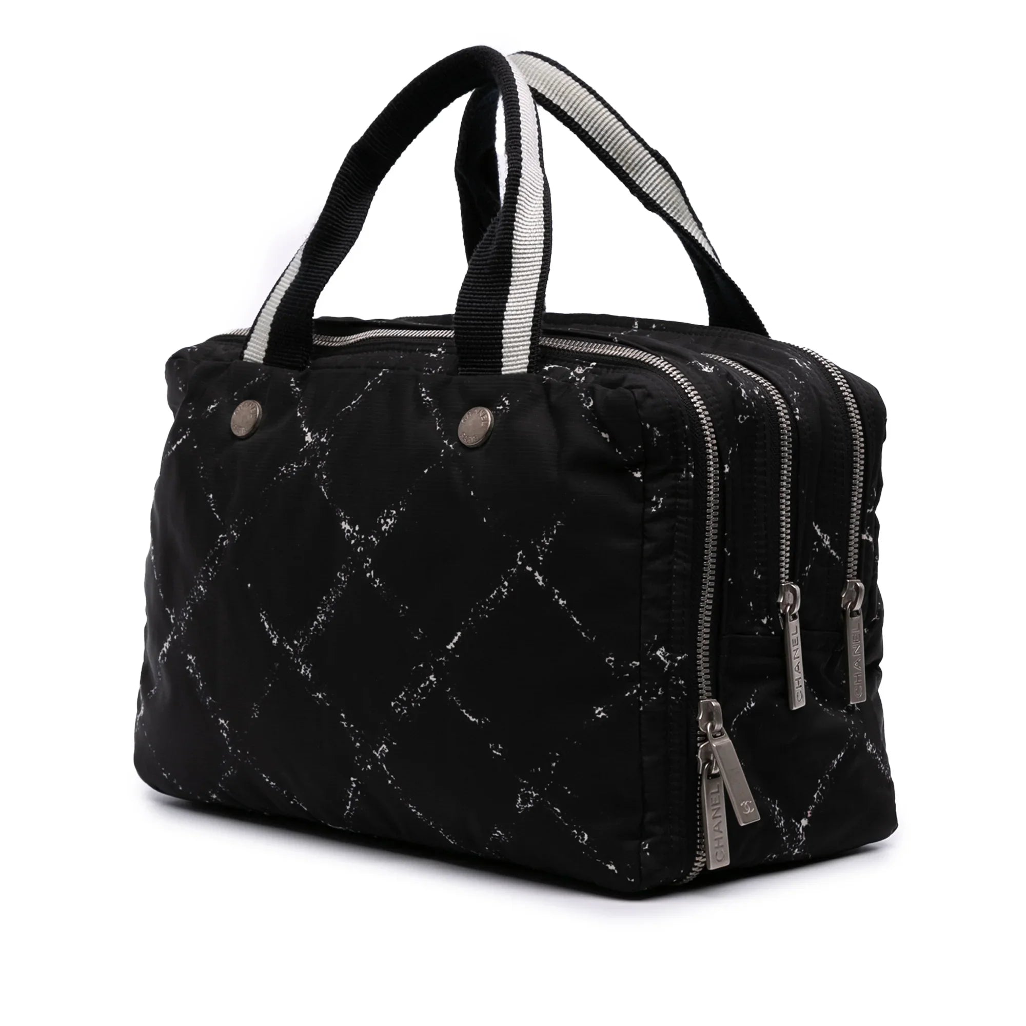 Black Chanel Old Travel Line Nylon Handbag - Designer Revival Black Chanel Old Travel Line Nylon Handbag - Designer Revival