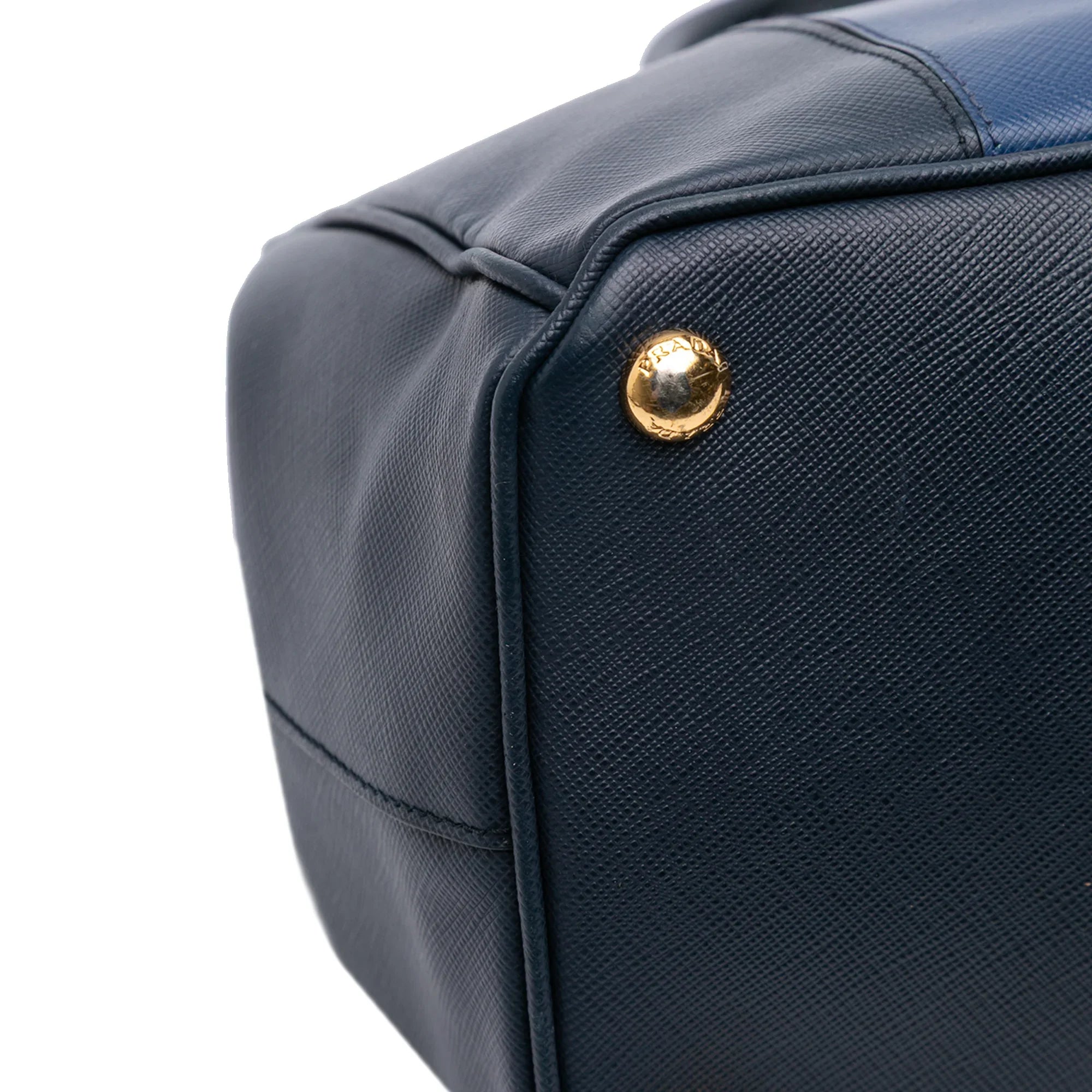 Blue Prada Medium Bicolor Saffiano Lux Galleria Double Zip Satchel