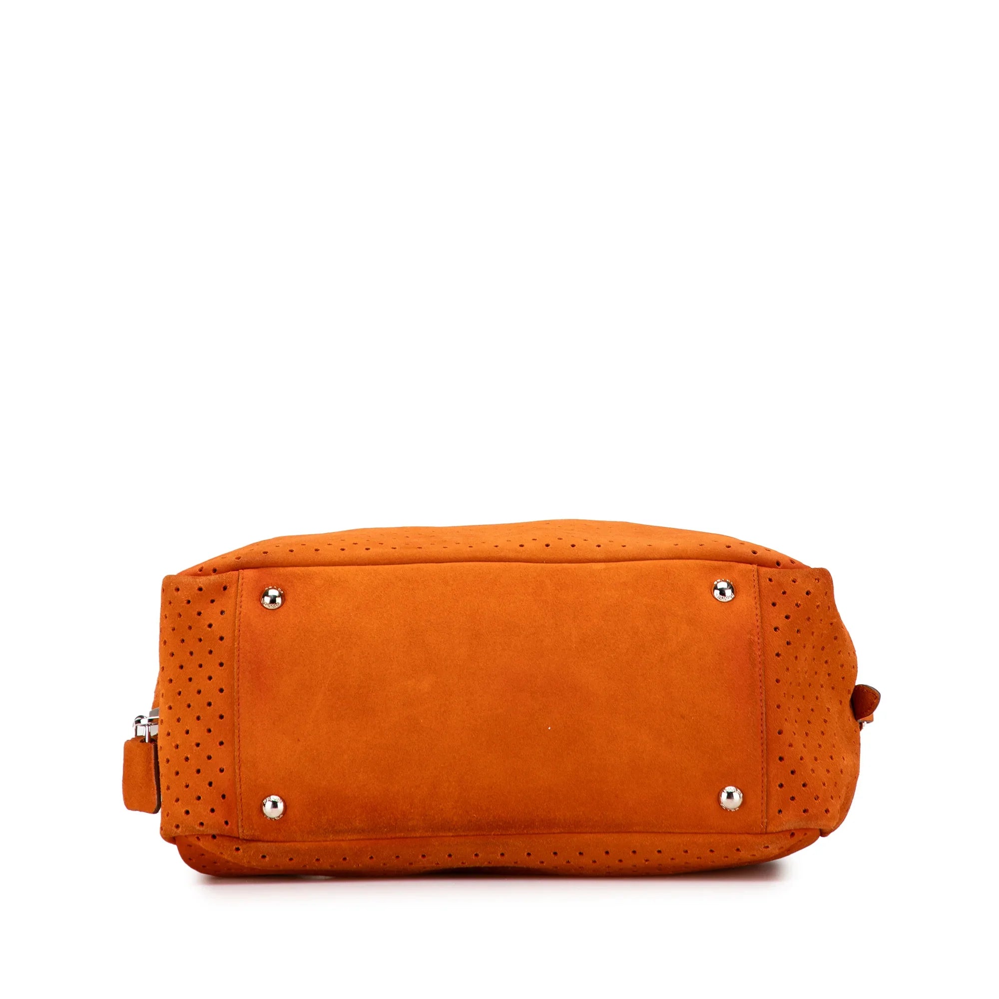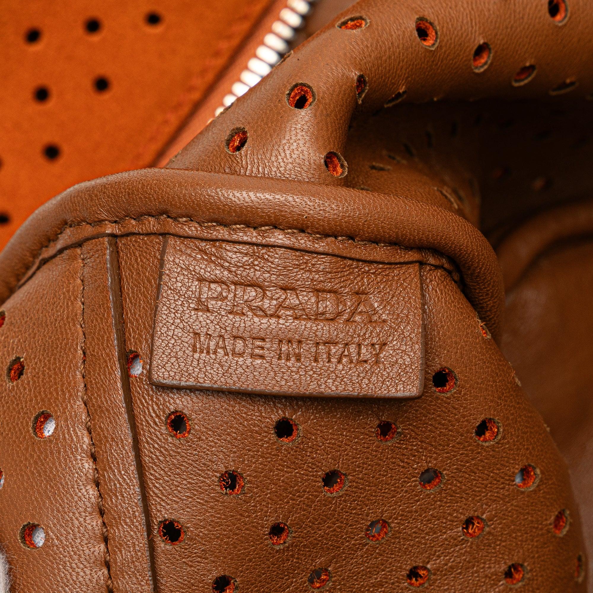 Please note this is a pre-owned item that may display signs of wear consistent with the condition listed above and shown in photos. Designer Revival guarantees this is an authentic Orange Prada Scamosciato Perforated Bauletto Shoulder Bag or 100% of your money back. Learn more about our authentication process.