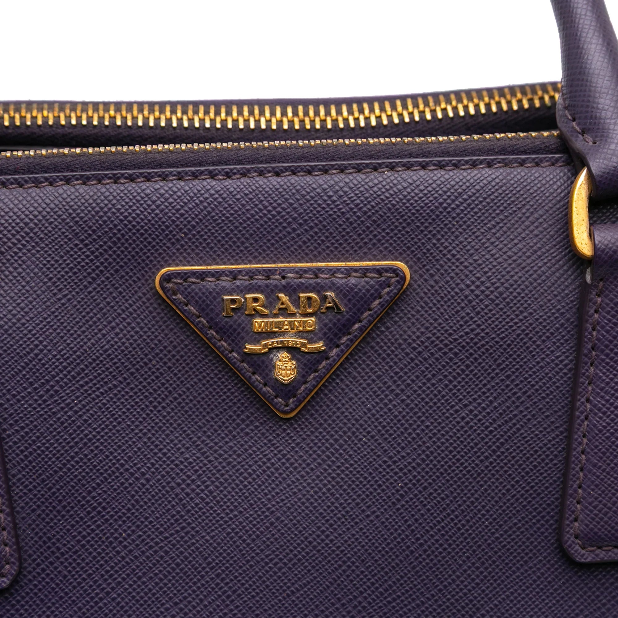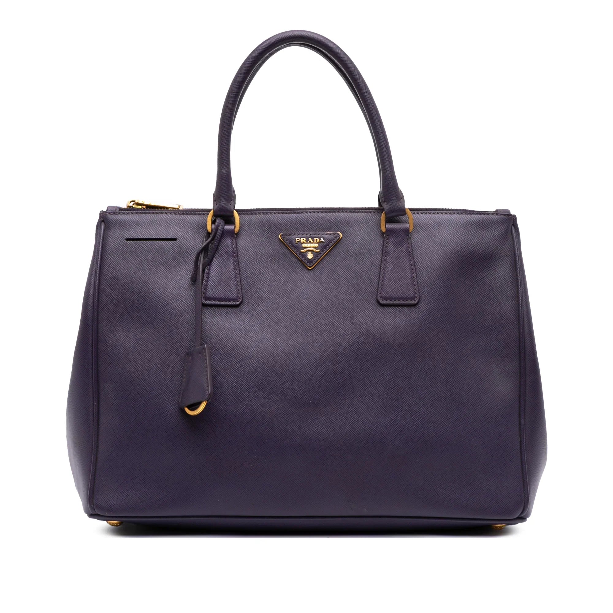 Purple Prada Medium Saffiano Lux Galleria Double Zip Satchel - Designer Revival Purple Prada Medium Saffiano Lux Galleria Double Zip Satchel - Designer Revival