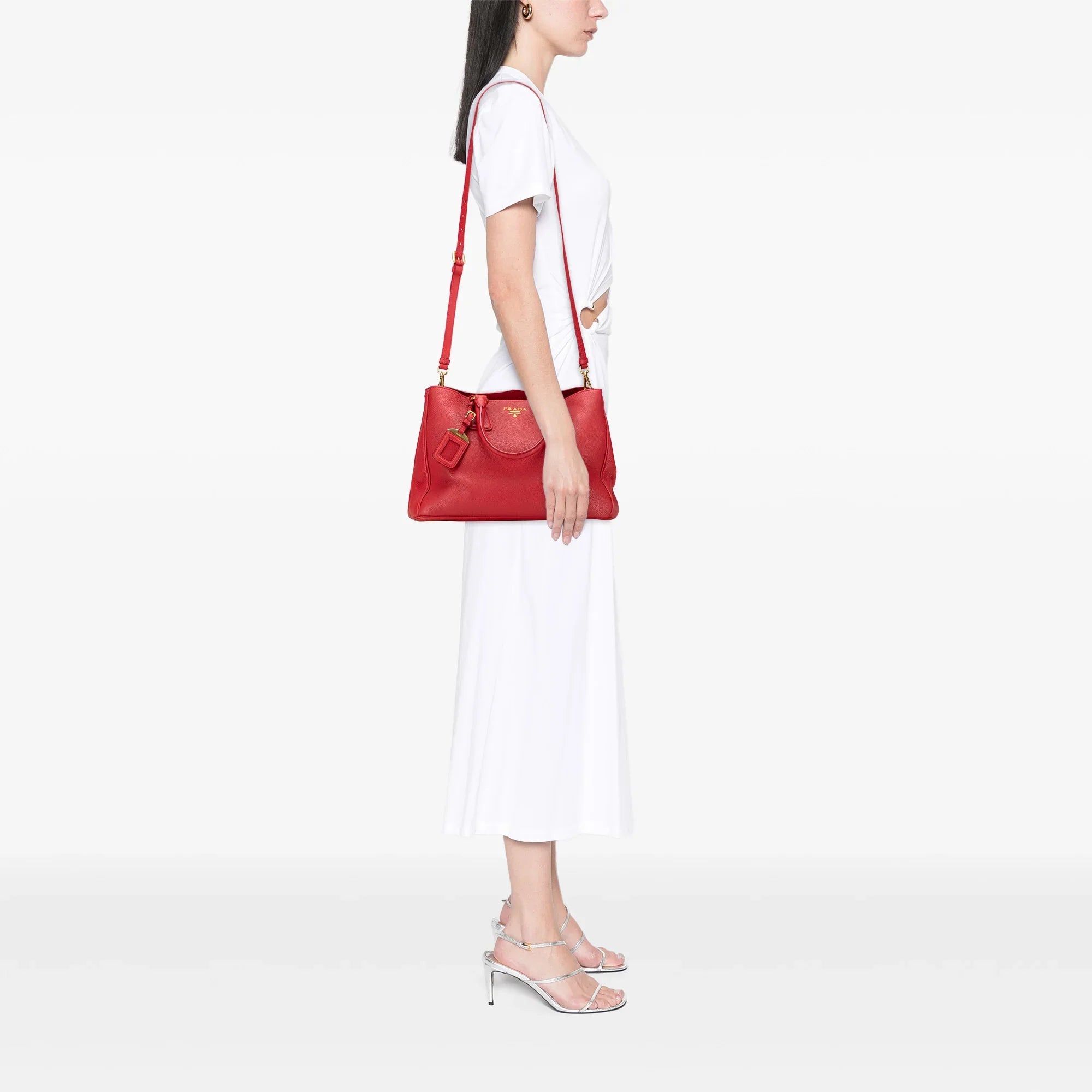 Red Prada Vitello Daino Open Convertible Tote Satchel