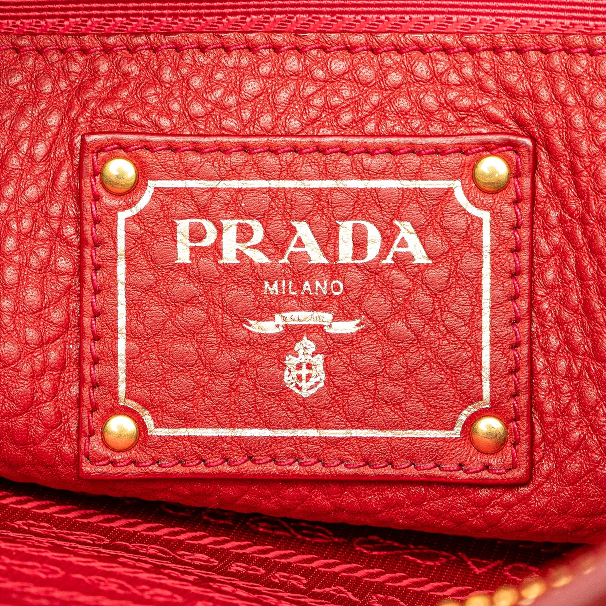 Please note this is a pre-owned item that may display signs of wear consistent with the condition listed above and shown in photos. Designer Revival guarantees this is an authentic Red Prada Vitello Daino Open Convertible Tote Satchel or 100% of your money back. Learn more about our authentication process.