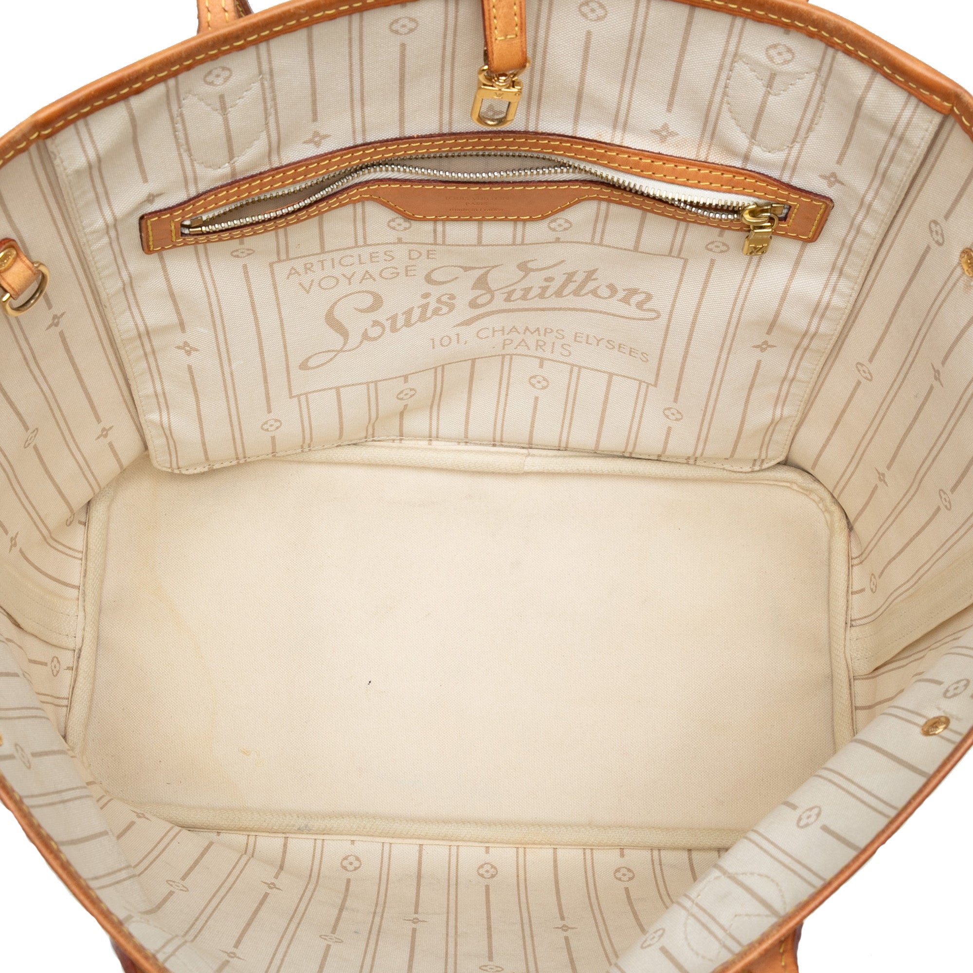 Please note this is a pre-owned item that may display signs of wear consistent with the condition listed above and shown in photos. Designer Revival guarantees this is an authentic White Louis Vuitton Damier Azur Neverfull MM Tote Bag or 100% of your money back. Learn more about our authentication process.