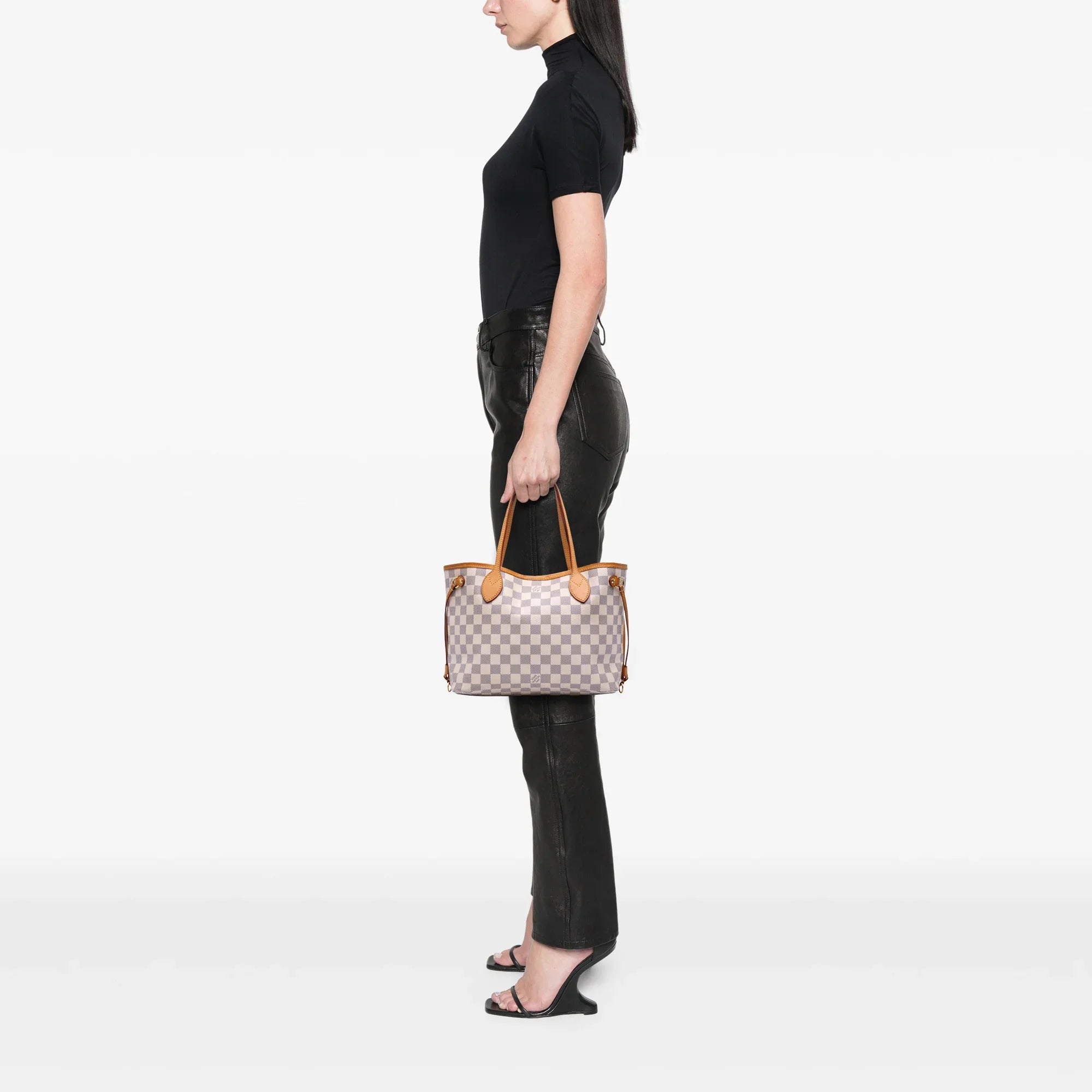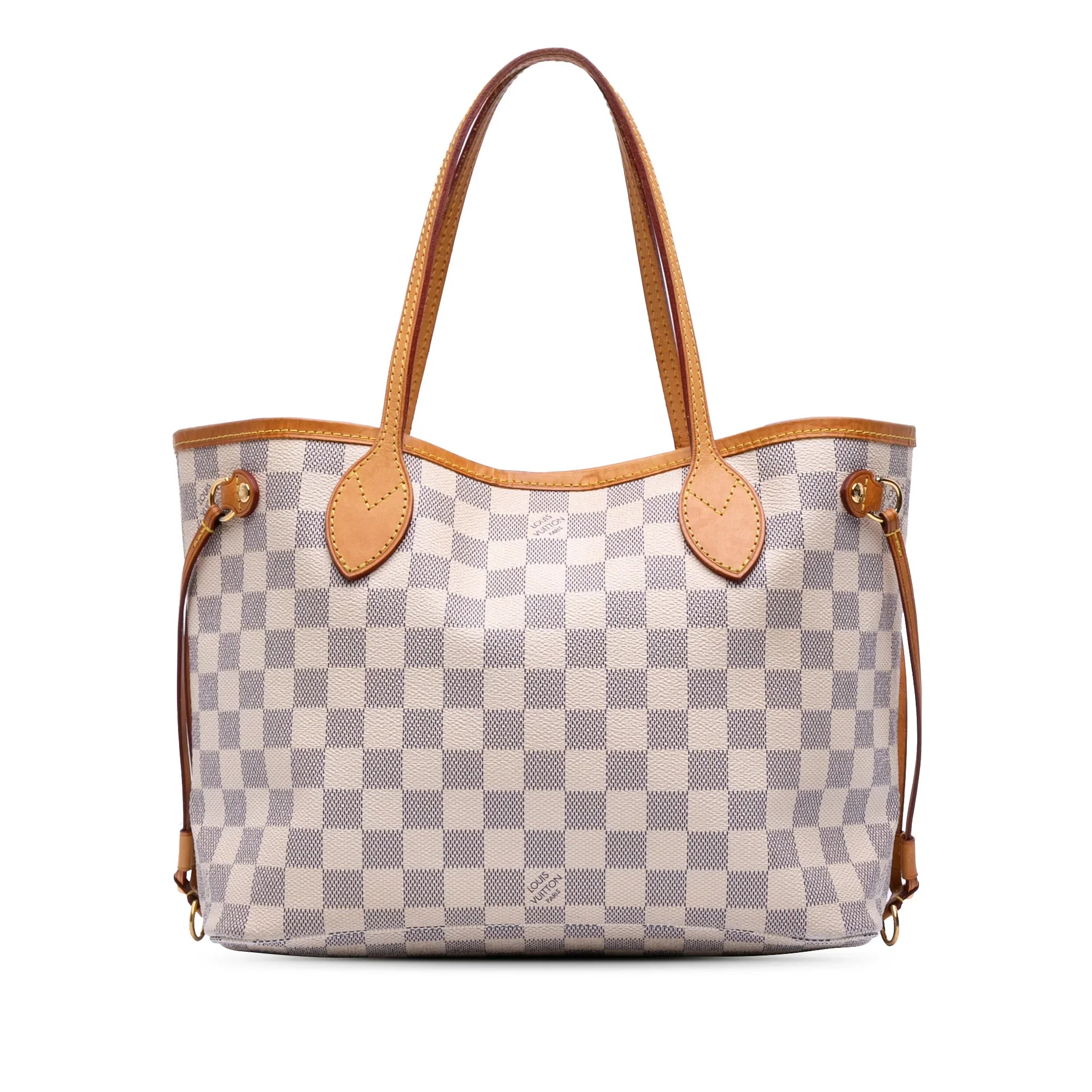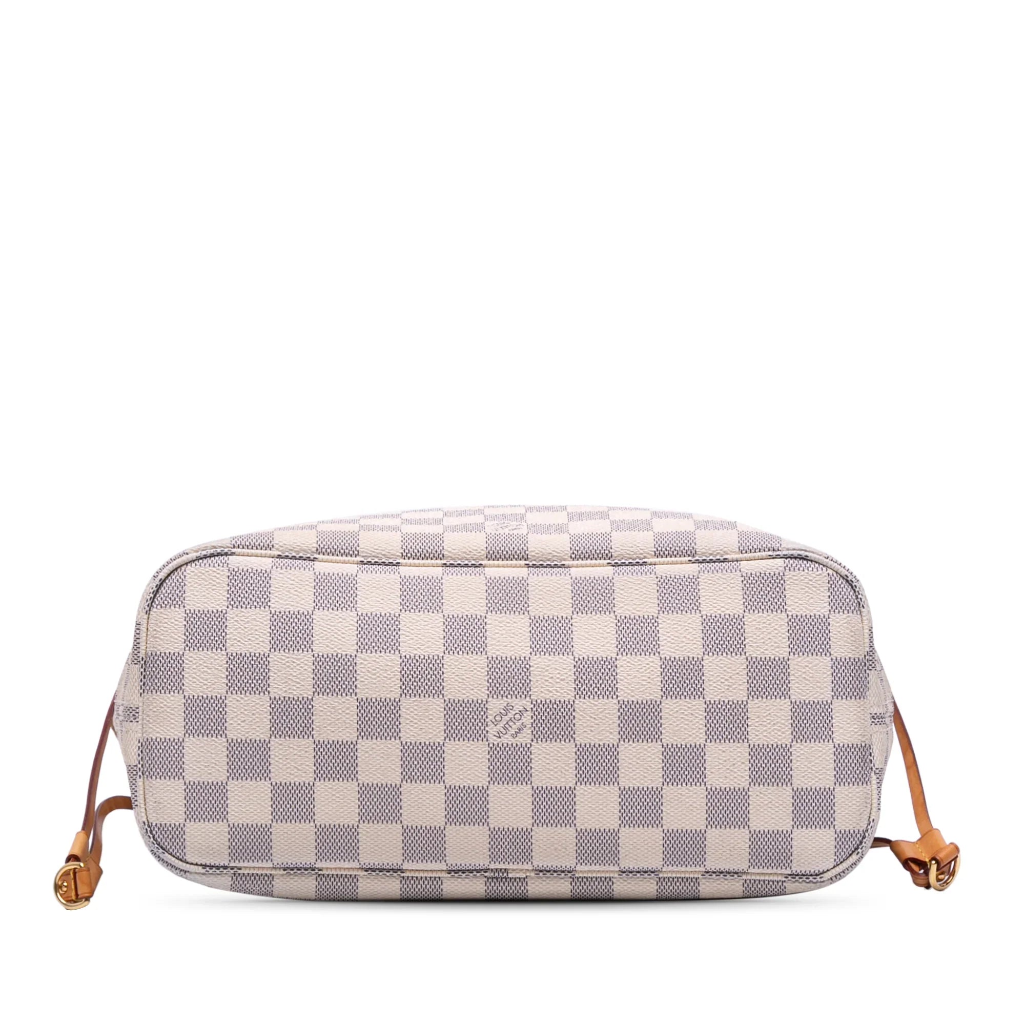 White Louis Vuitton Damier Azur Neverfull PM Tote Bag - Designer Revival White Louis Vuitton Damier Azur Neverfull PM Tote Bag - Designer Revival