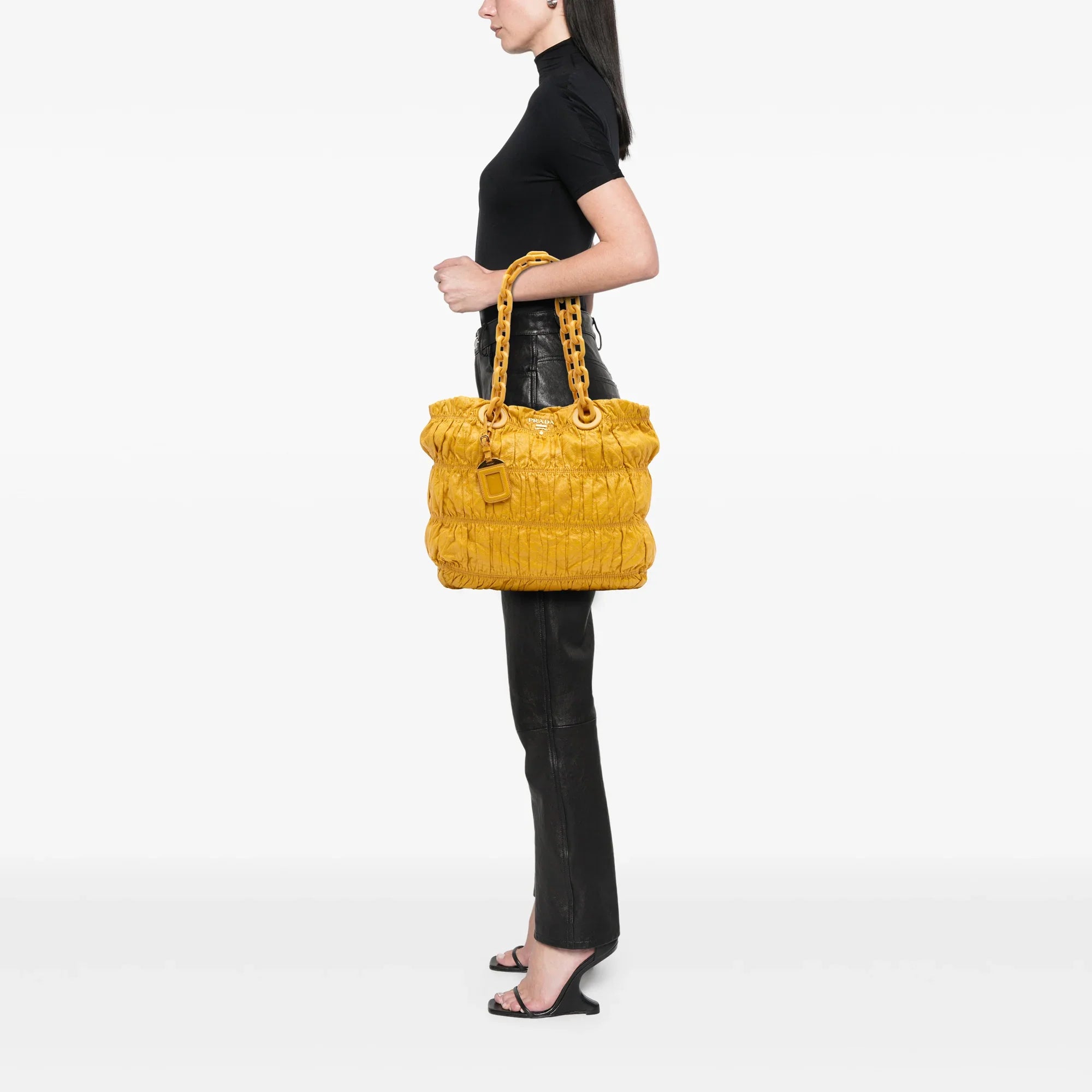 Yellow Prada Vernice Gaufre Chain Tote - Designer Revival Yellow Prada Vernice Gaufre Chain Tote - Designer Revival
