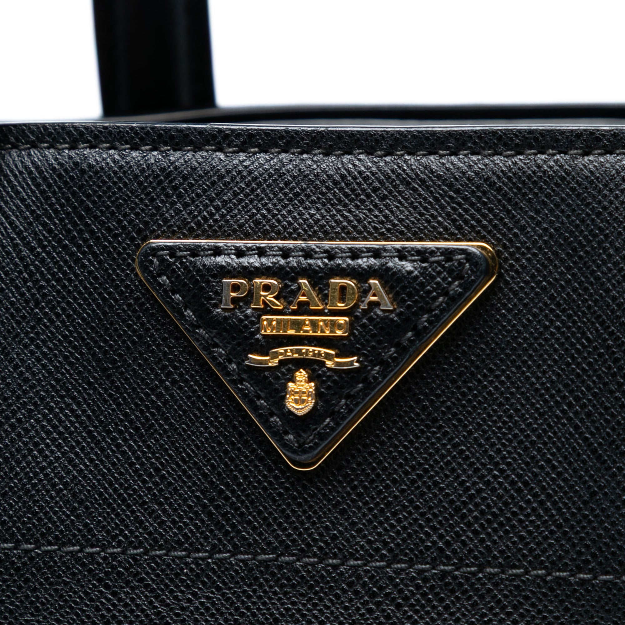 Black Prada Saffiano Soft Triple Pocket Tote Satchel