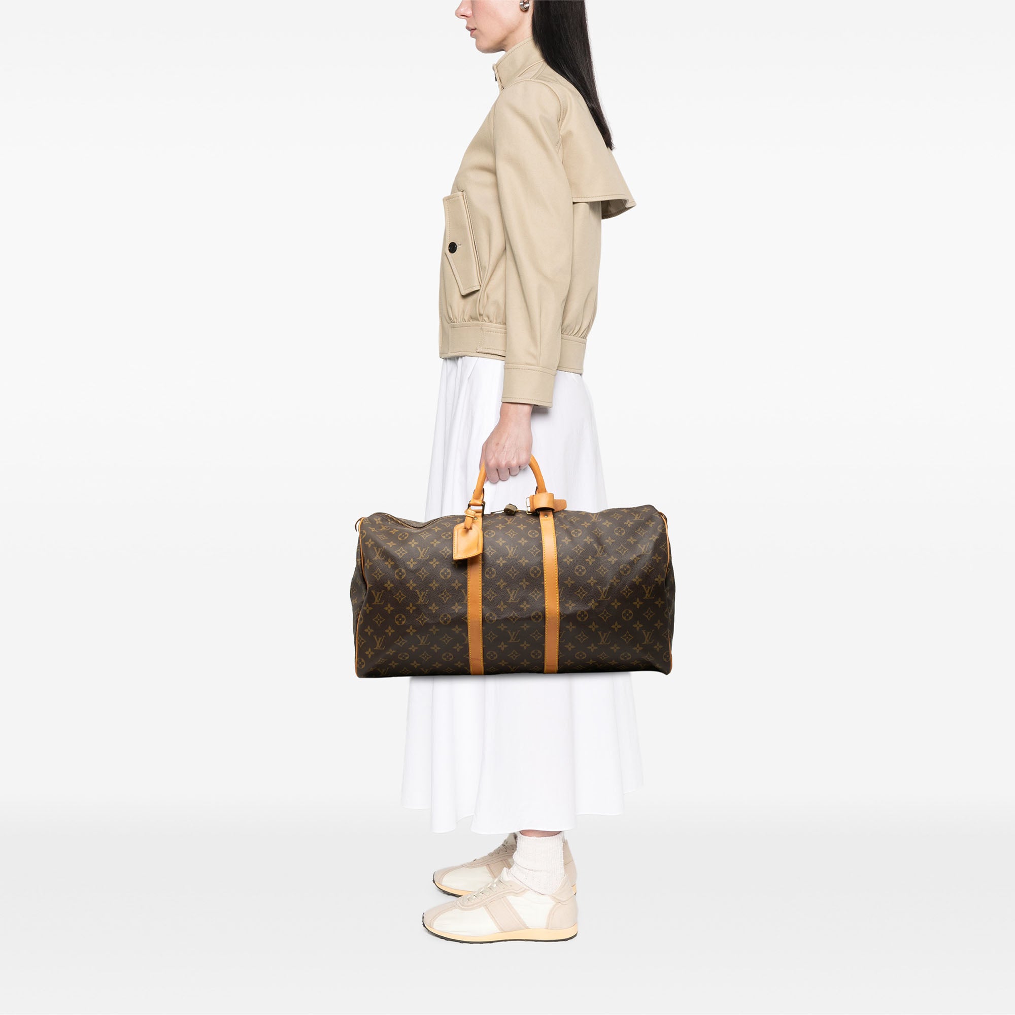 Please note this is a pre-owned item that may display signs of wear consistent with the condition listed above and shown in photos. Designer Revival guarantees this is an authentic Brown Louis Vuitton Monogram Keepall 55 Travel Bag or 100% of your money back. Learn more about our authentication process.