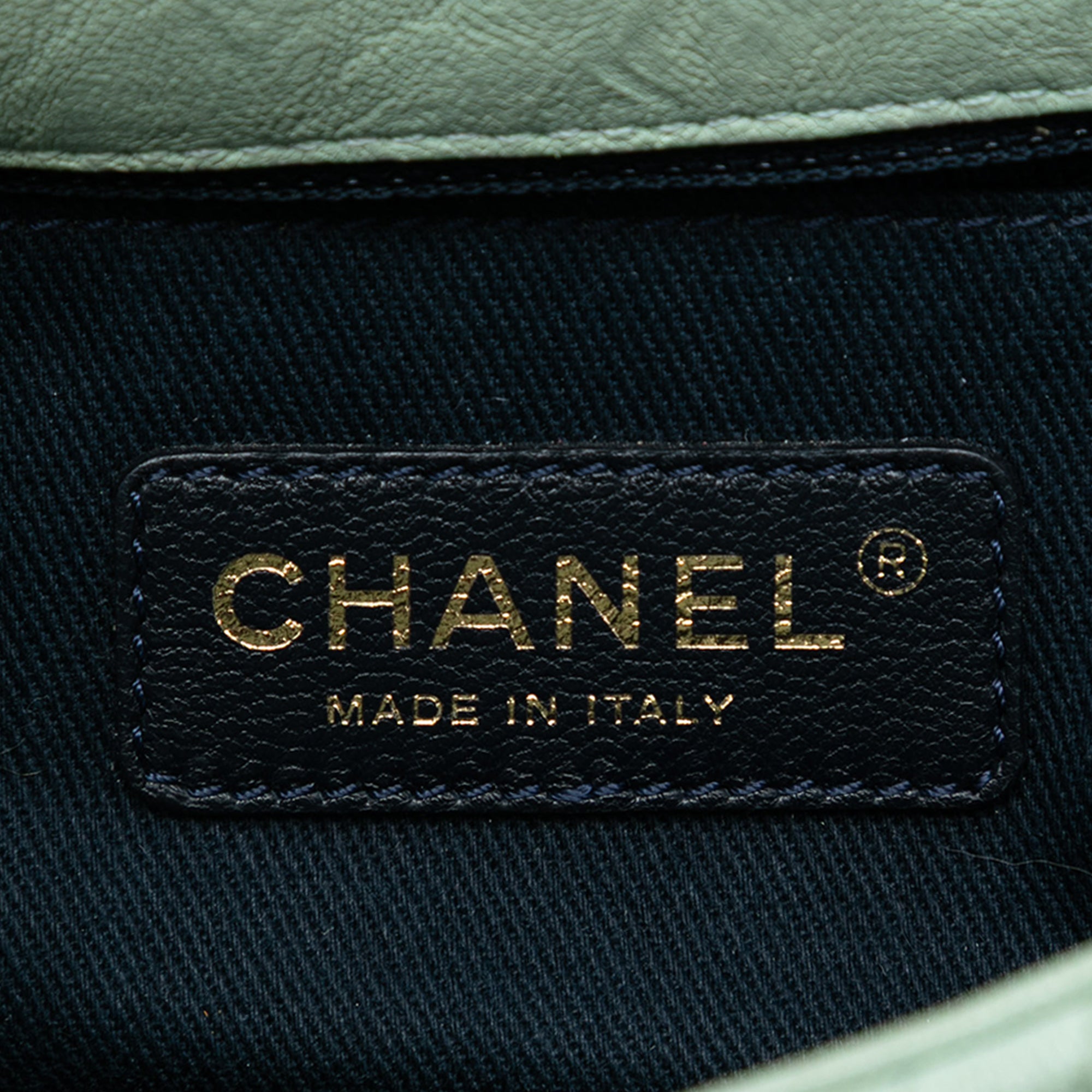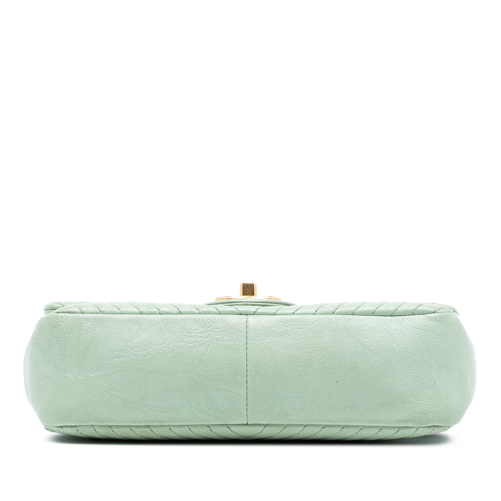 Green Chanel Small Chevron Wrinkled Calfskin Medallion Charm Surpique Flap Shoulder Bag