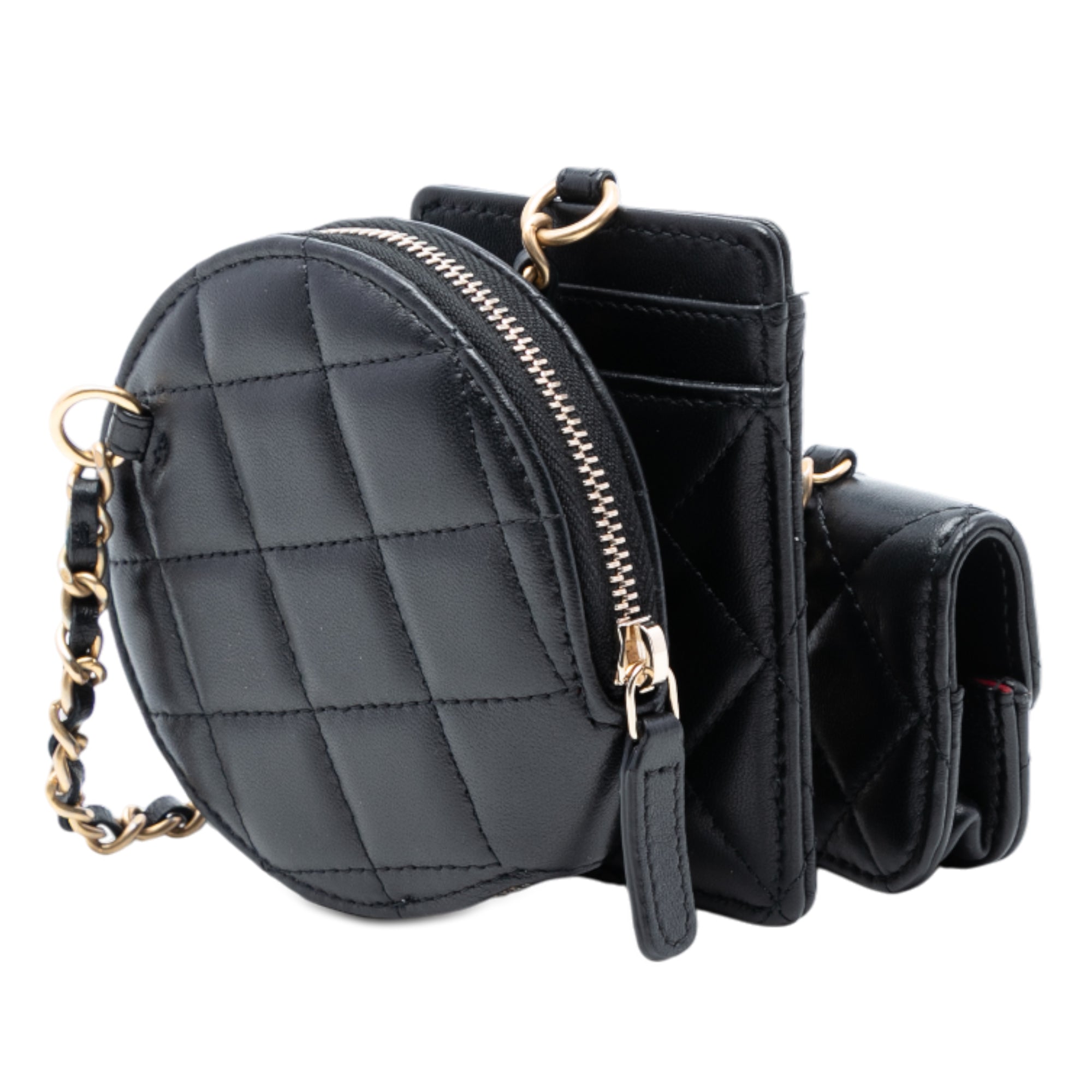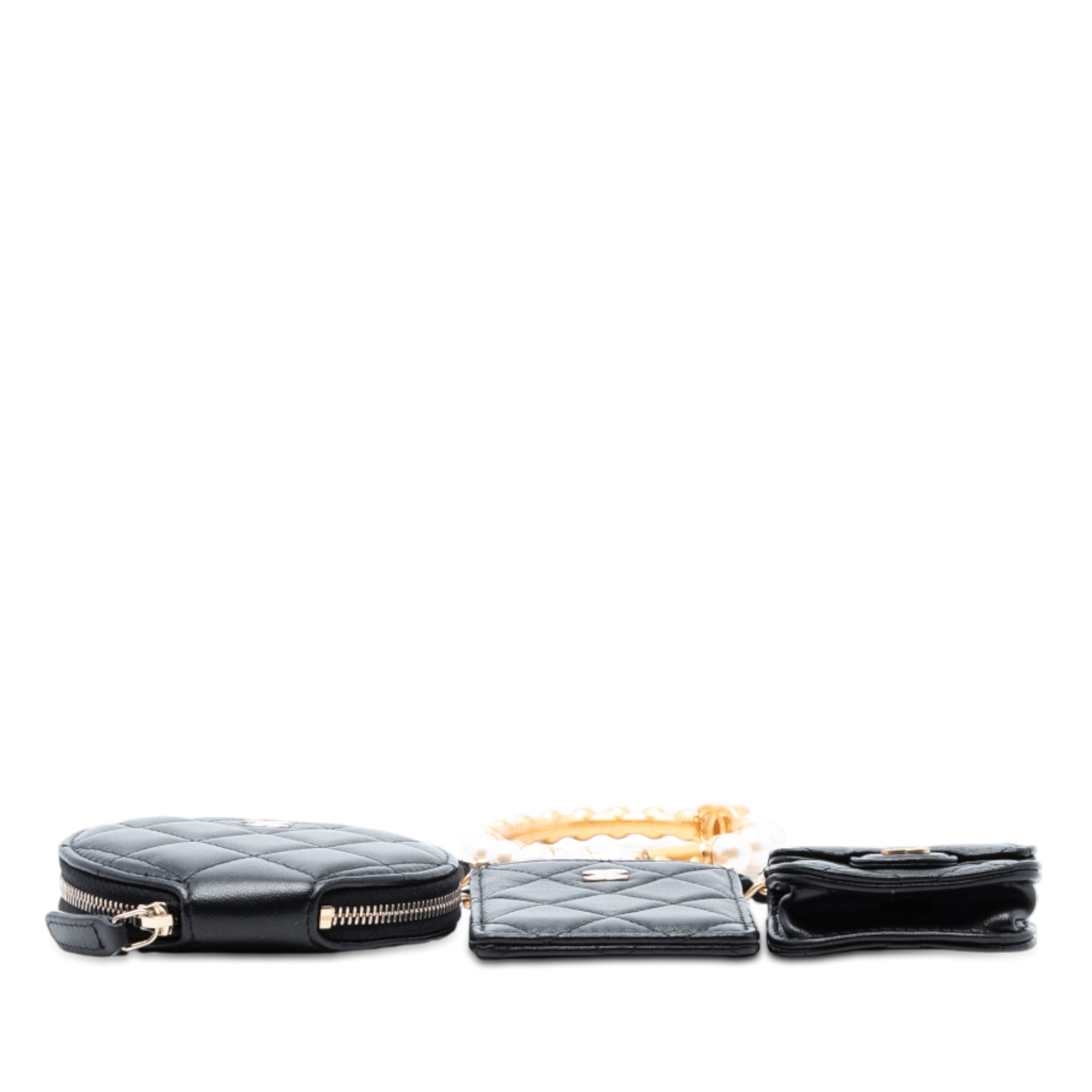 Black Chanel Quilted Lambskin Pearl Crown CC Wristlet Multi Pouches Clutch Bag