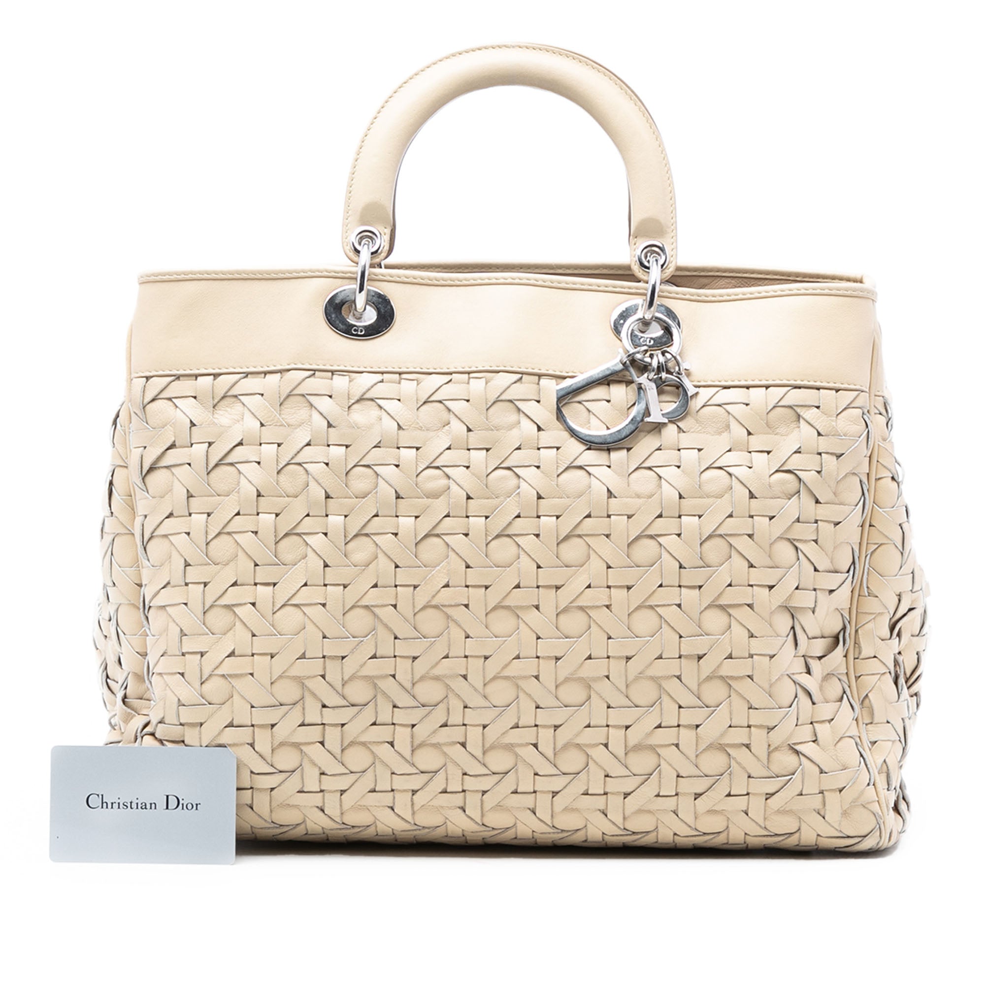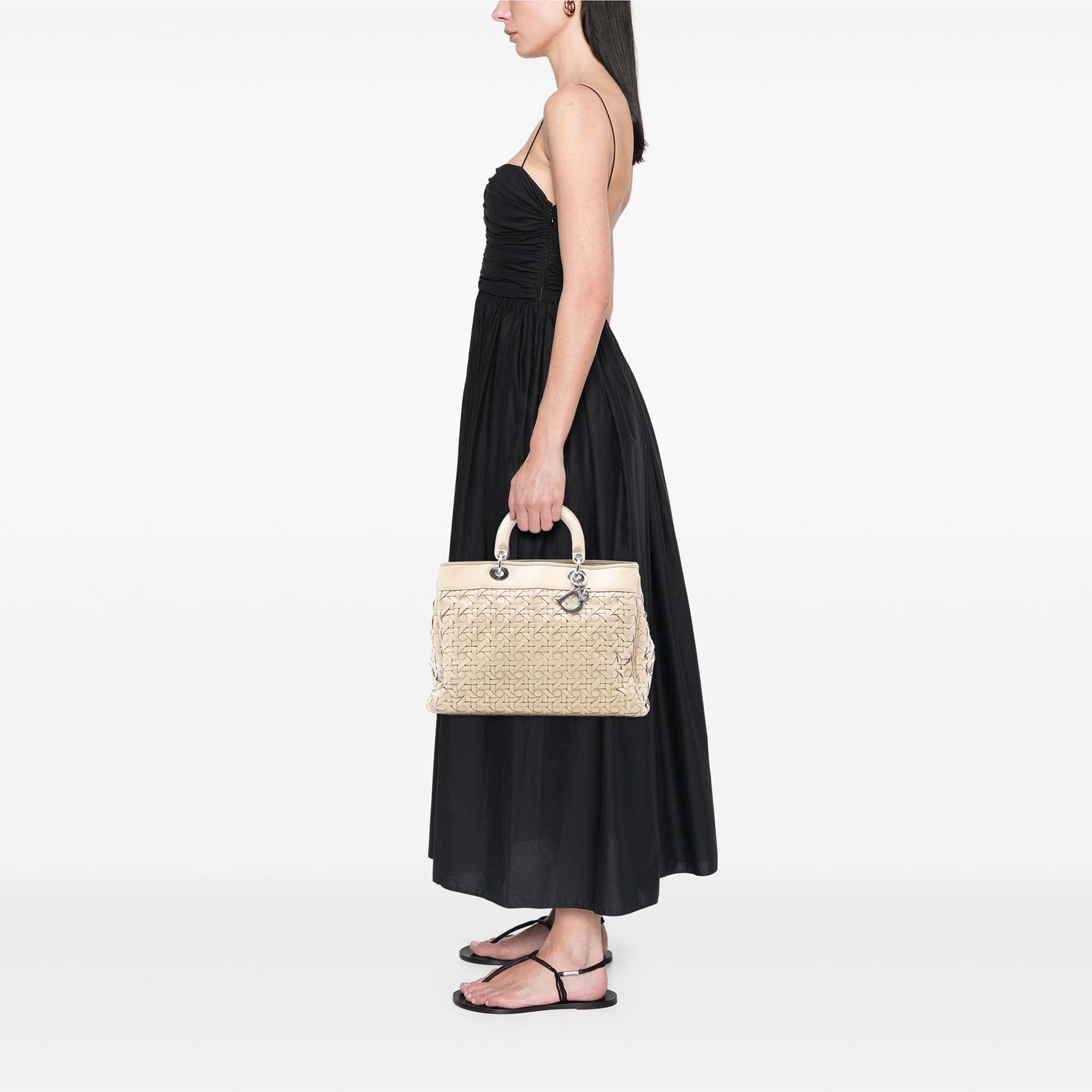 Beige Dior Woven Lambskin Lady Dior Avenue Tote Satchel