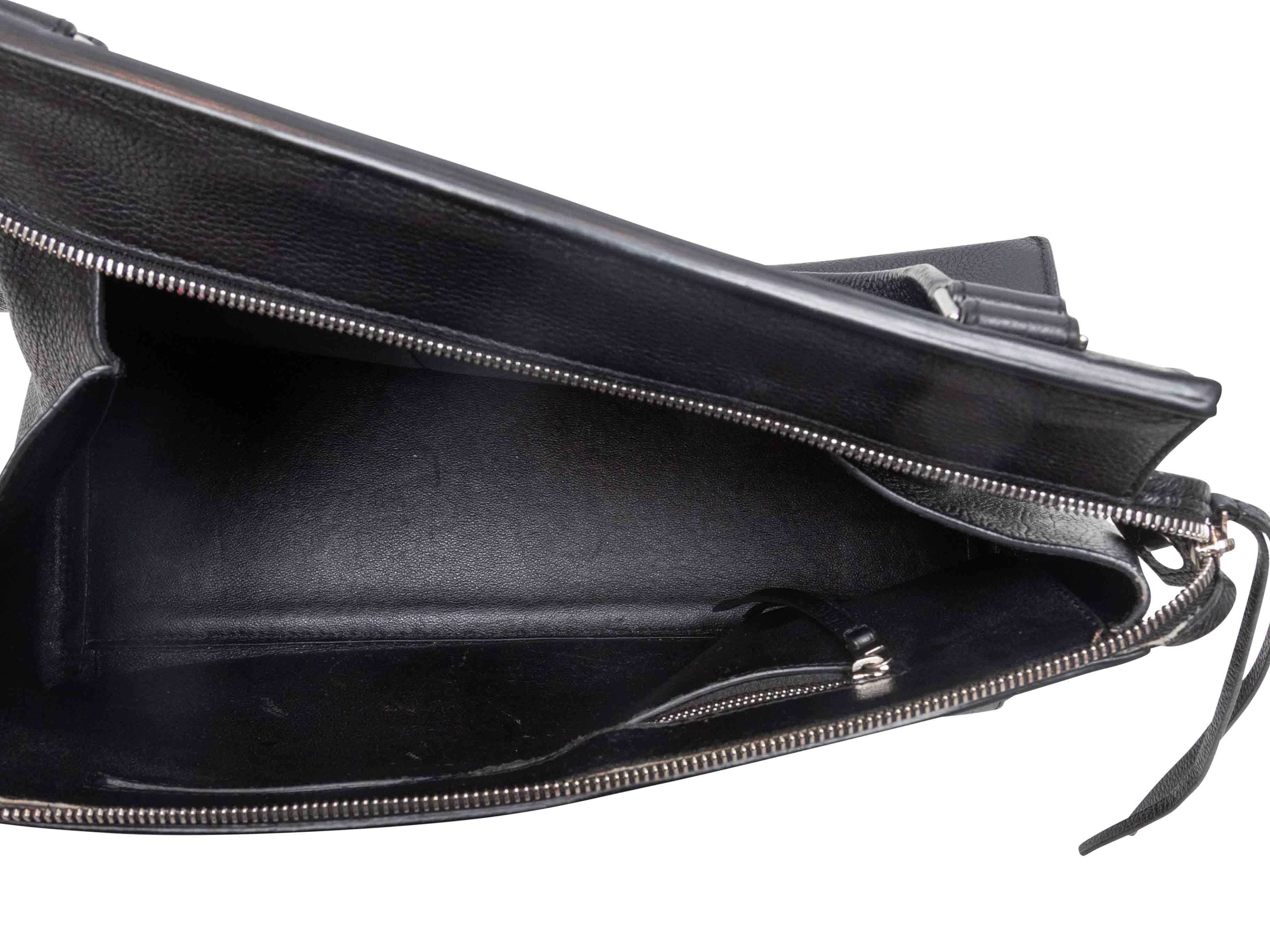 Condition: Pre-owned. Good. Markings and residue at interior. Slight marks and scratches throughout leather.