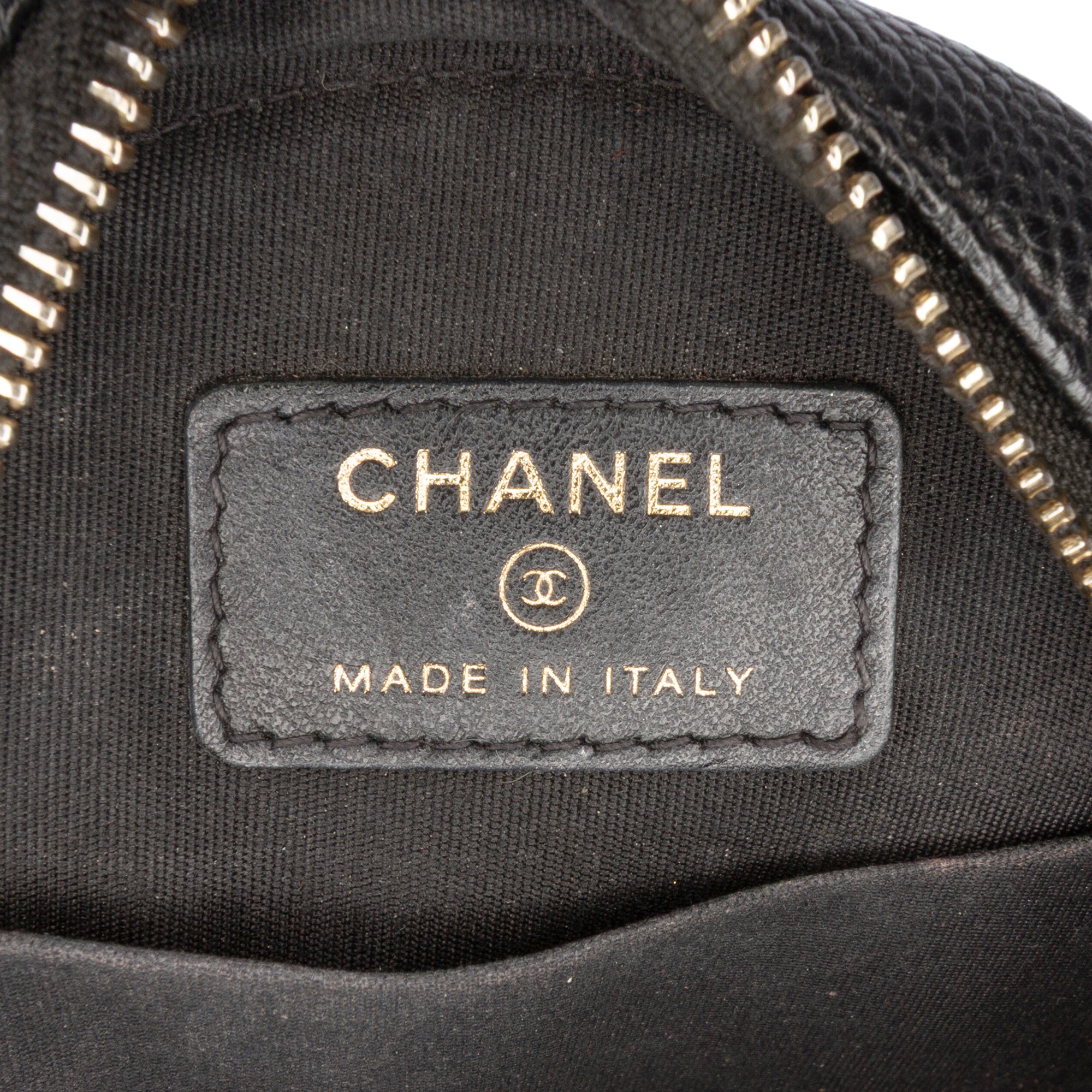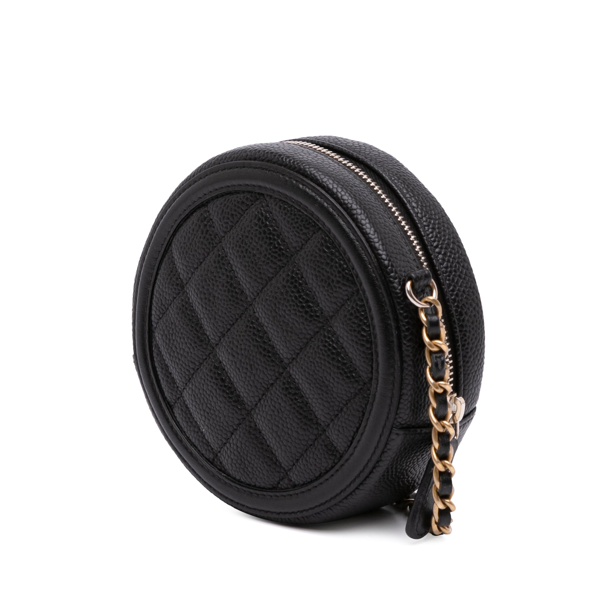 Black Chanel Caviar CC Filigree Round Clutch with Chain Crossbody Bag