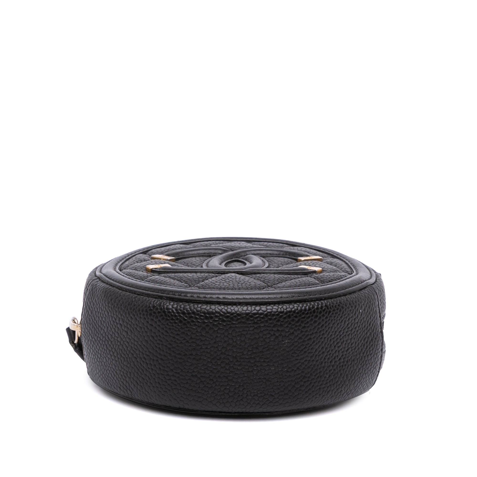 Black Chanel Caviar CC Filigree Round Clutch with Chain Crossbody Bag - Designer Revival Black Chanel Caviar CC Filigree Round Clutch with Chain Crossbody Bag - Designer Revival